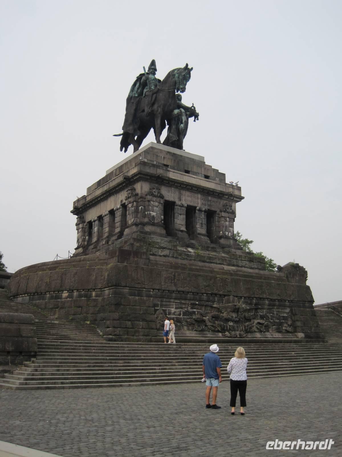 Der heutige Mittwoch gehörte ganz und gar dem Rhein, dem stolzen Fluss in Deutschland. Den ökonomischen Aspekt ließen wir beiseite und begannen einen Stadtbummel in Koblenz am deutschen Eck, wo die Mosel und der Rhein sich treffen und das Monumentaldenkmal von Kaiser Wilhelm I. steht. Weiter ging unser Rundgang mit Frau Hühnerfauth, der Stadtführerin von Koblenz, über dem Gebäude des Deutschen Ordens zur Altstadt der über 2000 Jahre alten Stadt. Eine Attraktion war das „ Schängel „ Standbild, das getaktet einen ca. 4m weiten Wasserstrahl ausspieh. Danach erfolgte die große Überraschung am Rhein für unsere RG. Unsere RG fuhr mit der Super Seilbahn BUGA 11 diagonal über dem Rhein bis zu einer ca. Höhe von 110m zur Höhenstation auf der Festung Ehrenbreitstein. Der Besuch der Festung war als „Bonbon" integriert und erlaubte einen traumhaft schönen Blick über das Rheintal bei, Koblenz mit natürlich der Sicht auf das Deutsche Eck, der Mosel/dem Rhein und den Blick in das obere Mittelrheintal. Nach Rückfahrt mit der BUGA Seilbahn fuhr uns unser Chauffeur Bernhard dem Rhein aufwärts bis Rüdesheim. In Rüdesheim war selbstverständlich die „ Drosselgasse „, die international bekannte und geliebte Souvenier- und Weinmeile, unser Hauptanziehungspunkt. Mit der darauffolgenden Schifffahrt von Rüdesheim nach Boppard konnten unsere RG die herrliche Mittelrheinstrecke mit vielen Burgen, den mächtigen Weinbergen und dem Loreleyfelsen genießen. Bernhard holte uns nach Absprache in Boppard ab und wir konnten über dem Höhenzug zwischen dem Rhein und der Mosel unser Hotel in Brodenbach günstig zum Abendessen erreichen. Der erwartet schöne Ausflug an den Rhein, mit seiner Vielzahl von weltbekannten Sehenswürdigkeiten, hatten unsere Wünsche erfüllt, und ein buntes Mosaiksteinchen in unsere Weinreise an Mosel und Rhein eingefügt.