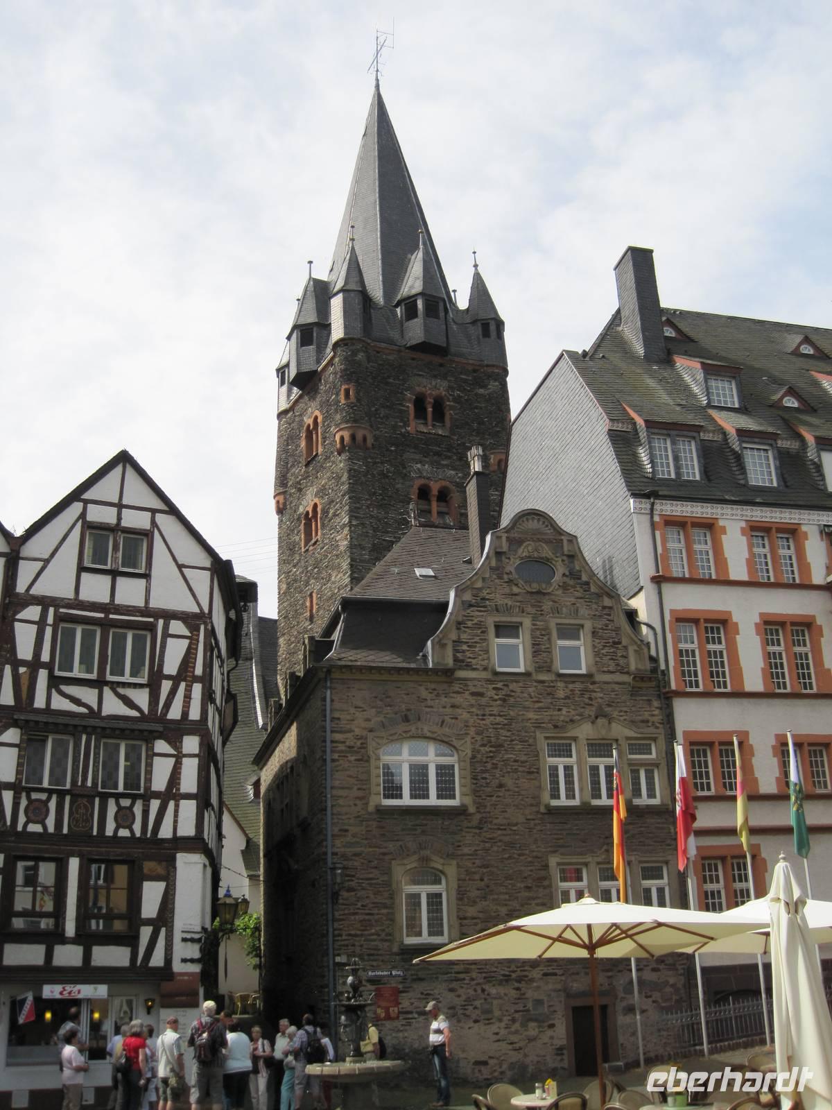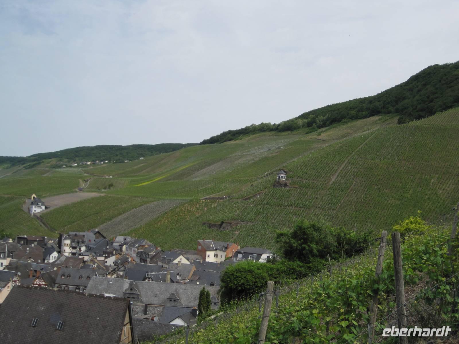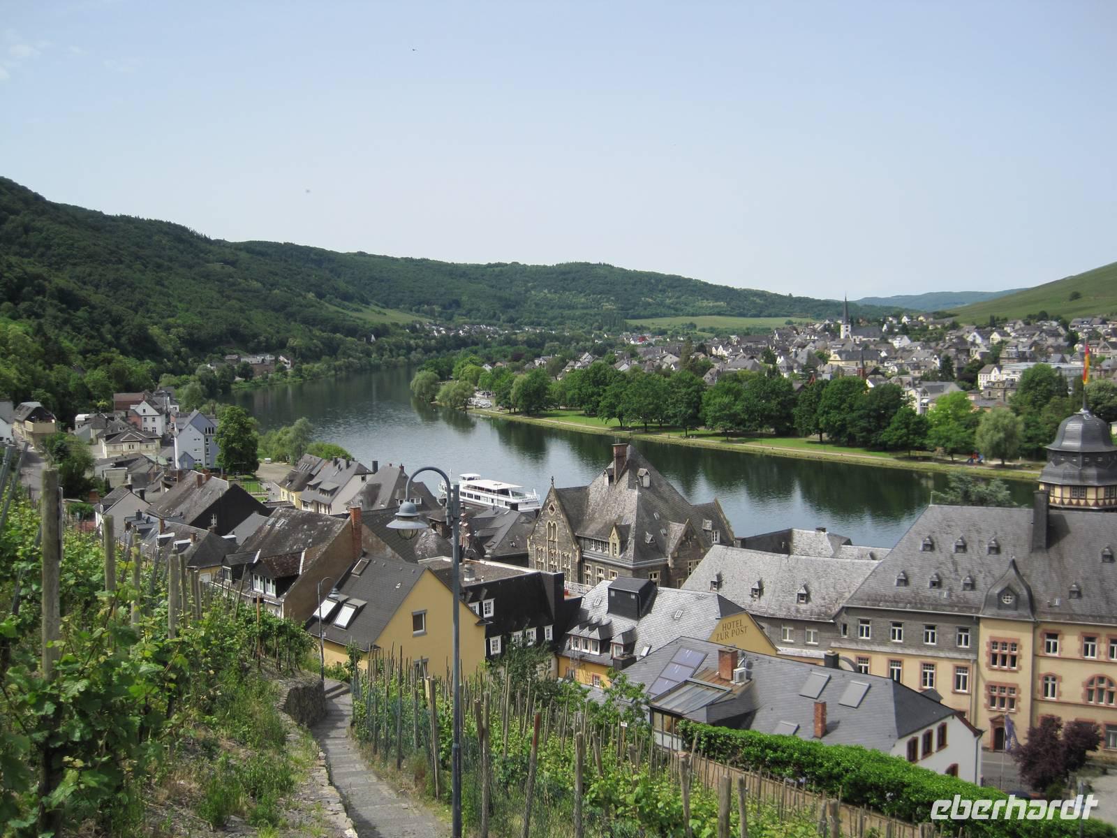 Der zweite Tag unserer Weinreise war vom Programm voll auf die zauberhafte Mosel abgestellt. Nach unserem Frühstück fuhren wir nach einem kurzen Stück an der Mosel bis nach Cochem, um danach auf der A 48 bis zur Höhe Bernkastel Kues, um unseren Zeitplan einzuhalten. Pünktlich konnten wir den örtlichen Stadtführer, Herrn Quint ca. 1 ½ Stunden zu der kurzweiligen und interessanten Stadtführung in Bernkastel begrüßen. Die erfrischende Art solcher Höhepunkte wie die Kirche und den Turm des St. Michaelis, den Karlsbaderplatz, dem Doktorwein und der Geschichte zum Bärenbrunnen, fanden uneingeschränkte Begeisterung der Reisegruppe. Bei der anschließenden Freizeit konnten alle die Angebote der Weine genießen und evtl. ein typisches Bernkasteler Mahl verzehren. Die Busfahrt entlang der Mosel imponierte mit seinen unterschiedlichen aber eigenen Orten wie z.B.: der Calmonter Brehm, dem steilsten Weinberg in Terrassenform in Europa. In Beilstein, dem „ Dornröschen der Mosel „ machten wir eine Pause von ca. 45 min und bestaunten den Kern des Ortes und die wunderschön renovierte ehemalige Karmeliterkirche mit der „ Schwarzen Modonna „. Den würdigen Abschluss des Tages feierten wir bei der zünftigen Weinverkostung bei der Winzerfamilie Hammes in Alken. 5 Weißweine, natürlich vorwiegend Riesling, und ein roter Wein brachten den lustigen Ausklang eines erlebnisreichen und besonderen Tages an der Mosel. Natürlich wurden danach die besten Tropfen gekauft und im Bus für die Heimfahrt gelagert.