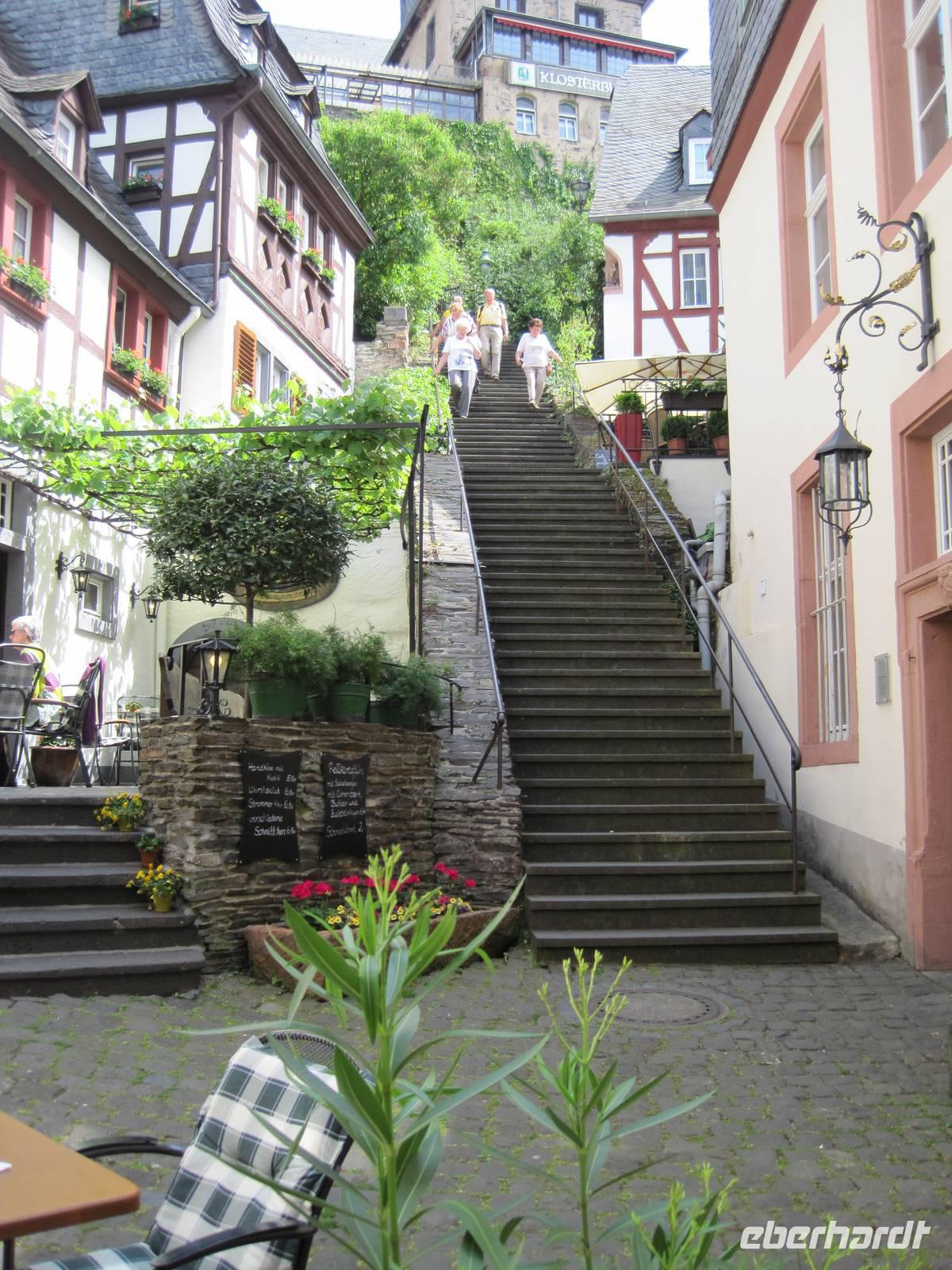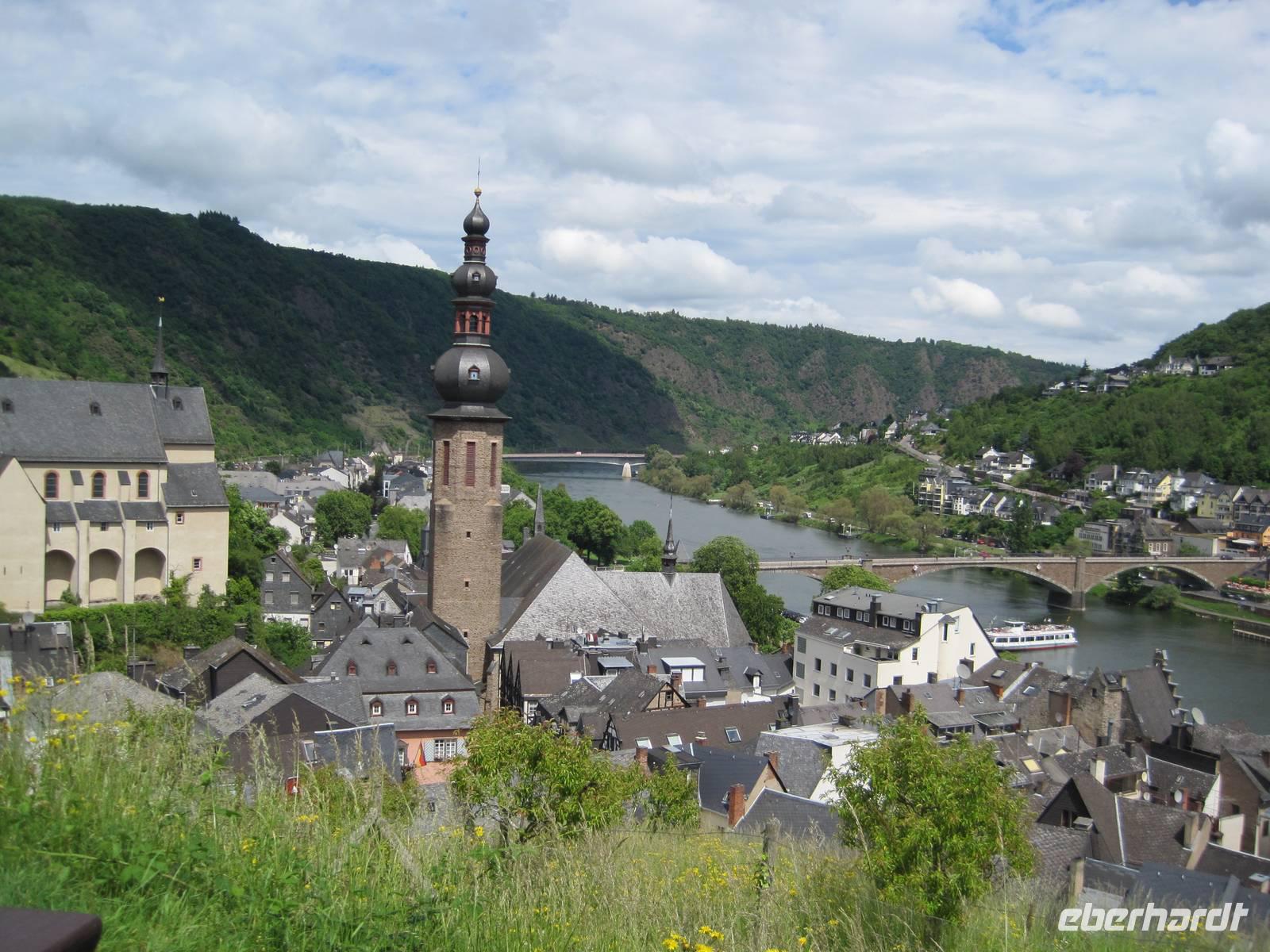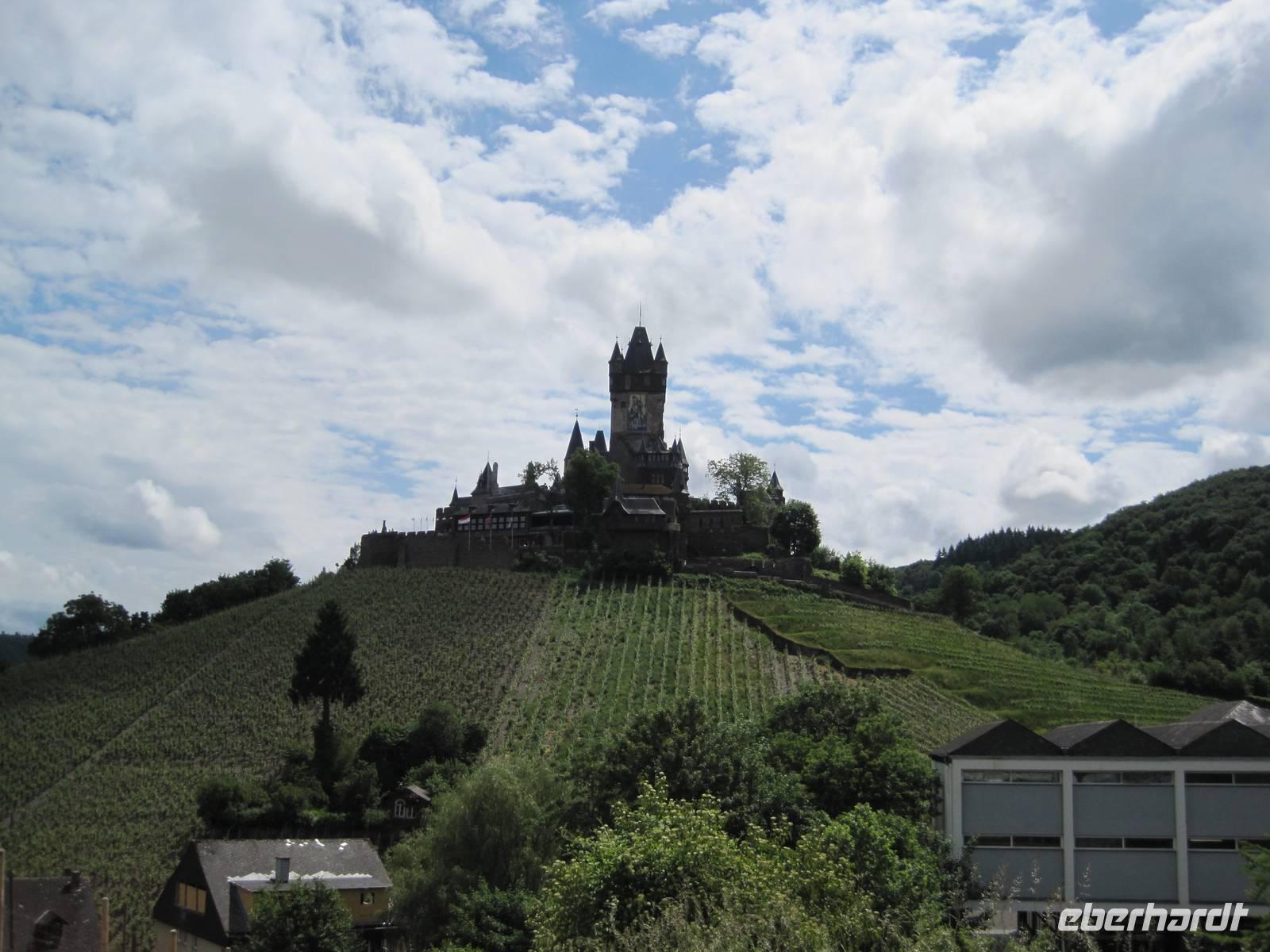 Die Bedenken, dass der Regen der Nacht anhält, wurde auf der Anfahrt zur Burg Eltz bereits gedämpft und die Hoffnung auf Sonnenschein und blauen Himmel hielt auch den Tag über an. Die Burgführung und der Besuch der Schatzkammer im Kellergeschoss der Burg waren ein Volltreffer, den alle RG im Überschwang bestätigten. Die Ansicht der Märchenburg, der über 850 Jahre unbeschadenten Burg Eltz, aus der Höhe des Anmarsches brachten die ersten Überraschungsausrufe. Einzigartig auch das Burginnere; Wohn- und Schlafräume, Waffenhalle und Rittersaal, Jagdzimmer und die Küche gaben authentische Aussagen der hervorragend erhaltenen historischen Einrichtungen. Die Keller der Burg bergen eine der bedeutensten privaten Schatzkammern der Welt mit berühmten Gold- und Silberarbeiten, Schmuck, Porzellan und Waffen. Nach einer kurzen Busfahrt genossen unsere RG eine ca. 3 stündige Freizeit in der Stadt Cochem, der größten Stadt zwischen Trier und Koblenz an der Mosel. Viele Möglichkeiten der Gestaltung boten sich unseren Gästen von der Reichsburg, der Promenade bis zu den vielen Lokalitäten, um ein angenehmes Mittagessen oder ein Kaffegedeck zu probieren. Nicht zu vergessen das umfangreiche und sehr gute Angebot der Weine der Mittelmosel. 15.30 Uhr startete das Schiff „Stadt Zell „ zu einer einstündigen Moselfahrt um Cochem. Eine schöne romantische Fahrt zur Erholung am letzten Tag unserer Reise. Die Rückfahrt und das Abendessen läutete die richtige Stimmung ein, um in ruhigem Ambiente unseren Abschiedsabend vom Rhein und der Mosel mit seinen vielen Sehenswürdigkeiten zu begehen. Viele einmalige Erlebnisse geben uns allen die Gewissheit, eine wunderschöne und bewegende Weinreise genossen zu haben.