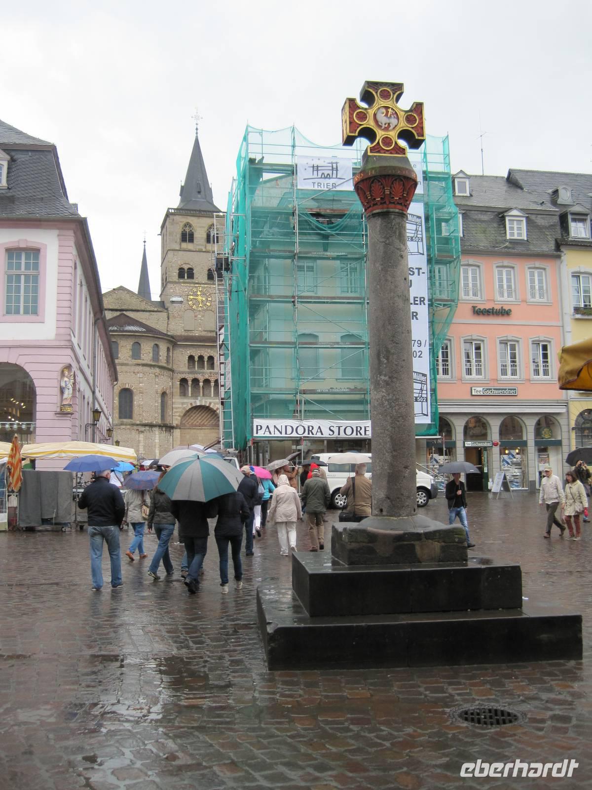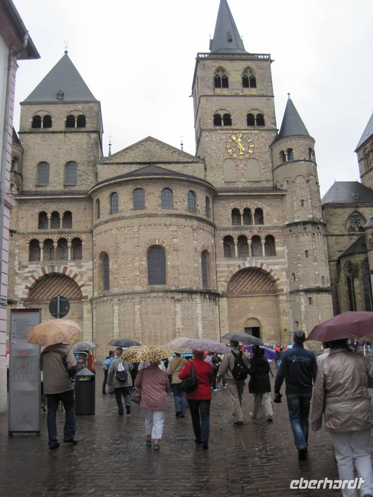 Der Tag mit dem Besuch der ältesten Stadt in Deutschland, Trier erwartete uns mit regenverhangenem Himmel alles grau in grau. Die ca. 2 stündige Anfahrt über die Autobahn A 48 und die Einfahrt in Trier lies uns noch etwas Hoffnung auf einen trockenen Tag, aber leider begann unsere Stadtführung mit der netten und kompetenten Reiseleiterin Erika Schwarzmann mit einem Regenguss. Wir negierten das Unwetter einfach und setzten unseren Spaziergang bis zur Konstantin Basilika fort. Die beeindruckende jetzige Kirche zeigte viel Bewunderung für die damalige geniale Bauleistung und der Pflege der Traditionen in Trier. Nachdem wir den Trierer Markt, dem Dom und die Liebfrauenkirche besuchten, erfreuten sich alle Gäste an dem Sonnenschein, der uns beim Treffen vor dem Kurfürstlichen Palast begrüßte. Dank Petrus, dem Schutzheiligem auch von Trier, hatten wir in der Freizeit mit Sonnenschein das Glück auf unserer Seite. Und, siehe da, das schöne Wetter begleitete uns auch während des Restprogrammes des heutigen Tages. Die Busfahrt von Trier nach Kirschweiler, der Edelsteinschleiferei Hess, war von Sonnenschein begleitet und die Führung bei der Fa. Hess hatte ebensolchen auch verdient. Der Beweis war der Umsatz, den unsere RG ganz schön in die Höhe trieben!!! Ein weiterer durchwachsender, aber sehr netter Urlaubstag nahm sein Ende mit der kurzweiligen Fahrt auf der Hunsrücker Höhenstraße über Treis Karden nach Brodenbach zum Hotel Anker.