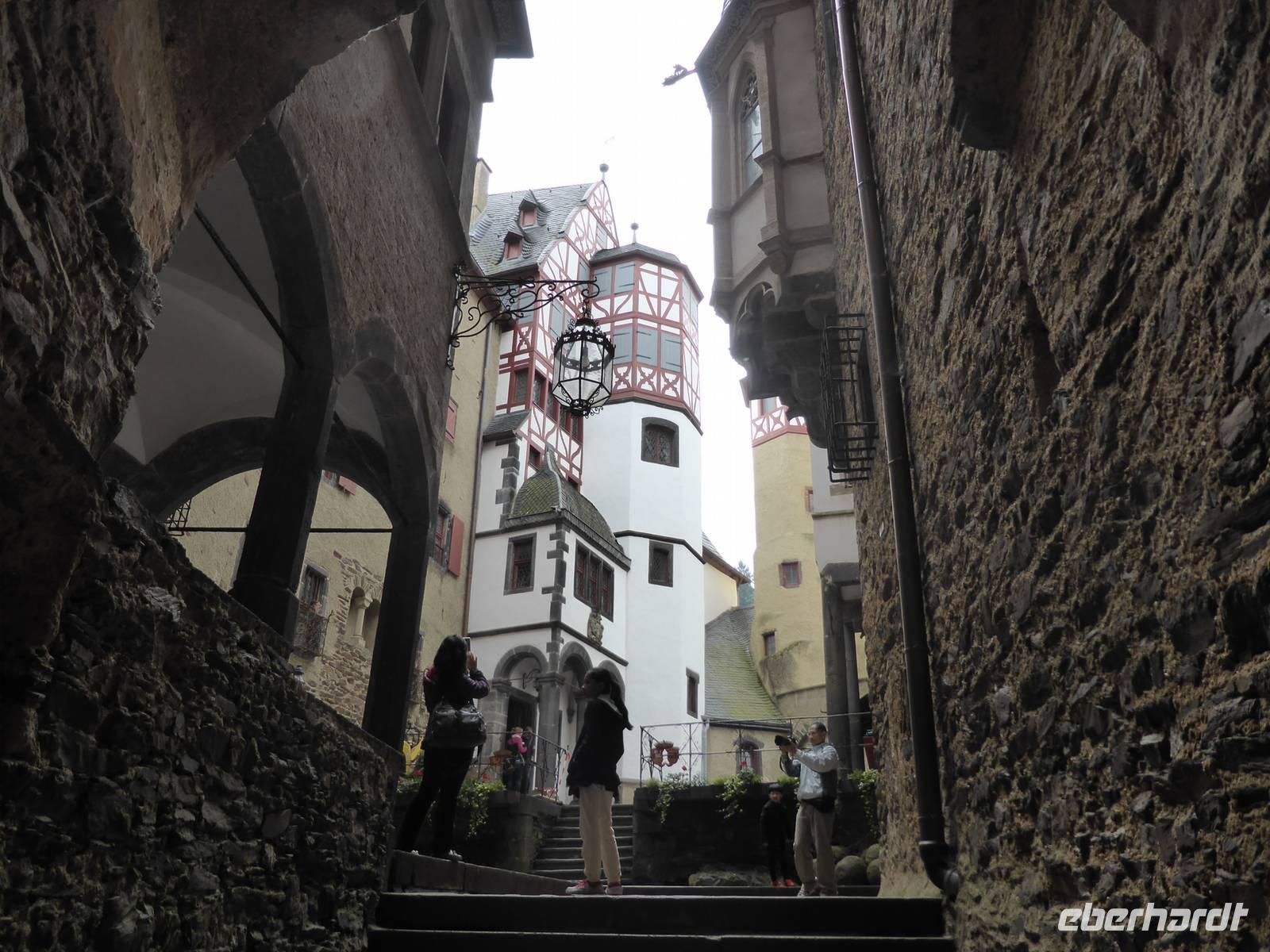 Am Parkplatz angekommen, lag noch ein kleiner Spazierweg bis zur Burg vor uns. Bereits von dem Anblick der mächtigen Burg im Eltzbachtal waren wir begeistert. Diese Burg ist seit über 800 Jahren im Familienbesitz der Familie Eltz und zeigt über 500 Jahre Baugeschichte. Während der Führung erfuhren wir viel Wissenswertes zur Familien- sowie Baugeschichte der Burg. Auch die Ausstattung der Räumlichkeiten war beeindruckend.