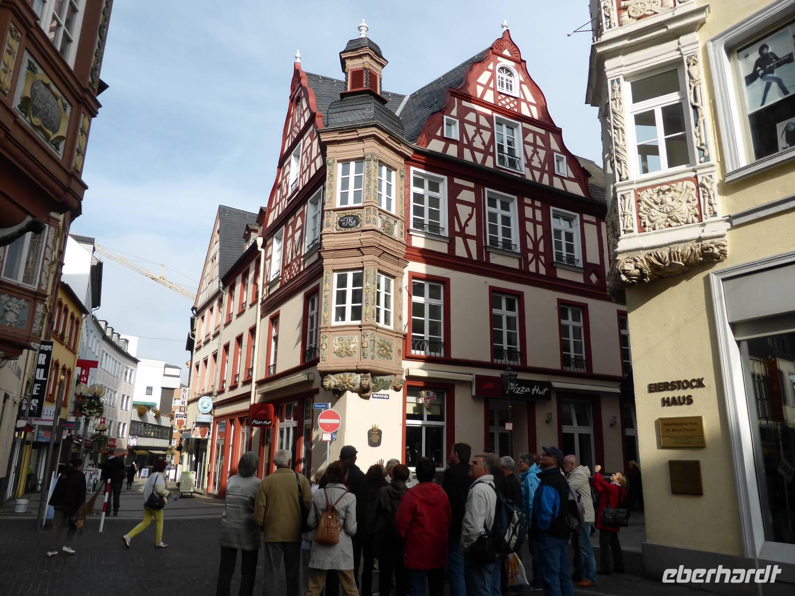 Der heutige Tag stand ganz im Zeichen des lieblichen Moseltales. Über den Hunsrück erreichten wir am Morgen das schmucke Winzerstädtchen Bernkastel Kues. Hier wurden wir bereits von unseren beiden Gästeführerinnen Marita und Christa erwartete. Sie zeigten uns mit sehr viel Charme, Wissenswertem und Witz die Stadt unterhalb der Burgruine Landshut. Die Winzergemeinschaft von Bernkastel verfügt über die größten zusammenhängenden Weinberge in Deutschland. Der berühmteste Tropfen ist der „Bernkasteler Doktor". Dieser Legende und vielen andern Geschichten konnten wir während des Stadtrundganges lauschen. Der Rundgang führte uns durch das Schwanengässchen mit dem alten Zollhaus. Hier wurde sogar unsere Gästeführerin Marita durch einen kleine Zollspende und ein musikalisches Ständchen überrascht. Besonders beeindruckt waren wir vo Spitzhäuschen (1583), einem schmalen Häuschen am Marktplatz.