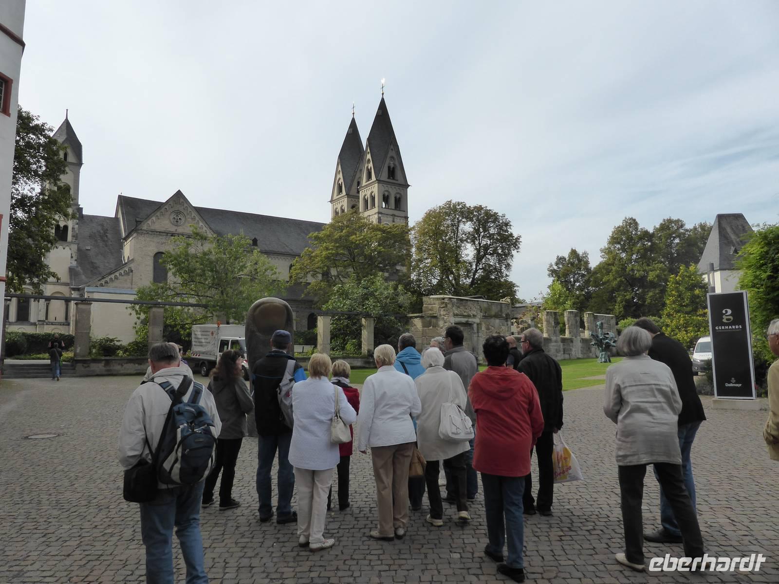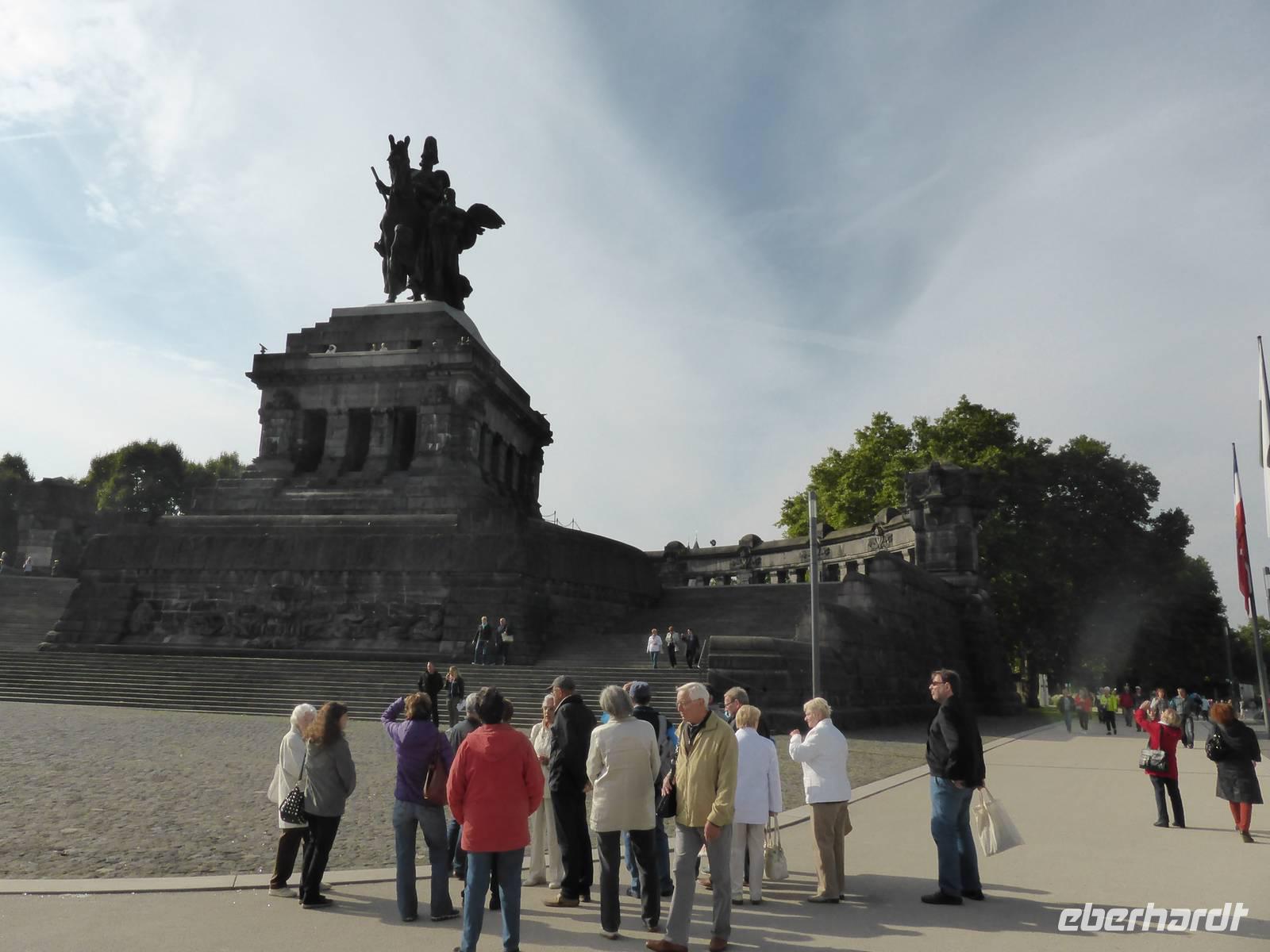 Durch den allmorgendlichen Frühnebel verließen wir das Moseltal Richtung Koblenz. Am neuen Forum Confluentas erwarteten uns bereits unsere beiden Gästeführer für den Stadtrundgang durch Koblenz. Während des Rundganges sahen wir nicht nur die wichtigsten Sehenswürdigkeiten der Stadt sondern erfuhren auch viel Wissenswertes über die deutsche Geschichte. Unser Spaziergang führte uns u.a. zum am Wahrzeichen der Stadt, dem Schängelbrunnen. Natürlich bewunderten wir auch das Denkmal zur Deutschen Einheit am Deutschen Eck. Da Koblenz während des Zweiten Weltkrieges fast völlig zerstört worden war, besitzt die Stadt wenig historische Bauwerke. Nach dem Stadtrundgang nutzen wir die BUGA-Seilbahn, um hinauf auf die Festung Ehrenbreitstein zu gelangen. Während der Fahrt mit der Seilbahn genossen wir einen sehr schönen Blick auf den Zusammenfluss von Rhein und Mosel sowie die Festung, welche eine der mächtigsten in Europa ist. Innerhalb der Festung befinden sich heute eine Jugendherberge sowie das Landesmuseum. Nach der Mittagspause setzten wir unsere Reise entlang des „Vater Rheines" nach Rüdesheim fort. Wir fuhren an den zahlreichen Burgen und kleinen Dörfern vorbei. In Rüdesheim blieb uns noch etwas Zeit, um durch die Drosselgasse zu bummeln. Diese berühmte Gasse ist Sinnbild für Weingemütlichkeit.