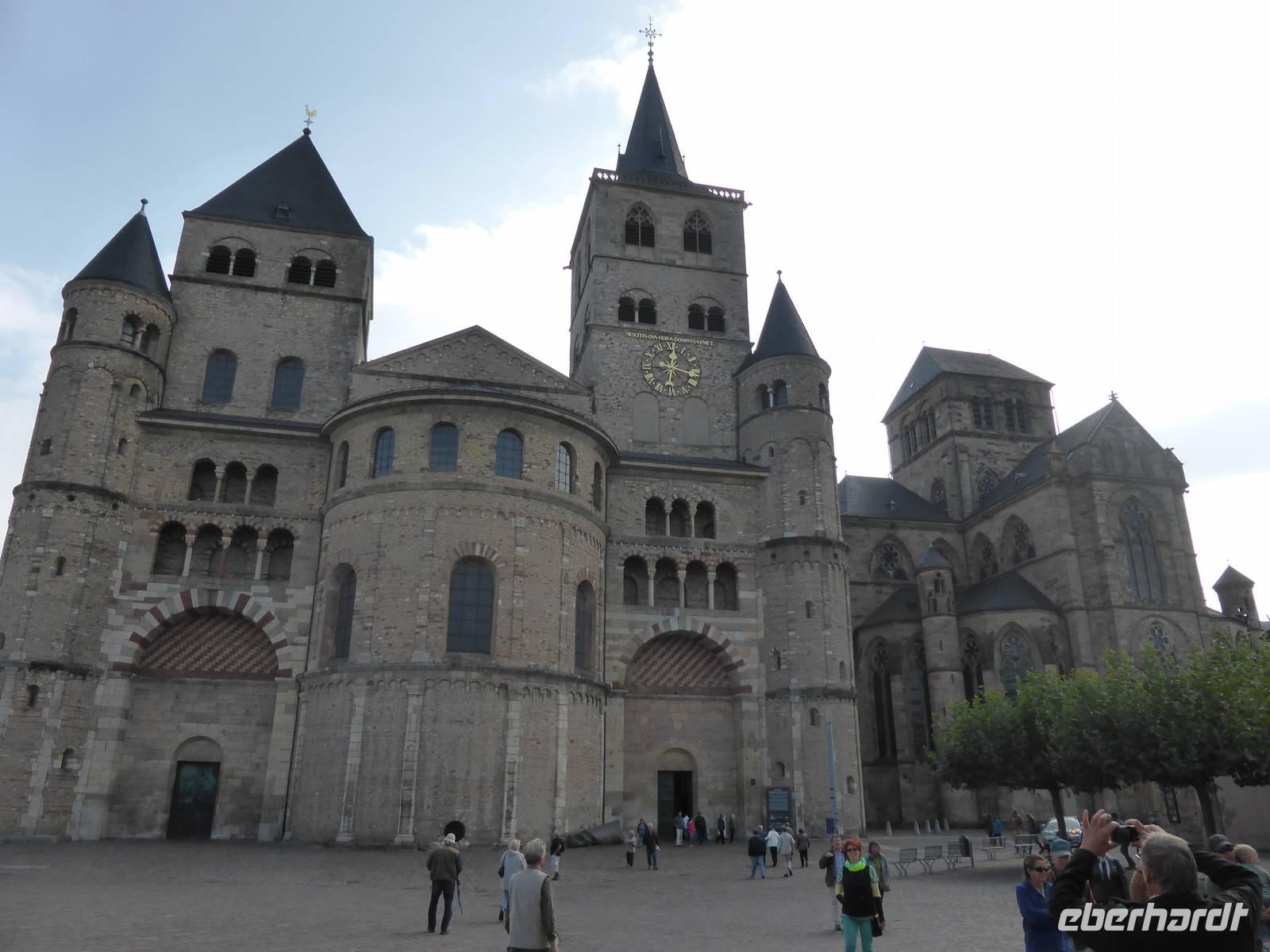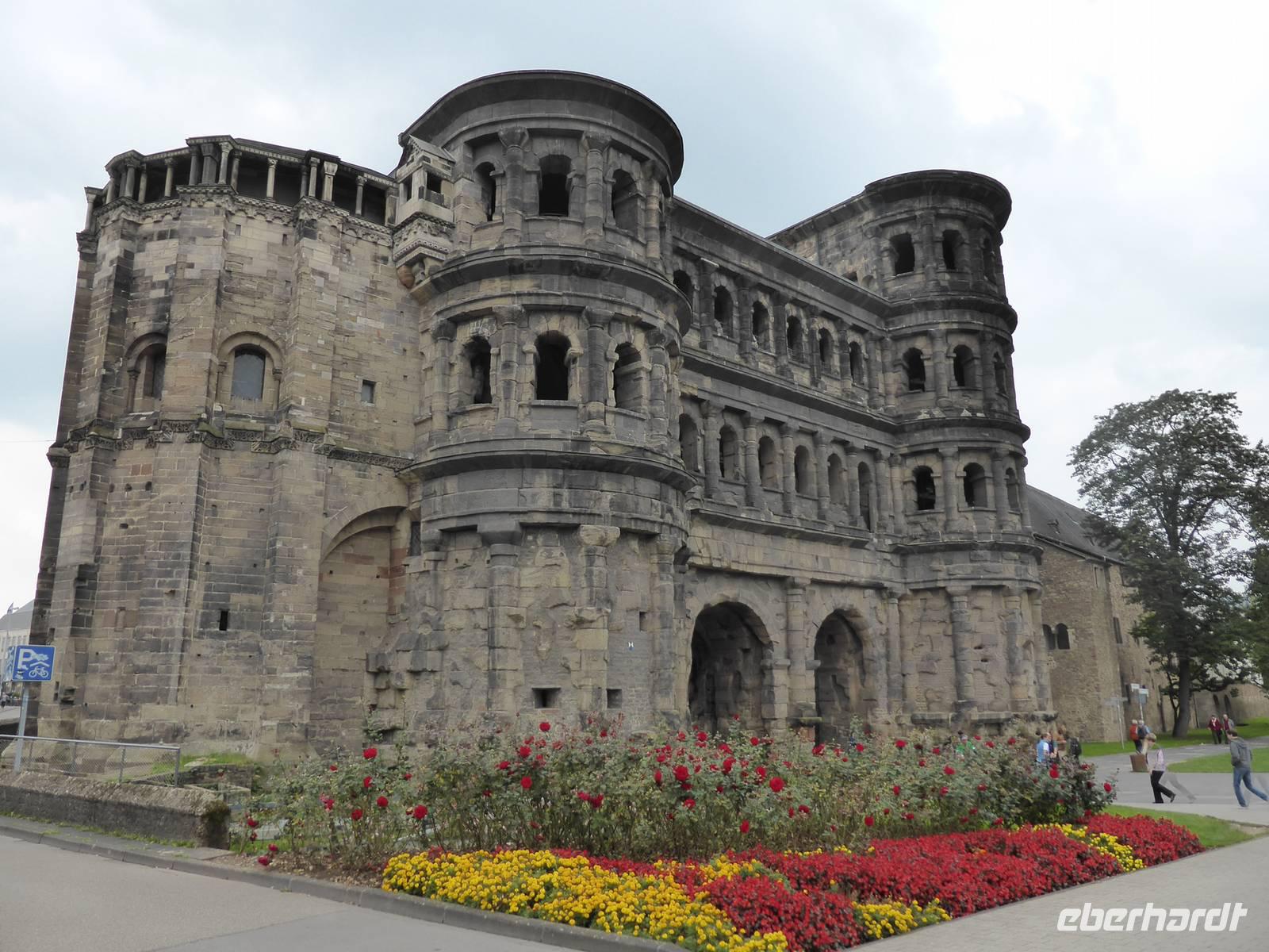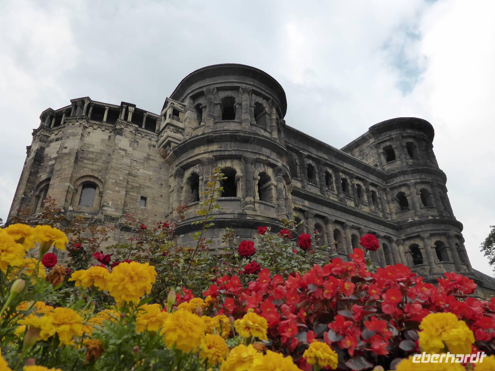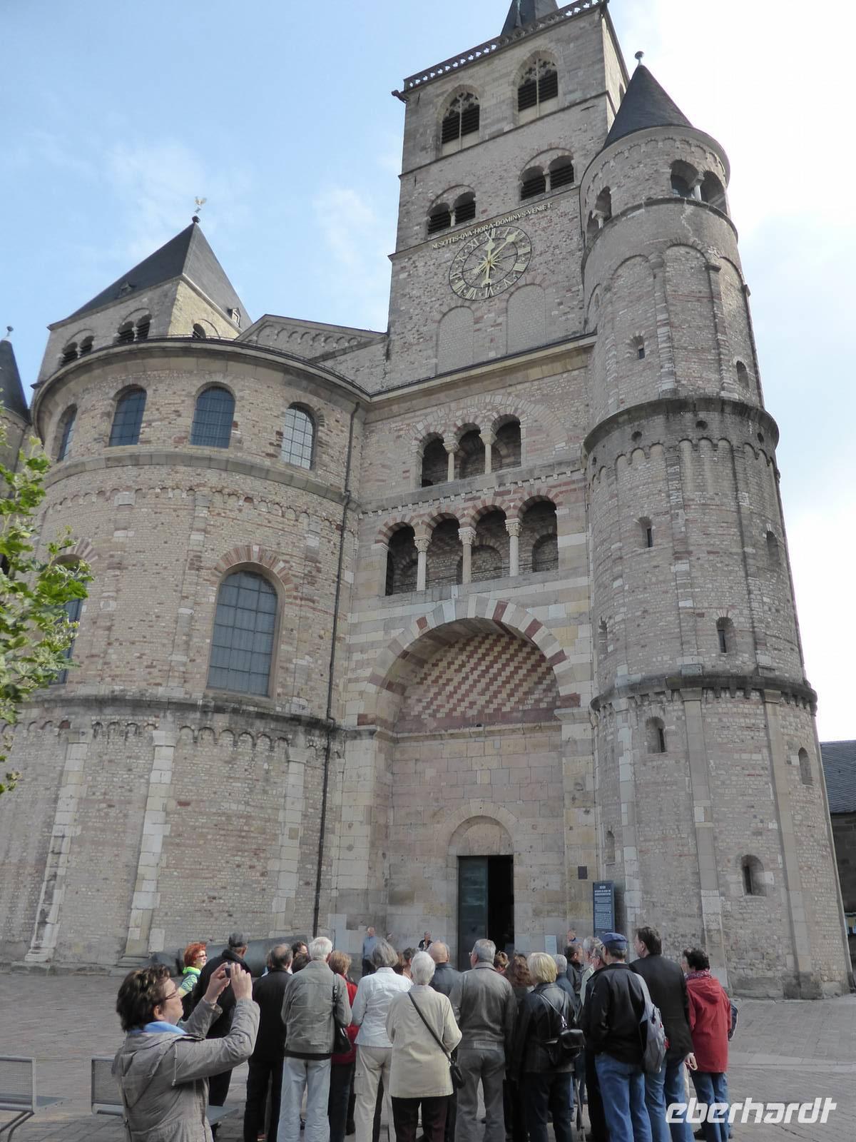 Gestärkt durch das reichhaltige Frühstücksbuffet starteten wir zu unserem ersten Ausflugstag in die älteste Stadt Deutschlands, nach Trier. Das Moseltal verließen wir in Treis-Karden, um auf die Eifelhöhen zu gelangen. Die Autobahn führte uns entlang der Vulkaneifel direkt nach Trier. In Trier wurden wir von unserer Gästeführerin Dorothe Michels begrüßt. Während der Stadtrundfahrt zeigte Sie uns die Porta Nigra, das Karl - Marx - Geburtshaus, die Barbara- sowie Kaiserthermen und vieles mehr. Vom Petrisberg genossen wir einen herrlichen Blick auf die Stadt sowie die umliegenden Weinberge. Unseren kleinen Stadtrundgang führte uns von der Römischen Palastaula, über die Liebfrauenkirche und den Dom zum Marktplatz. An einem Haus am Marktplatz ist die Inschrift „Trier stand 1300 Jahre vor Rom" zu lesen. Damit wollte die älteste Stadt Deutschlands selbst Rom übertrumpfen. Die weströmischen Kaiser hielten sich gerne in Trier auf. Bevor er zum Christentum übertrat, verbrachte Konstantin der Große seine ersten Regierungsjahre in Trier. Im eigentlichen Herz der Stadt - am Hauptmarkt - mit dem Petrusbrunnen sowie dem Marktkreuz stand uns noch etwas Zeit zur freien Verfügung.