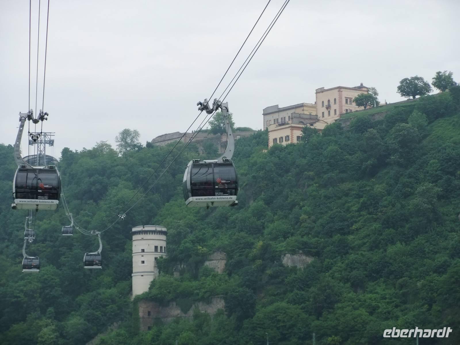 Nun wollen wir noch hinauf zur Festung Ehrenbreitstein. Dorthin bringt uns die Seilbahn. Während der Fahrt haben wir einen schönen Blick auf das Deutsche Eck und die Mündung der Mosel in den Rhein. Oben auf der Festung empfängt uns ein großes römisches Heerlager. Schon von der Stadt aus hatten wir Kanonenschüsse gehört. Nun begegnen uns Kelten, Römer, Ritter und so mancher Gaukler. Es finden heute hier Historienspiele statt und wir tauchen ein in 3.000 Jahre Geschichte.