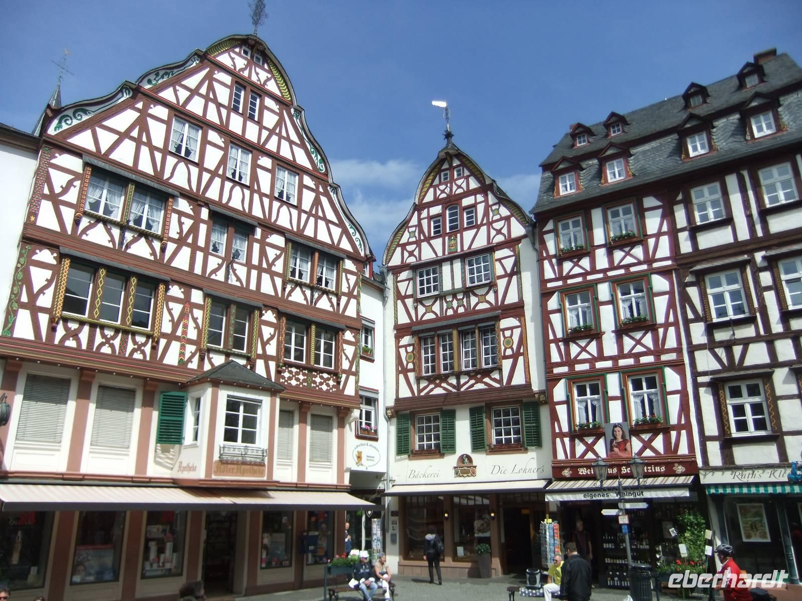 Heute wollen wir den ganzen Tag an der Mosel bleiben. Das erste Ziel ist Bernkastel-Kues, für mich das schönste Moselstädtchen. Bei einer Führung erkunden wir die romantischen Plätze und verwinkelten Gassen. Besonders beeindruckt uns der Marktplatz mit dem Renaissance-Rathaus, dem Michaelsbrunnen, den Fachwerk-Bürgerhäusern und dem Spitzhäuschen. Auch dem Karlsbader Platz zeigen uns die Hochwassermarken u.a. die Rekordhöhe vom Februar 1784. Von hier sind es nur wenige Schritte bis zum mächtigen Kirchturm St. Michael. Mit einem Blick hinauf zur Burgruine Landshut endet die Führung. Es bleibt noch Zeit für individuelle Erkundungen.