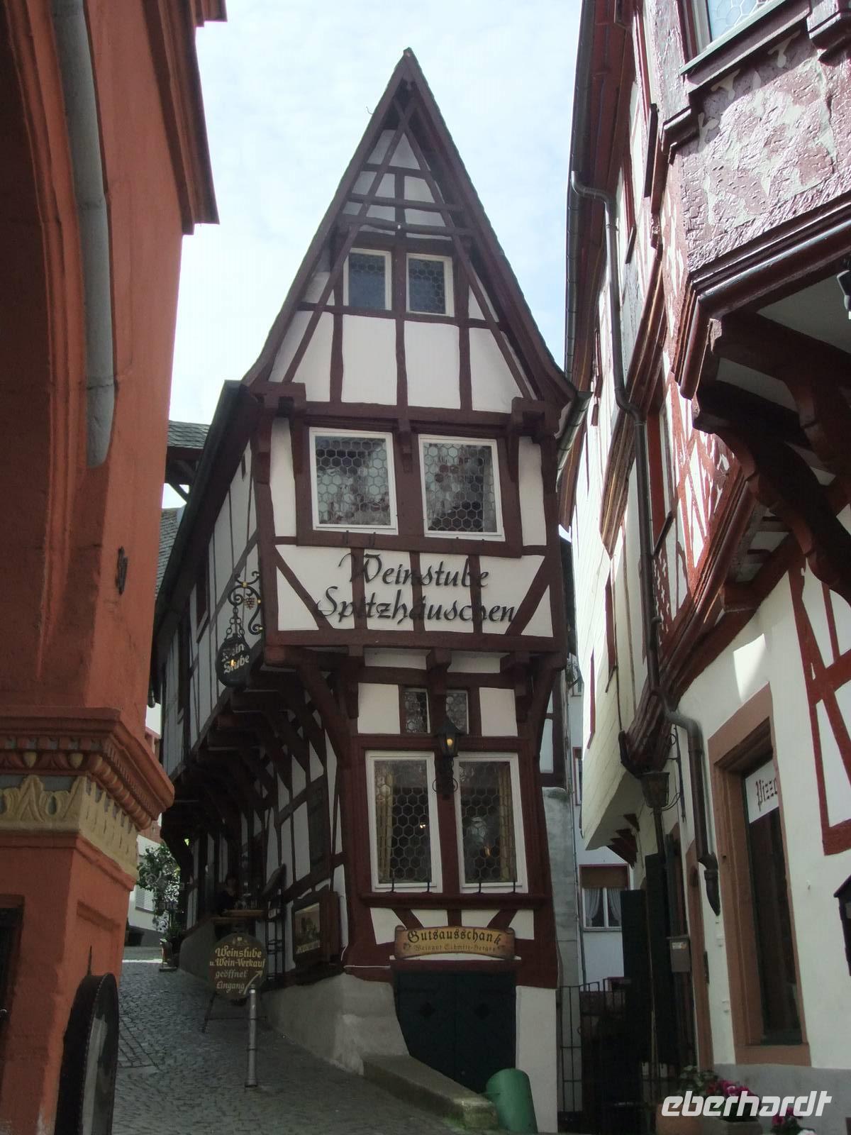 In Rüdesheim angekommen, geht unser Spaziergang zuerst zur berühmten Drosselgasse. Die ist zwar nur 3 Meter breit und 144 Meter lang - doch hier treffen sich die Touristen aus aller Welt. Aber es gibt in Rüdesheim auch noch eine Reihe schöner alter Höfe aus verschiedenen Kulturepochen zu entdecken. Auch geht Blick natürlich hinauf zum Niederwalddenkmal, wo die Germania thront.