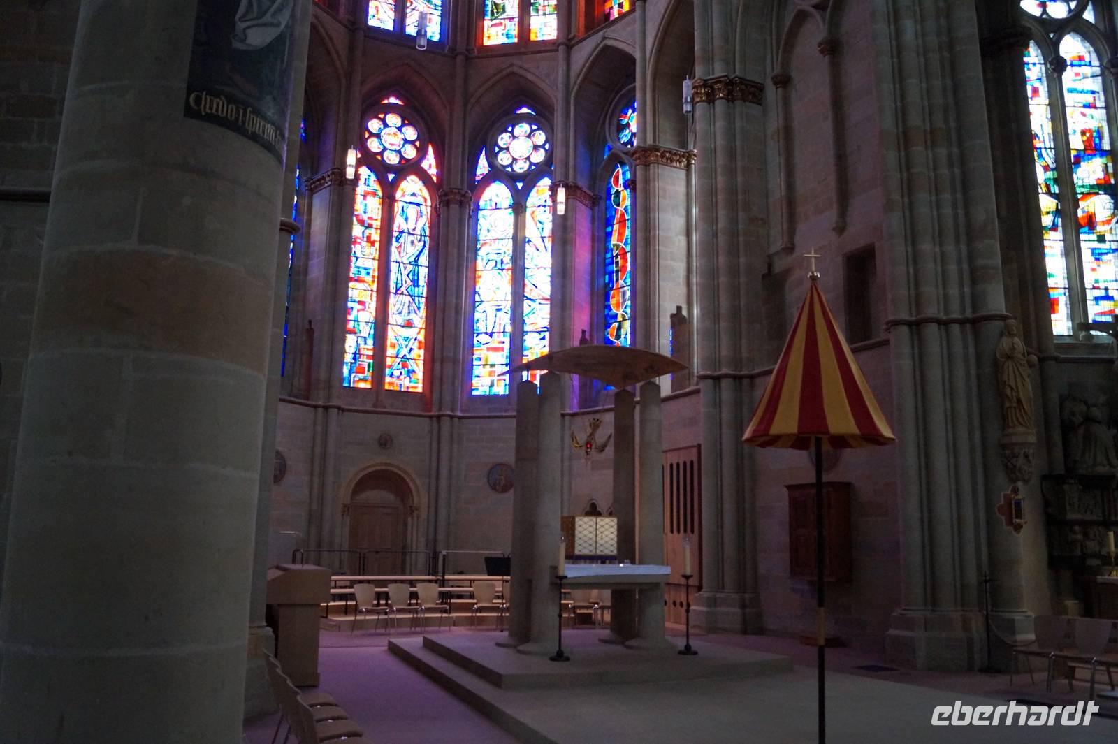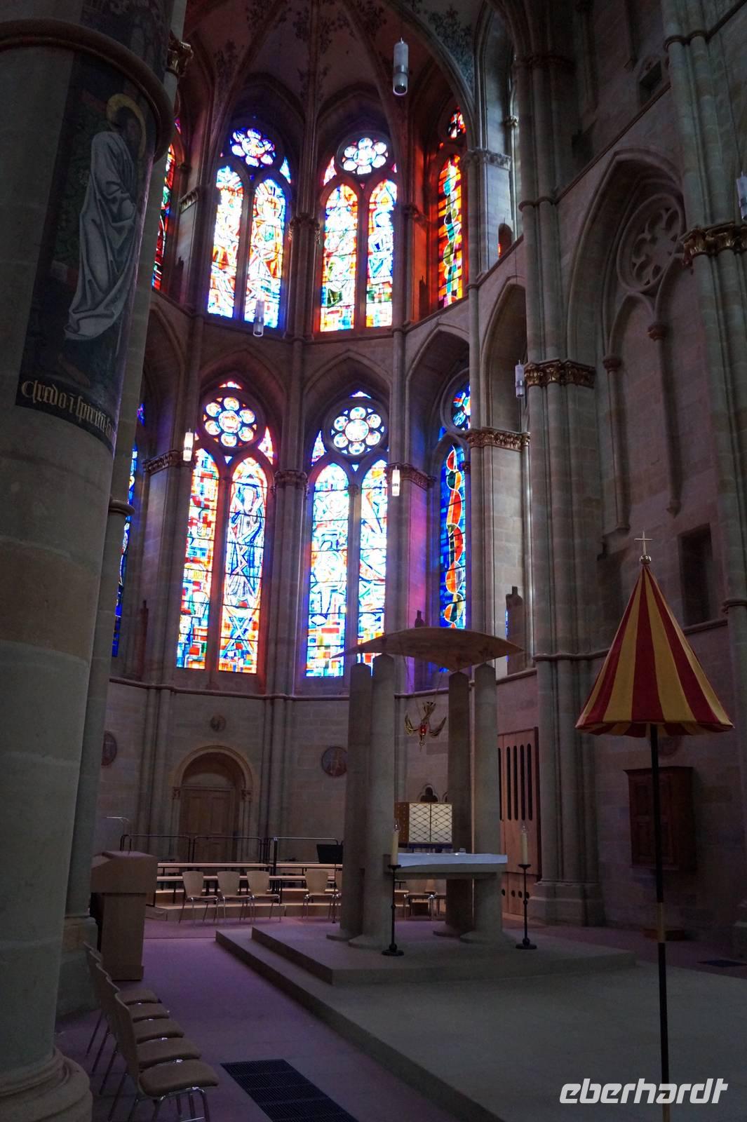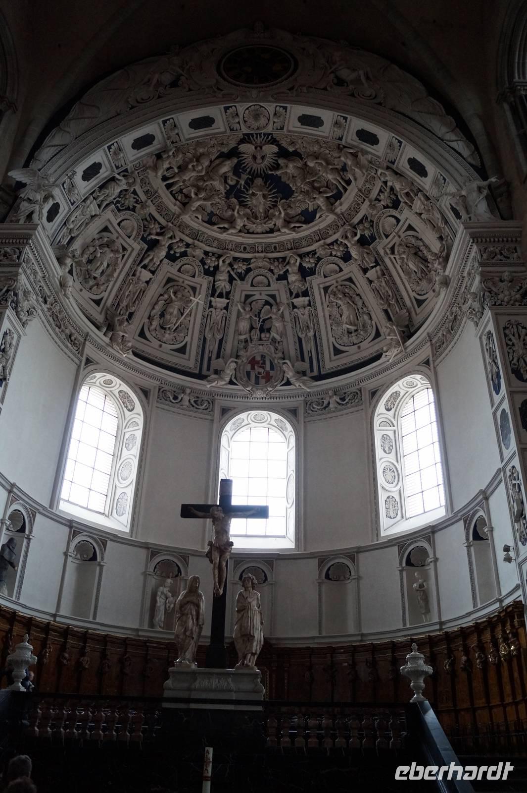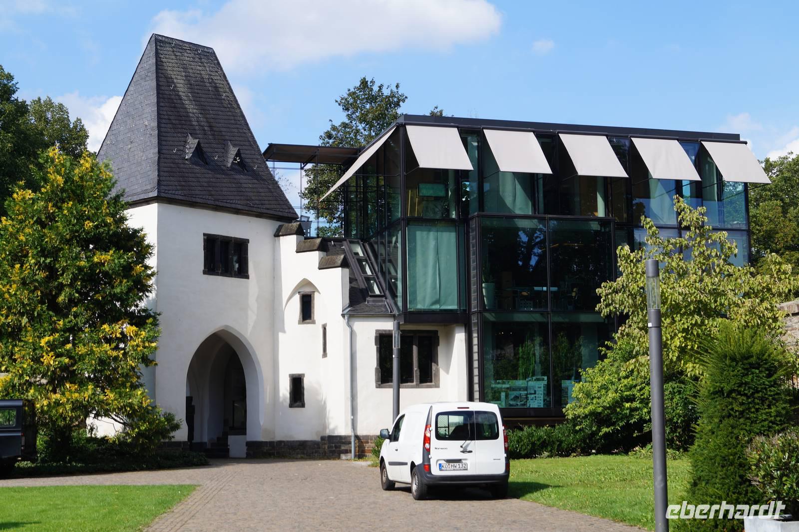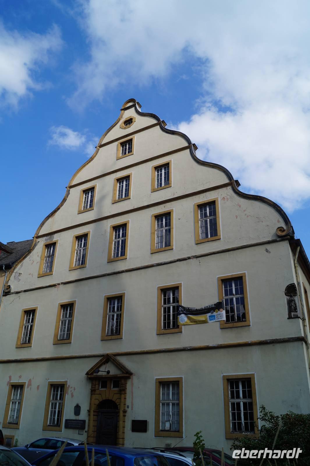 Am Morgen teilten wir uns wieder in zwei Gruppen auf, um an den jeweiligen Führungen durch Koblenz, dem lateinischen Confluentia ('Zusammenfluss') teilzunehmen, die uns durch die Stadt führten. Wir sahen das Jesuitengymnasium, den Verlauf der römischen Stadtmauer und die Deutschordensballei am Deutschen Eck (dieses hat seinen Namen von der Ballei, nicht etwa von den wilhelminischen Monumentalbauten am Zusammenfluss von Mosel und Rhein). An der Florinskirche, die als Stiftskirche nach der Säkularisation erst zum Pferdestall und später zur preußischen Garnisonskirche wurde - und daher heute eine protestantische Kirche ist - sahe wir das Kauf- und Danzhaus mit dem Augenroller und in der Liebfrauenkirche das Fenster, in dem neben Mutter Theresa und Edith Stein auch Sophie Scholl zu sehen ist: Eine Protestantin in einem Fenster einer katholischen Kirche.