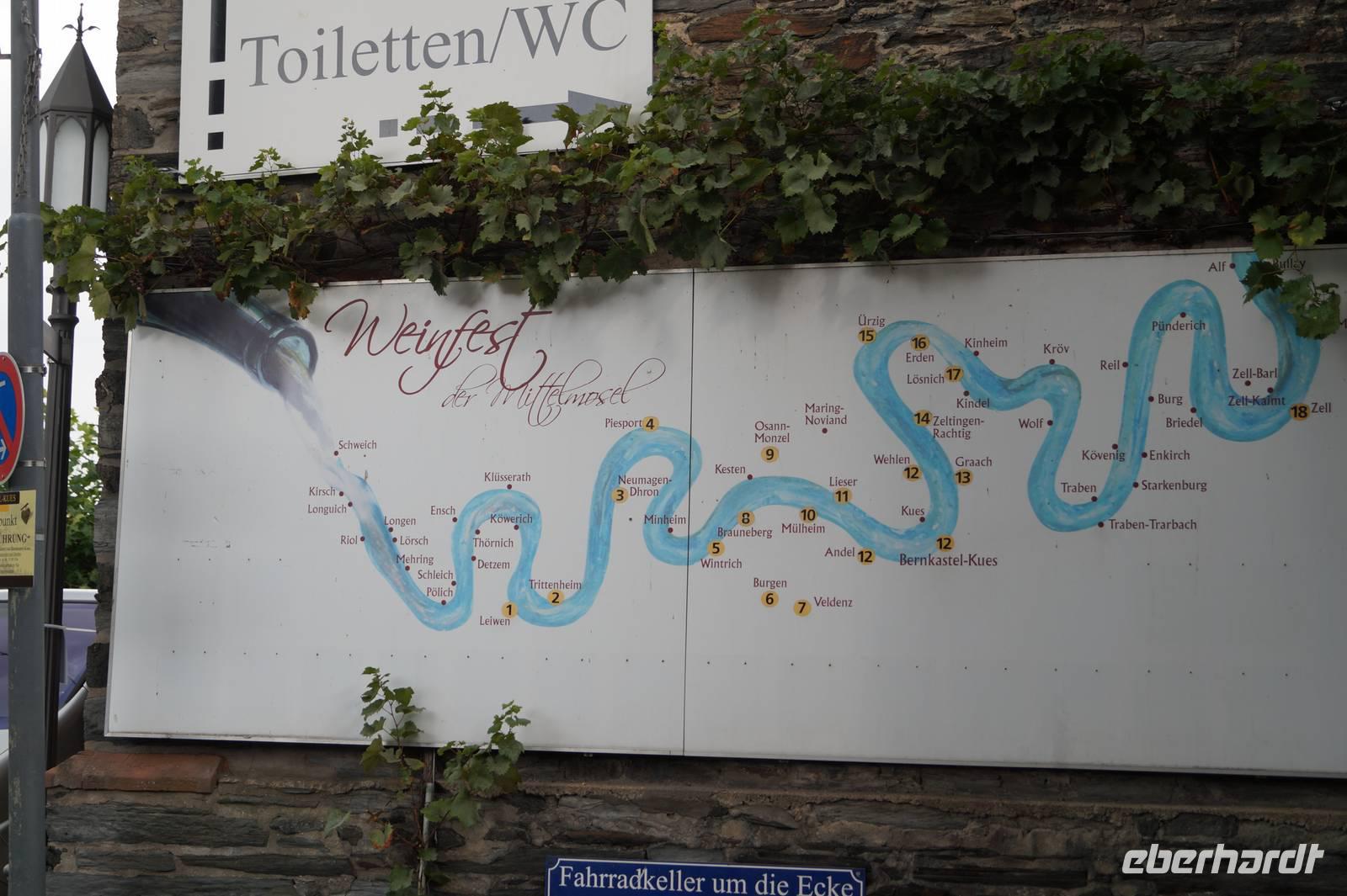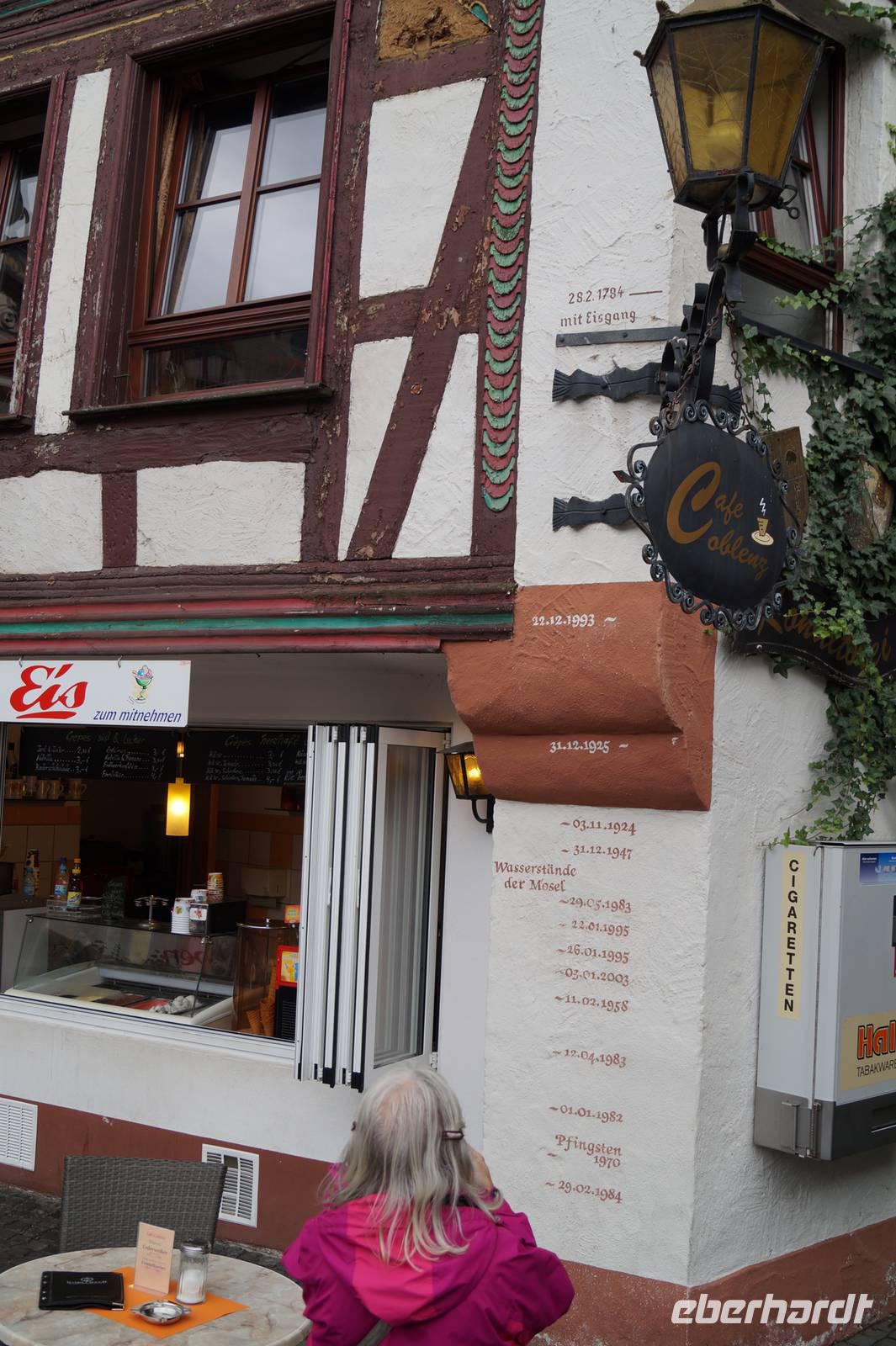 Bernkastel ist einer der meistbesuchten Weinorte an der Mittelmosel und er leidet regelmäßig unter Hochwassern. Viele der Hochwasser, die der Ort in der Vergangenheit zu erdulden hatte, waren regelrecht katastrophal und forderten einen hohen Zoll an Opfern. Mindestens die Hochwasser der letzten dreihundert Jahre sind an einer Hauswand in Bernkastel angepinselt, so dass man sich ein Bild von ihrer Höhe machen kann.