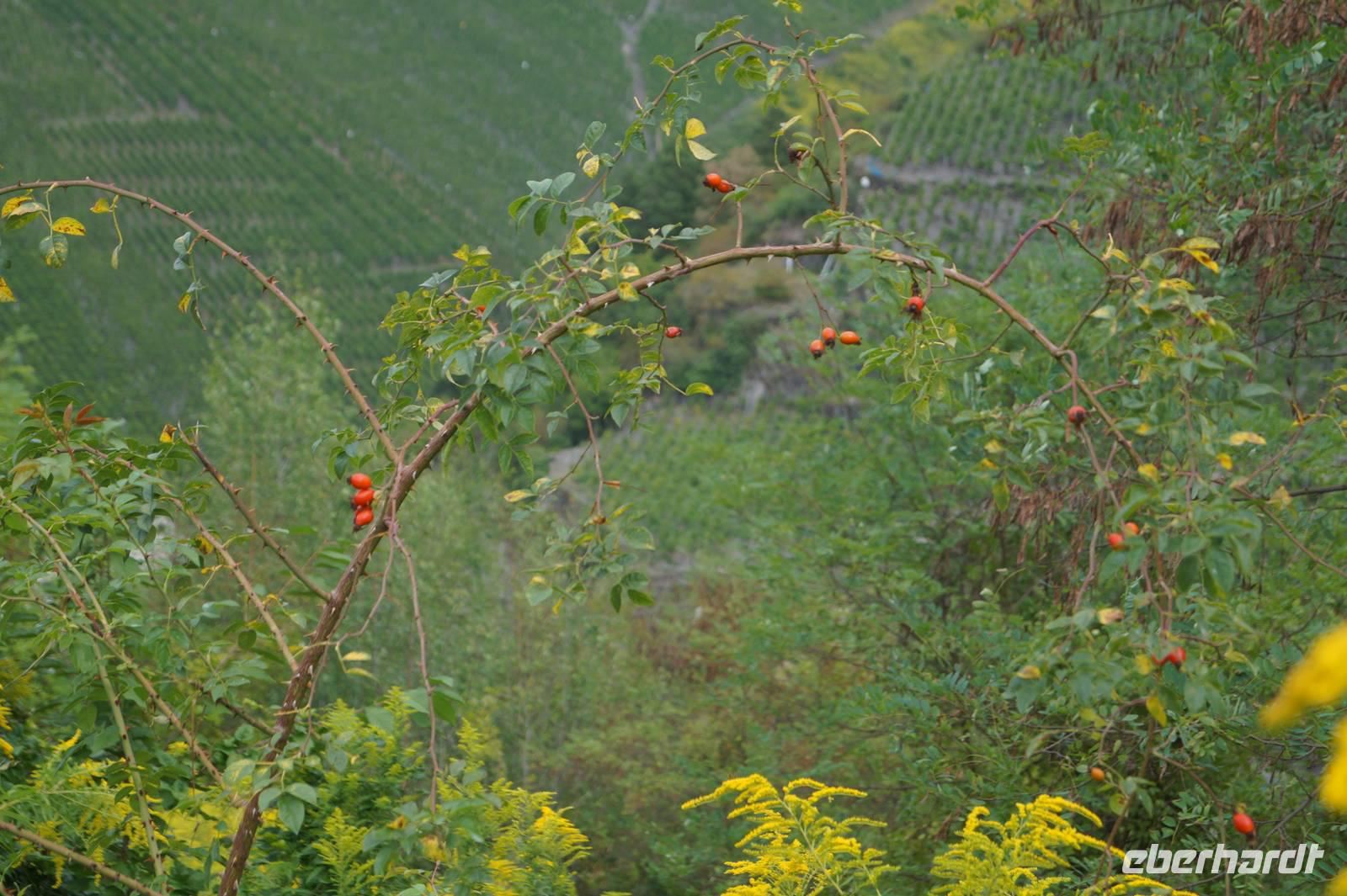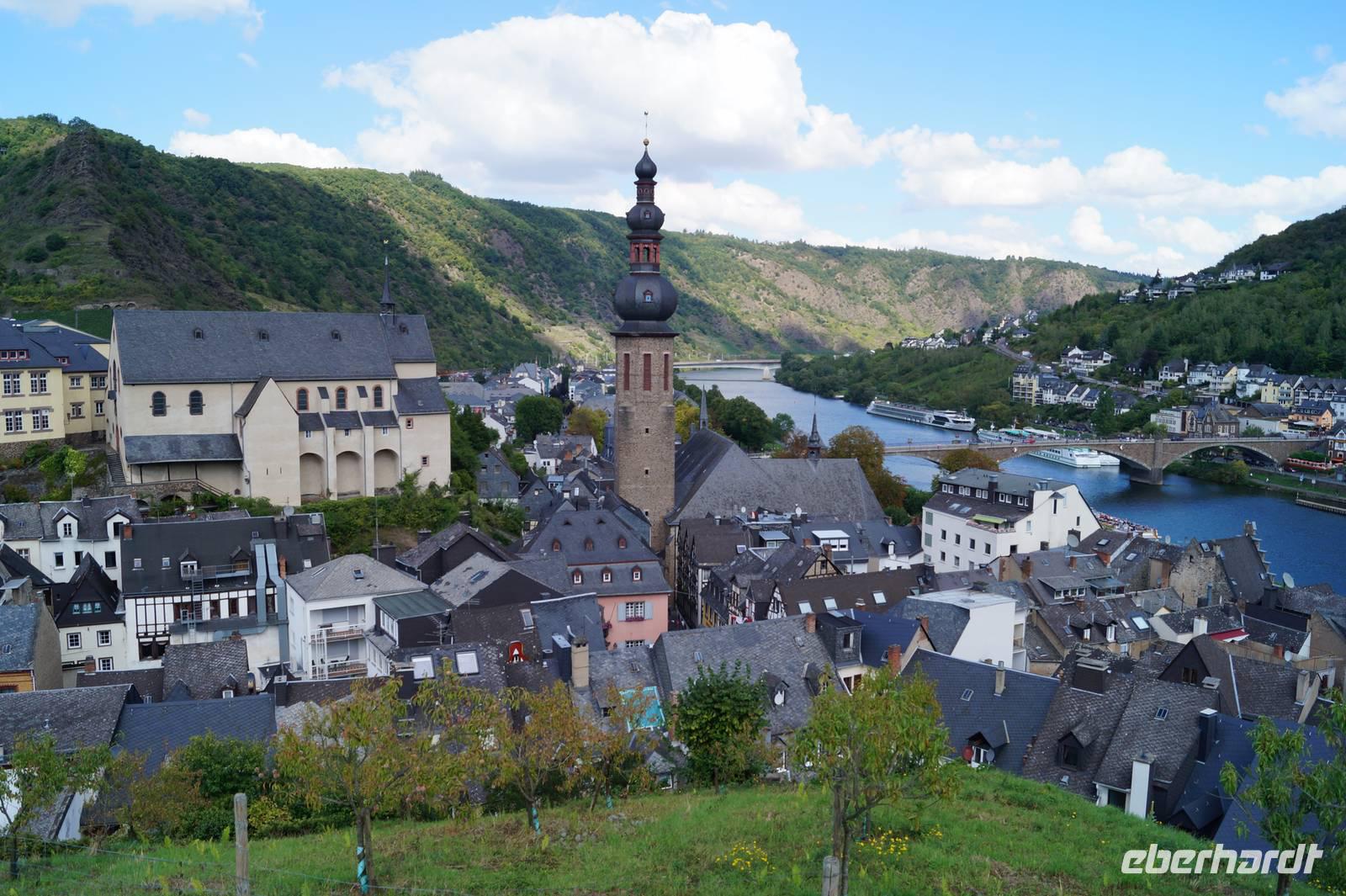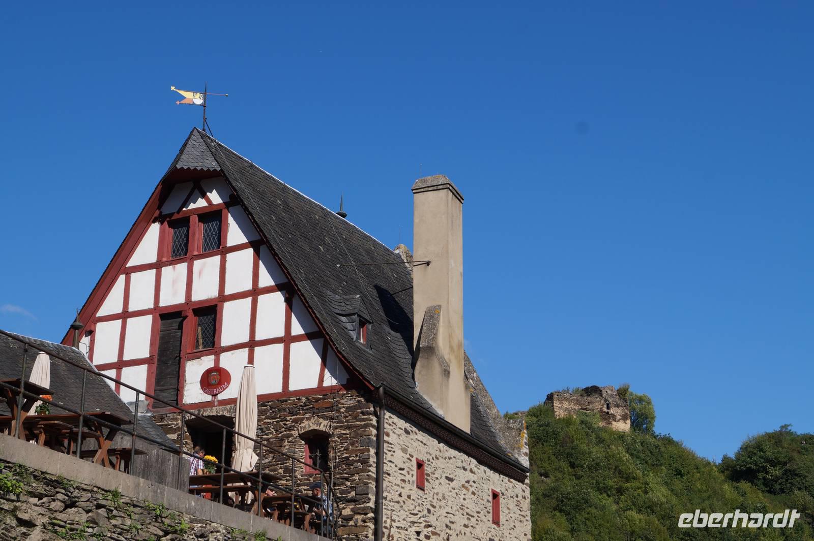 Entlang der Mosel ging es zurück gen Hotel, wobei unser nächster Zielort das hübsche Beilstein sein sollte. Auf den Spaziergängen des überschaubaren und lange nur über die Mosel, nicht über Straßen und Wege erreichbaren Ortes konnten wir das mittelalterliche Örtchen schnell durchstreifen. In der Wallfahrtskirche des von der Burg Metternich überragten Städchens, einem Barockbau der Zisterzienser, befindet sich noch aus Zeiten der Konfessionskonflikte eine schwarze Madonna spanischer Herkunft. Der Name Metternicht begegnet einem an der Mosel nicht von ungefähr immer wieder, auch der spätere österreichische Kanzler und restaurative Europapolitiker stammte aus dem hiesigen Adelsgeschlecht.