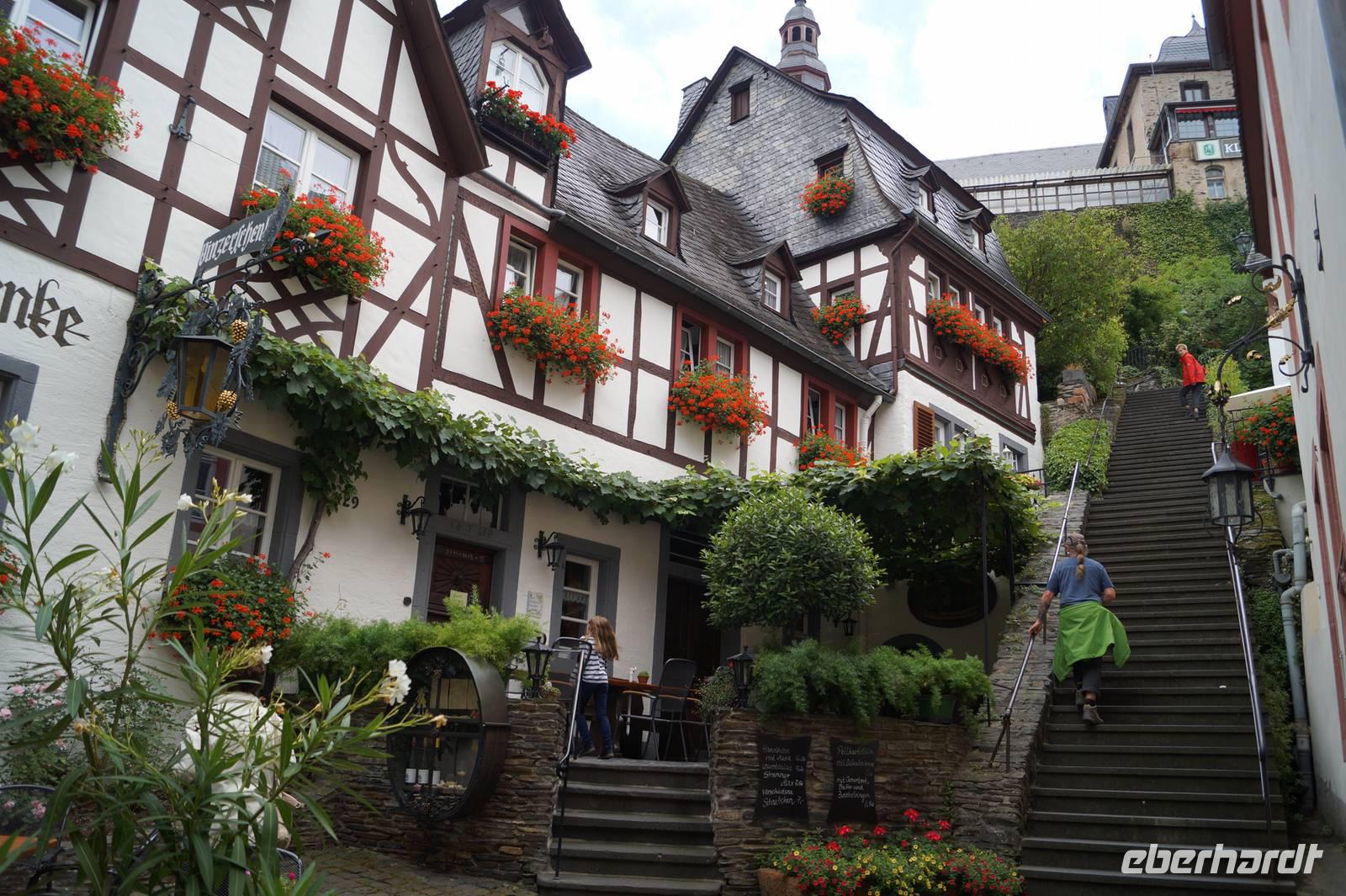 Der erste Tag unserer Reise an Rhein und Mosel begann ganz gemütlich. Mit unserem von Frieder gelenkten Bus fuhren wir von Dresden zu unserer Konstante dem Hotel Anker in Brodenbach, wo wir am Nachmittag ankamen und auch die selbst angereisten Gäste trafen. Wer wollte, konnte die erste Gelegenheit zum Spaziergang durch den kleinen Weinort an der Mosel nutzen.