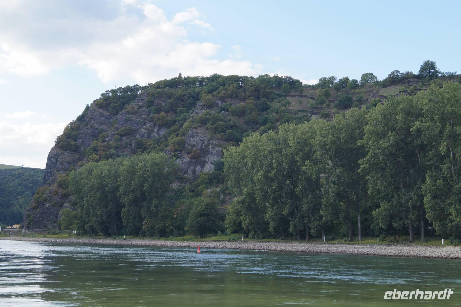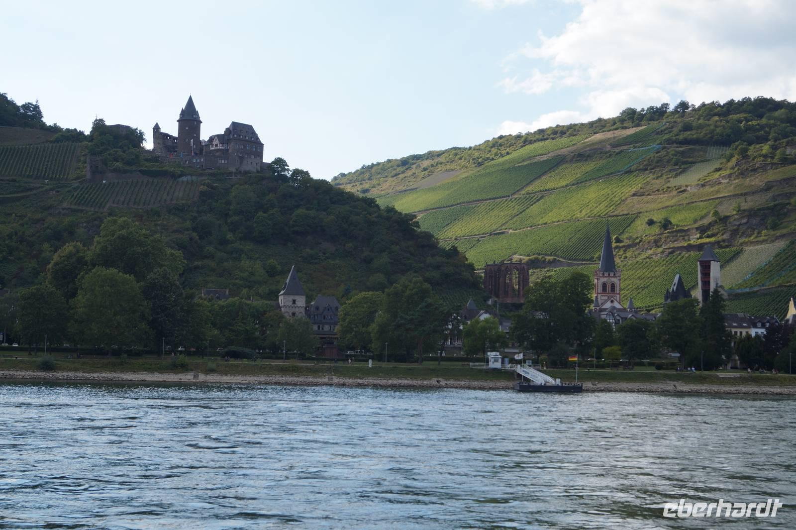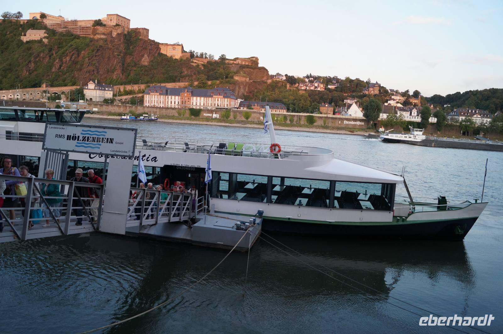Mit dem Schiff ging es, vorbei an Zollburgen, Märchenschlössern, viele davon mit Hohenzollernfahnen versehen, mittelalterlichen Städtchen, Weinorten und dem berühmten Loreleyfelsen vorbei zurück nach Koblenz, wo uns Frieder wieder in Empfang nahm, um uns zurück ins Hotel zu bringen.