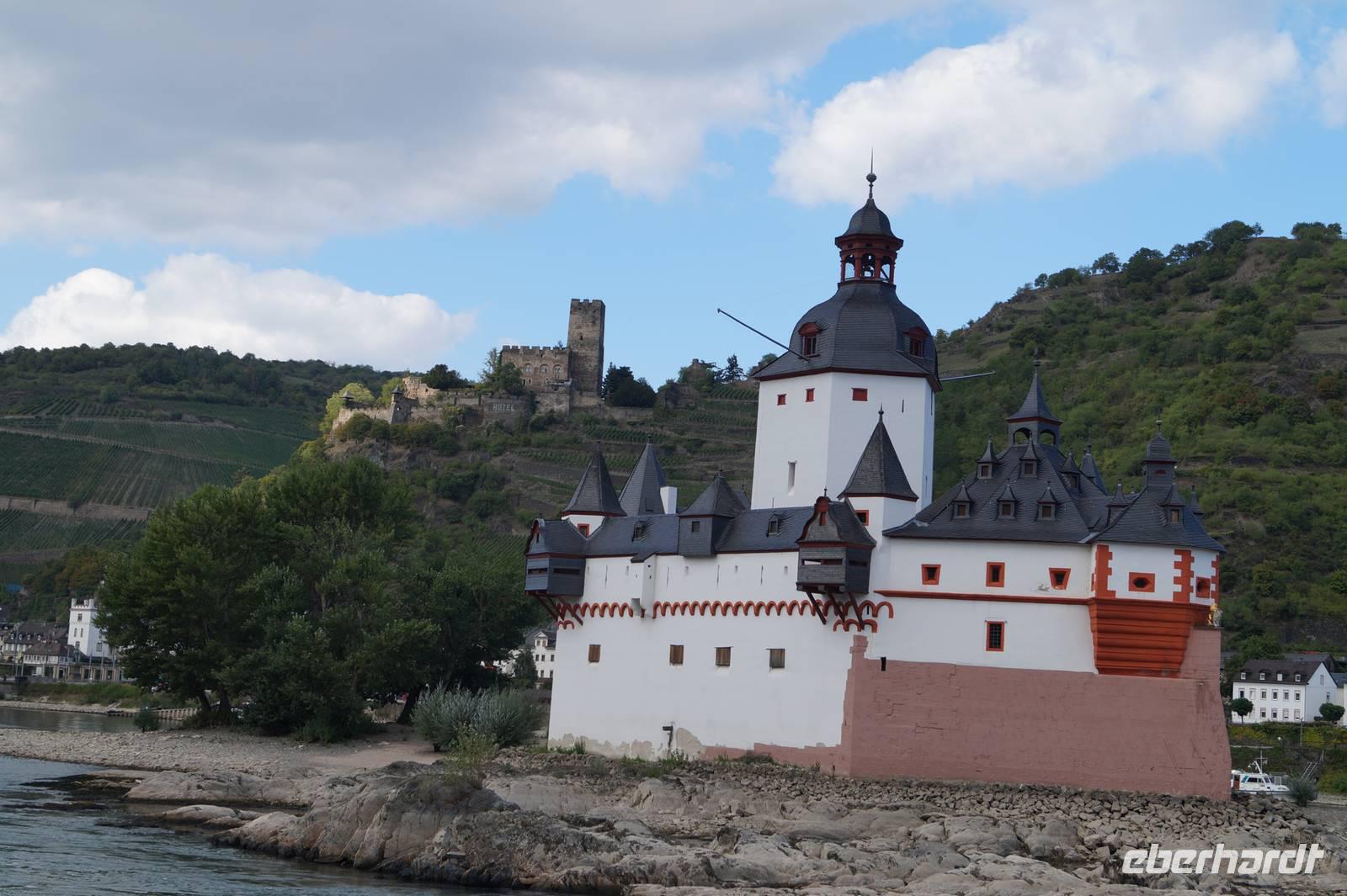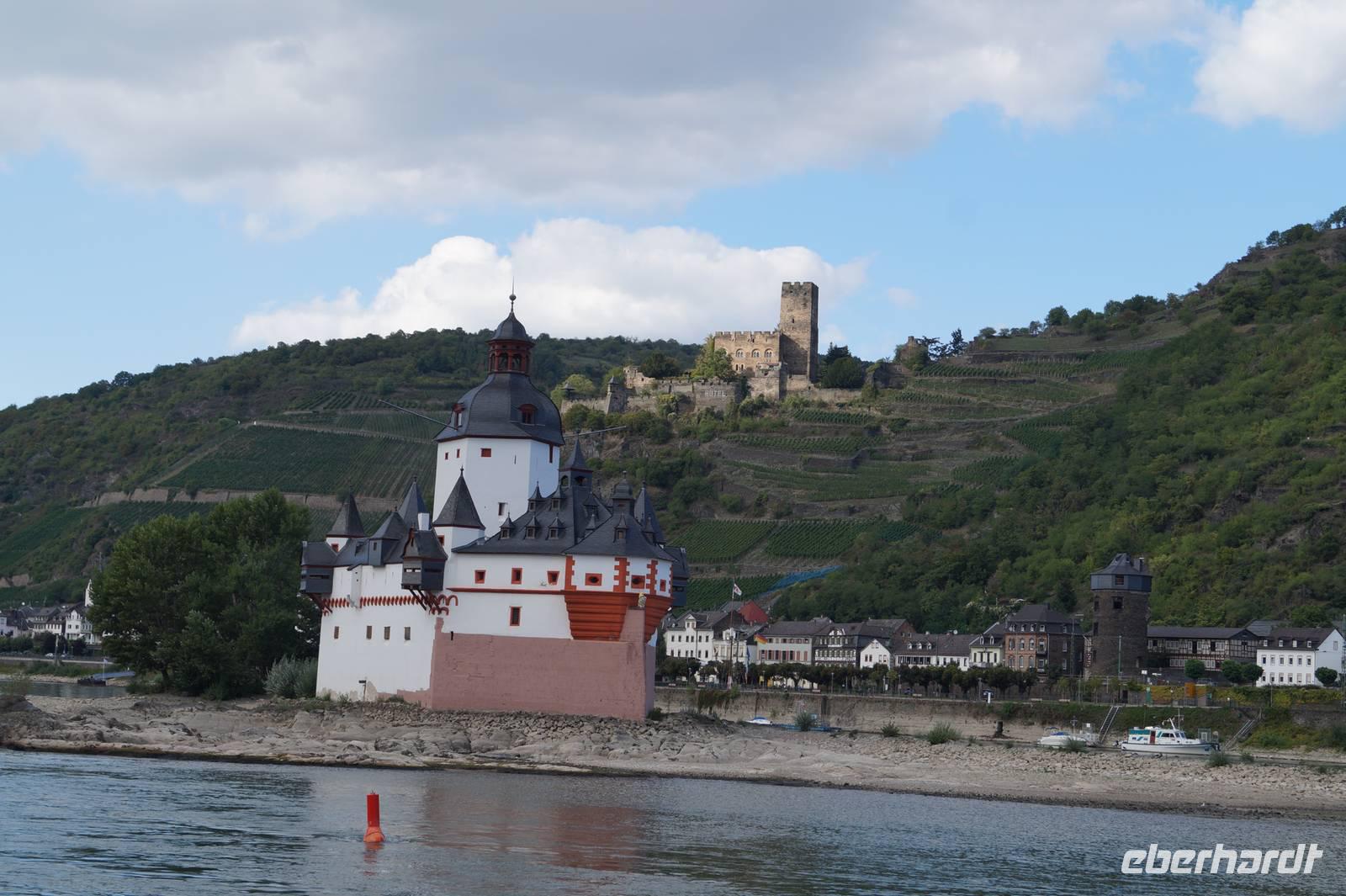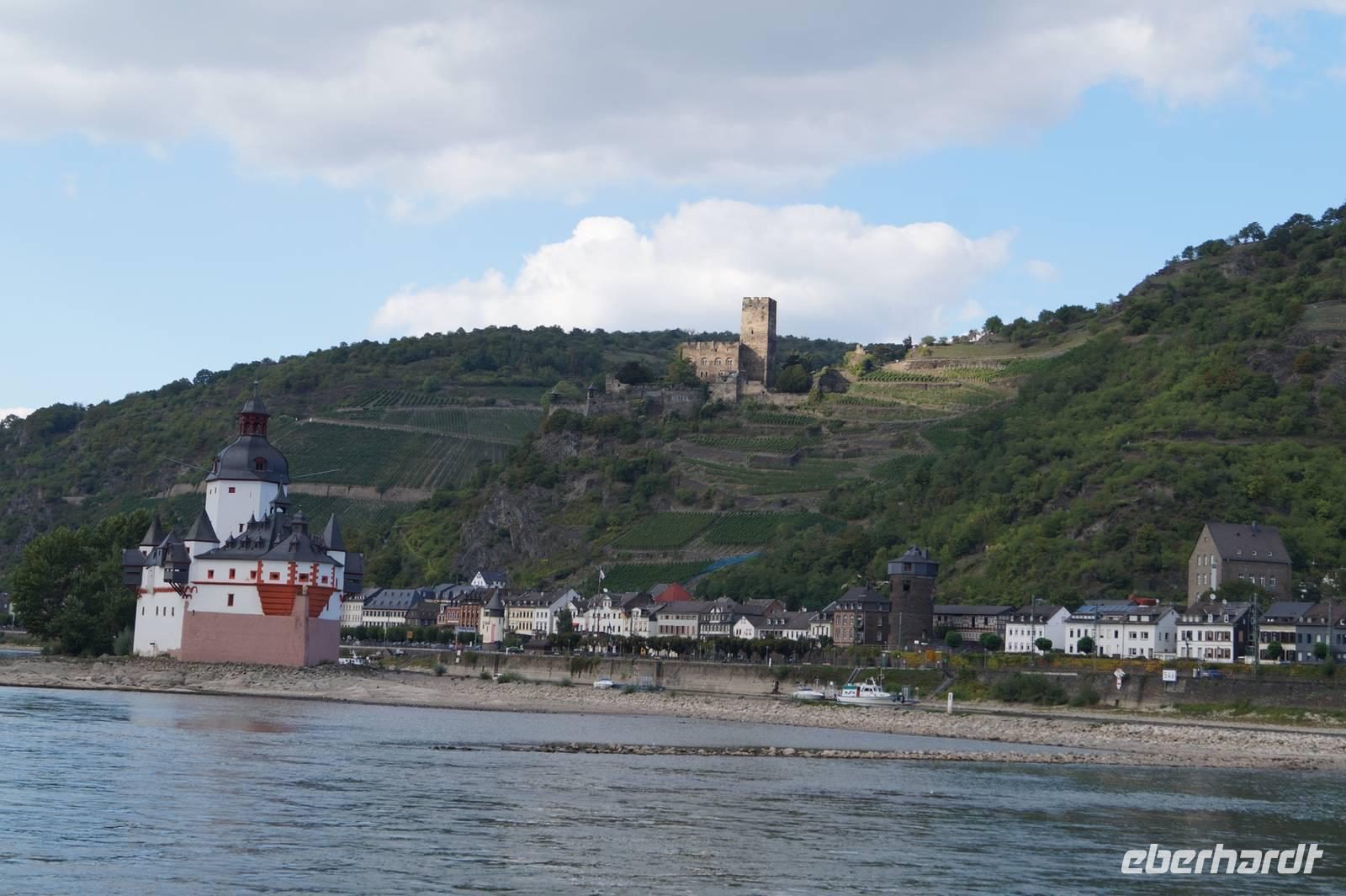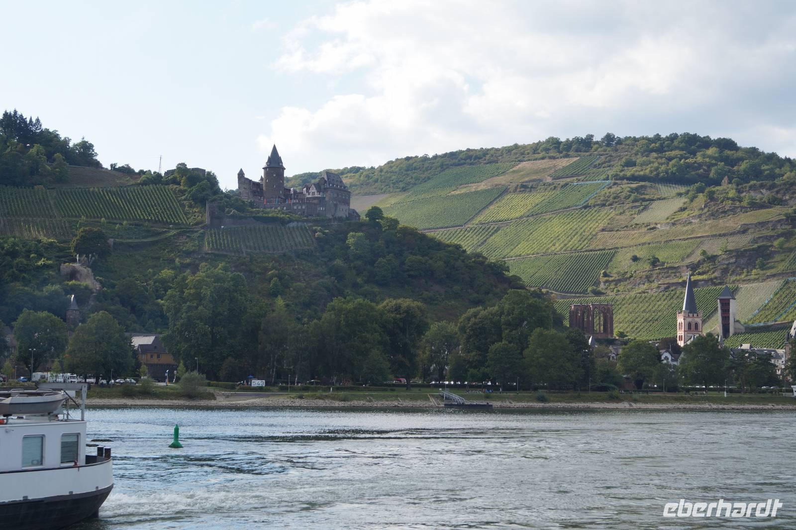 Mit dem Schiff ging es, vorbei an Zollburgen, Märchenschlössern, viele davon mit Hohenzollernfahnen versehen, mittelalterlichen Städtchen, Weinorten und dem berühmten Loreleyfelsen vorbei zurück nach Koblenz, wo uns Frieder wieder in Empfang nahm, um uns zurück ins Hotel zu bringen.