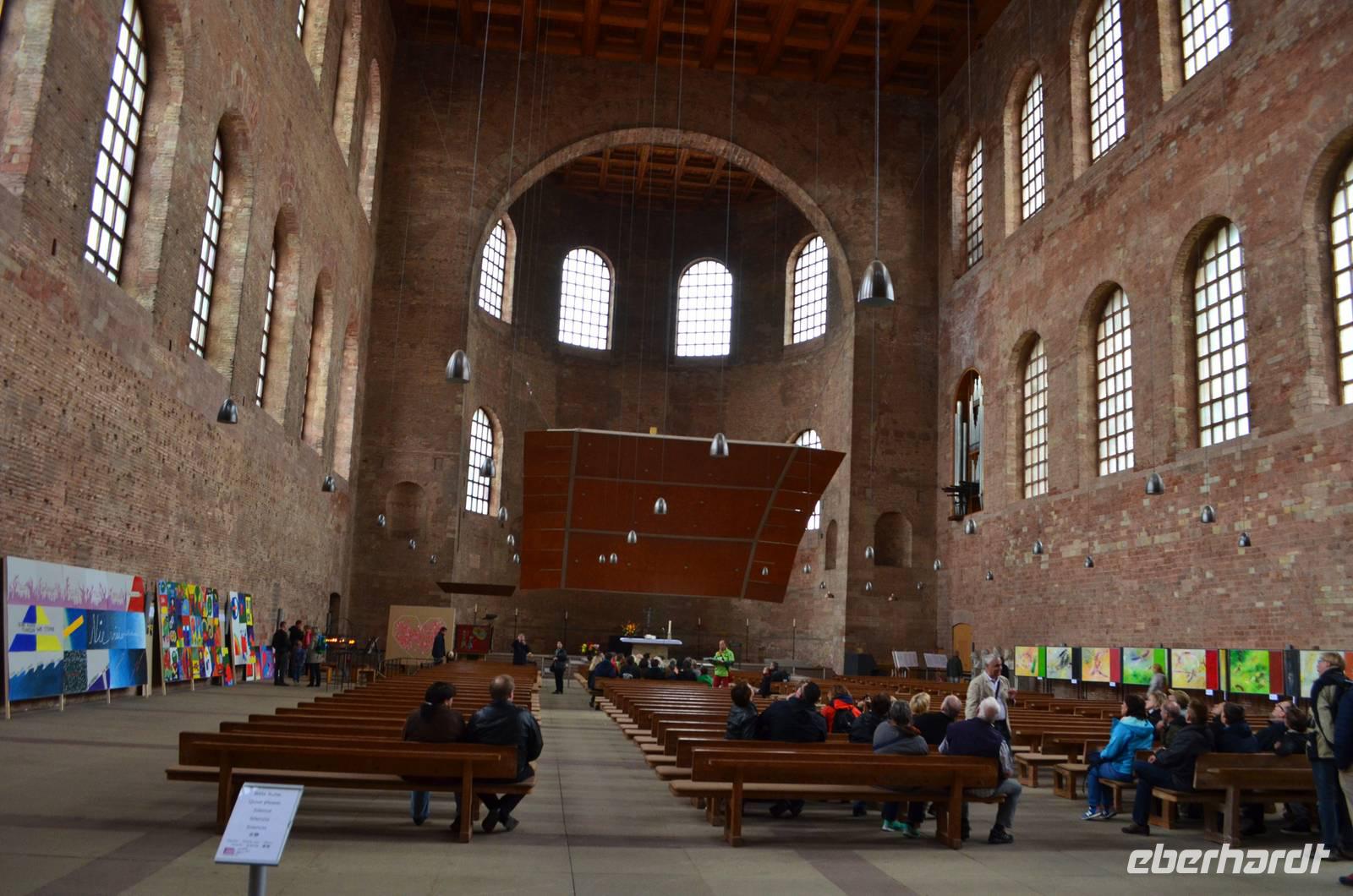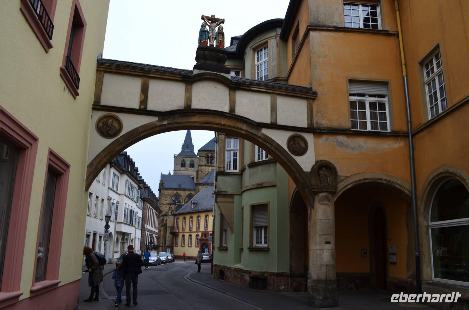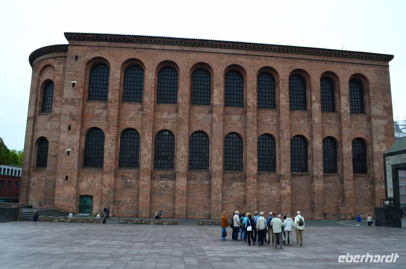 Nahe dem Porta Nigra, dem alten römischen Stadttor, erwartete uns schon unsere sehr nette Gästeführerin, Frau Dorothee Michels. Mit ihr lernten wir nun die Sehenswürdigkeiten von Trier kennen. Angefangen mit dem Porta Nigra ging es die Simeonstraße entlang zum Dreikönigenhaus, zur Judengasse, zum Hauptmarkt, zur Domfreiheit mit dem mächtigen Bauwerk des Domes und der gotischen Liebfrauenkirche daneben. Von hier war es nicht weit bis zur Konstantinbasilika und dem Palast von Balthasar Neumann, dem Barockgarten und zum Schluss den Kaiserthermen. Anschließend war Zeit für eigene Erkundungen, wie z.B. den Karl-Marx-Häusern oder einem Sitzplatz in einem hübschen Café.