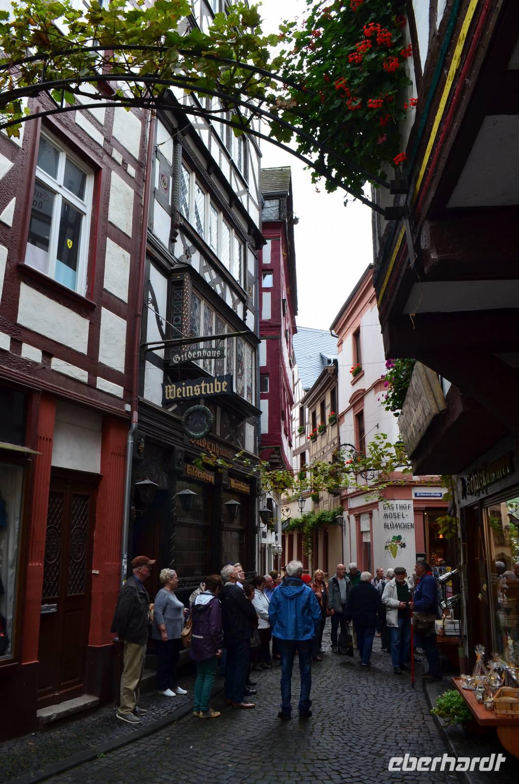 Seine Stadtführung durch die Gassen von Bernkastel war gefüllt mit vielen Anekdoten, aber auch allem Wissenswerten über den Lauf der Geschichte und das Schicksal des kleinen Städtchens am Fluss. Auch hier konnten wir anschließend noch etwas individuell durch die schönen Gassen ziehen, bevor es dann wieder stromab ging.