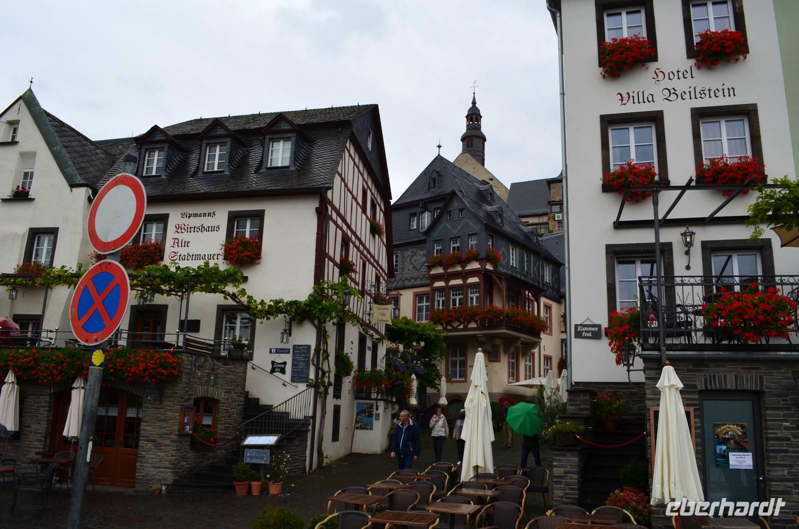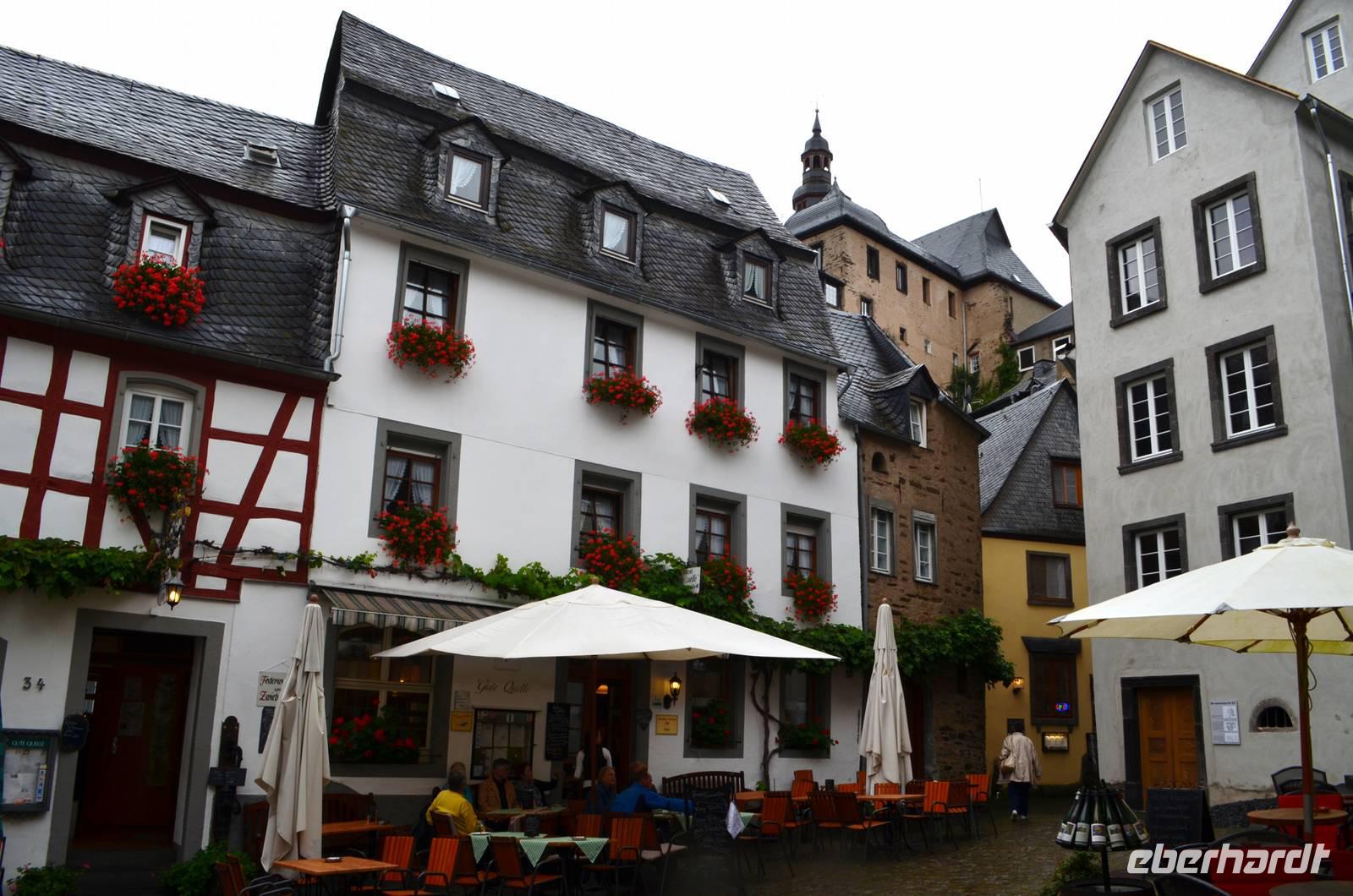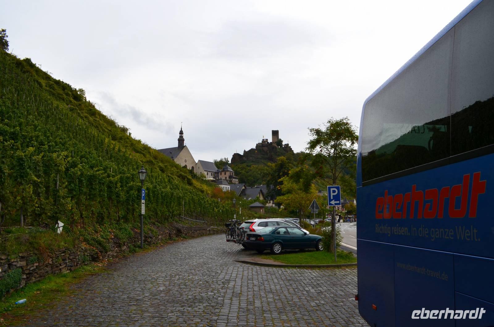 Der romantische Ort Beilstein war unsere nächste Station. Unter der Ruine der Burg Metternich liegen die malerischen Gassen der kleinen Ortschaft zusammengedrängt. Leider trübte etwas Nieselregen unseren Aufenthalt beim „Dornröschen der Mosel", wie der verträumte Ort auch genannt wird.