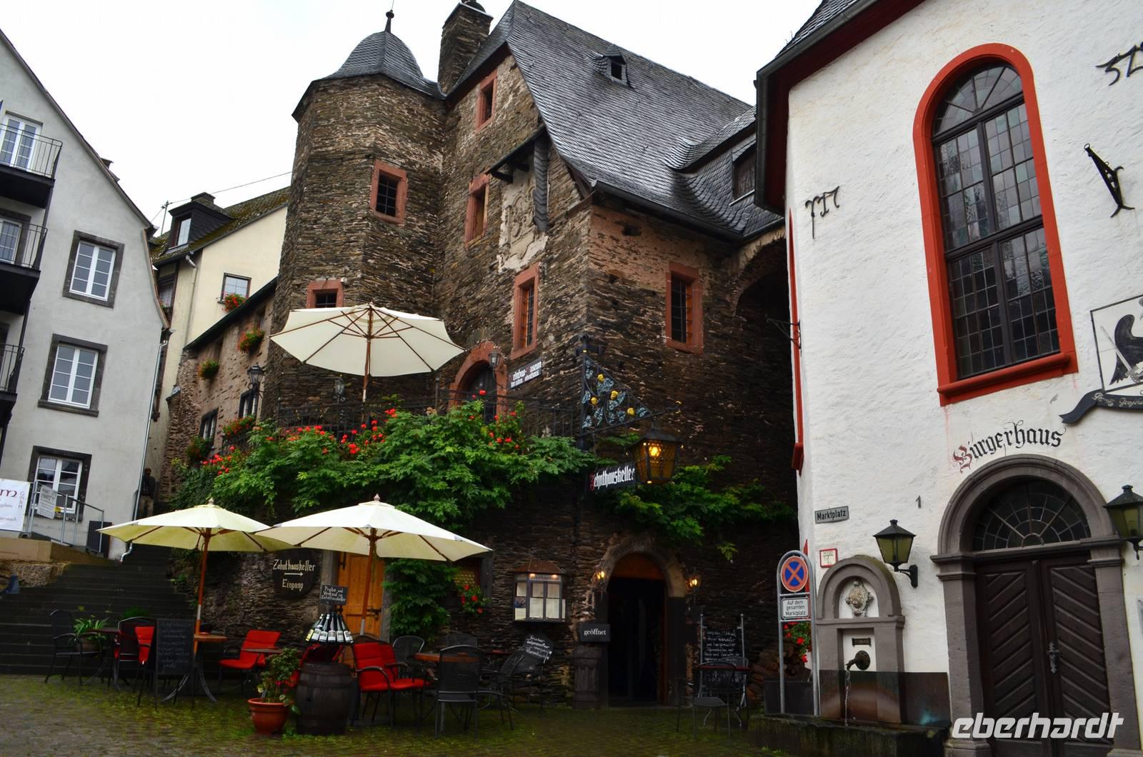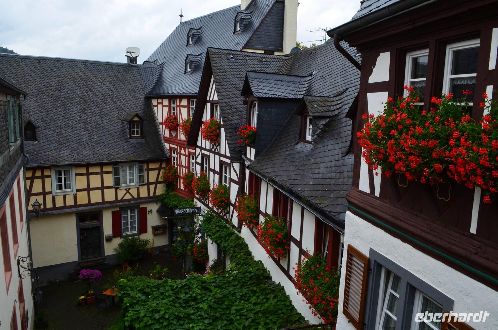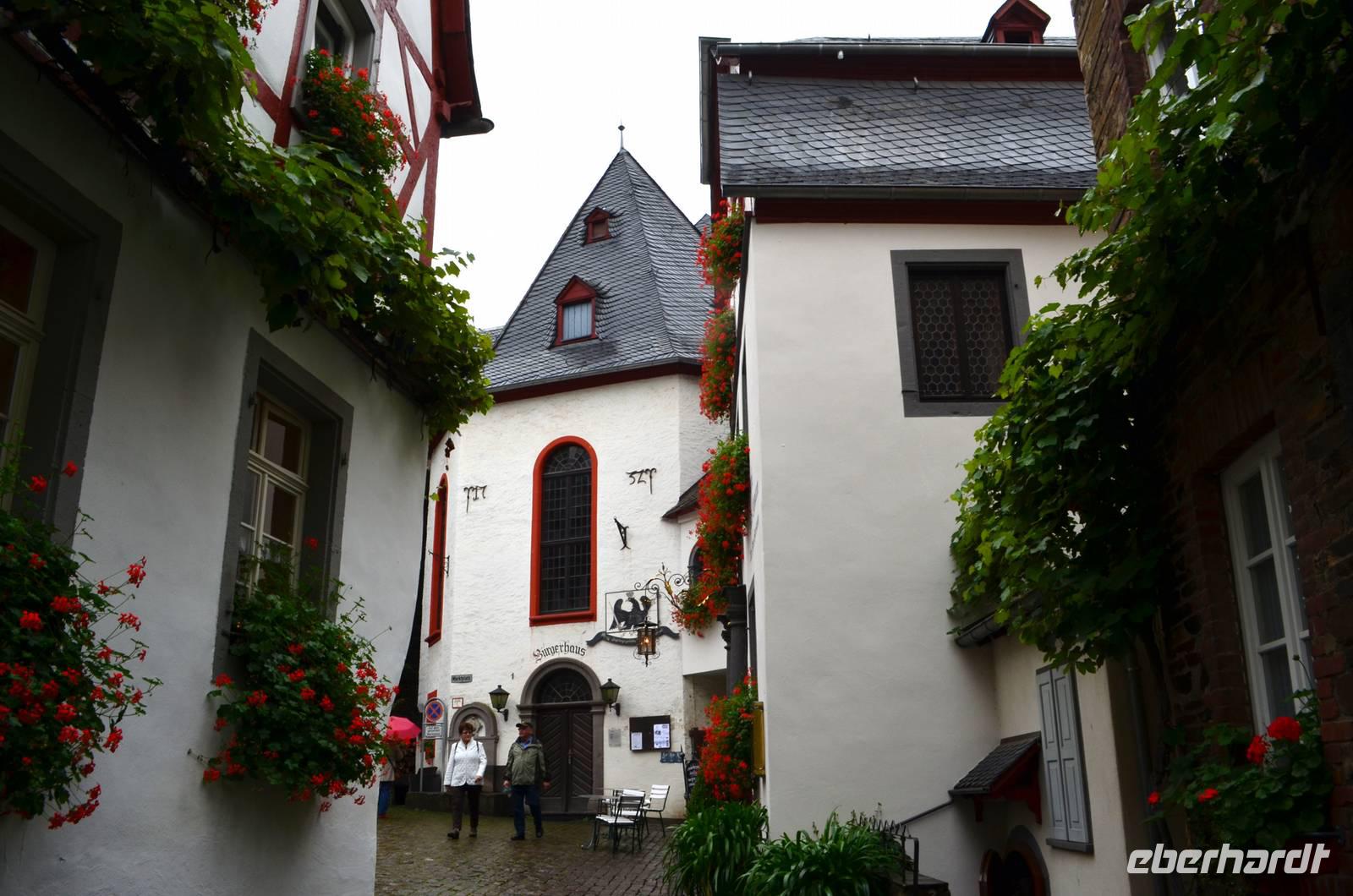 Der romantische Ort Beilstein war unsere nächste Station. Unter der Ruine der Burg Metternich liegen die malerischen Gassen der kleinen Ortschaft zusammengedrängt. Leider trübte etwas Nieselregen unseren Aufenthalt beim „Dornröschen der Mosel", wie der verträumte Ort auch genannt wird.