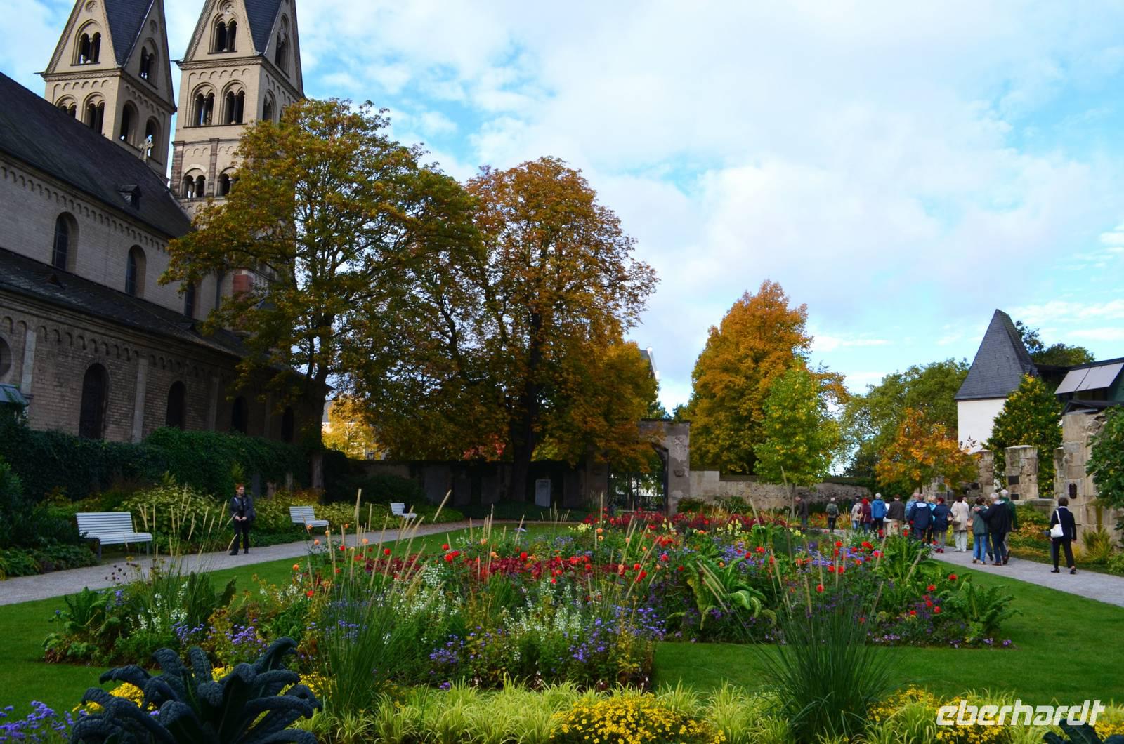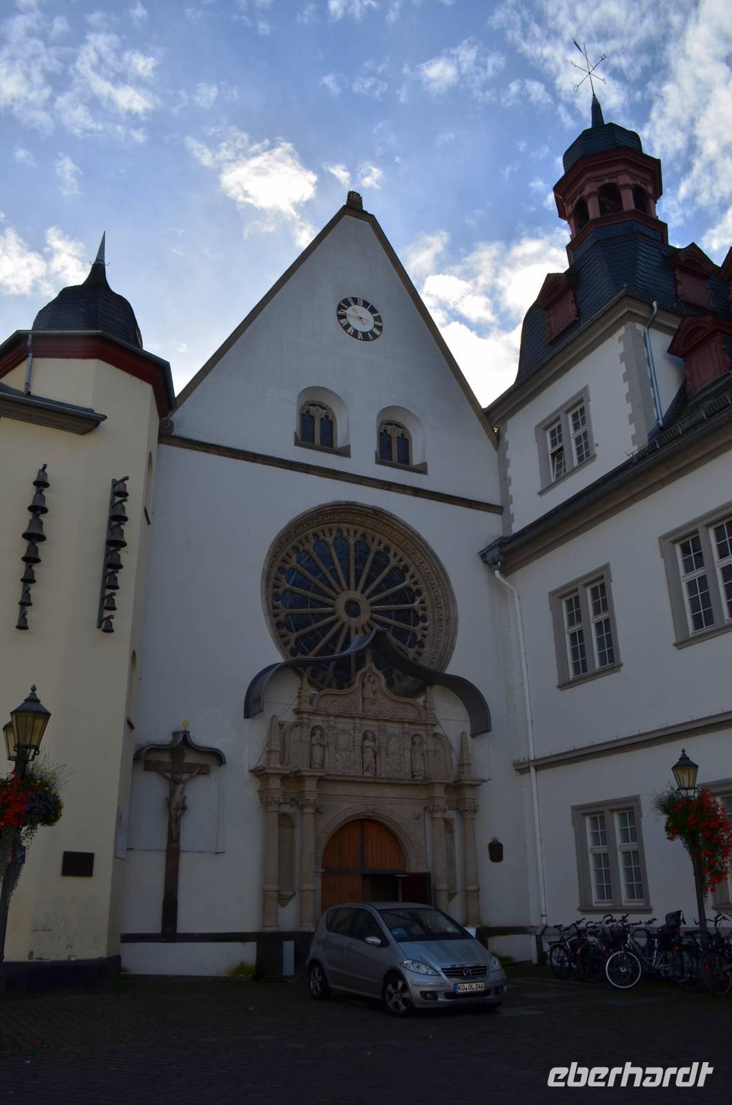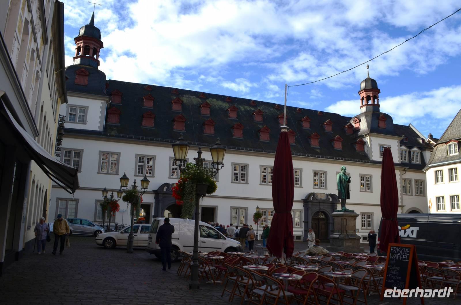 Hier begann unsere Stadtführung mit Frau Rosemarie Hünerfauth. Vom Deutschen Eck spazierten wir in die Innenstadt, vorbei an den Sehenswürdigkeiten der Stadt wie dem Klosterhof, der Basilika St. Kastor, dem Deutschherrenhaus, dem Münzplatz, dem Schnarrelbrunnen, den Vier Türmen, den Kunsthandwerkergassen und der Liebfrauenkirche und vielen mehr. Danach führte uns der gemeinsamer Fußweg wieder zurück zum Rheinufer und zur Seilbahnstation.