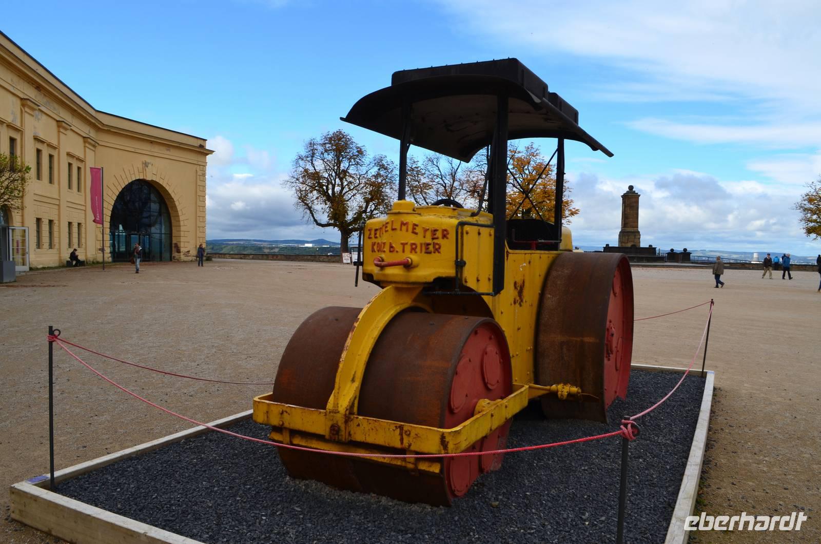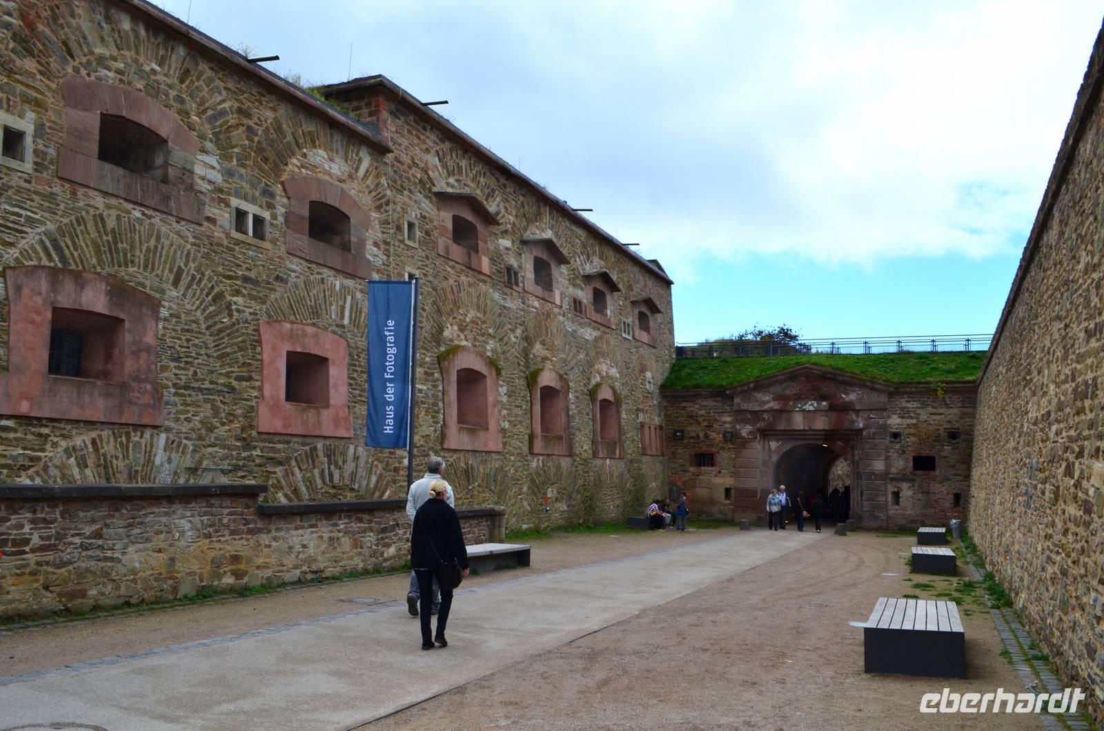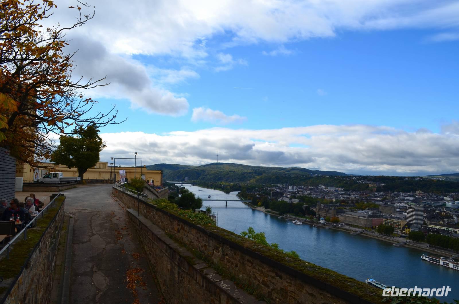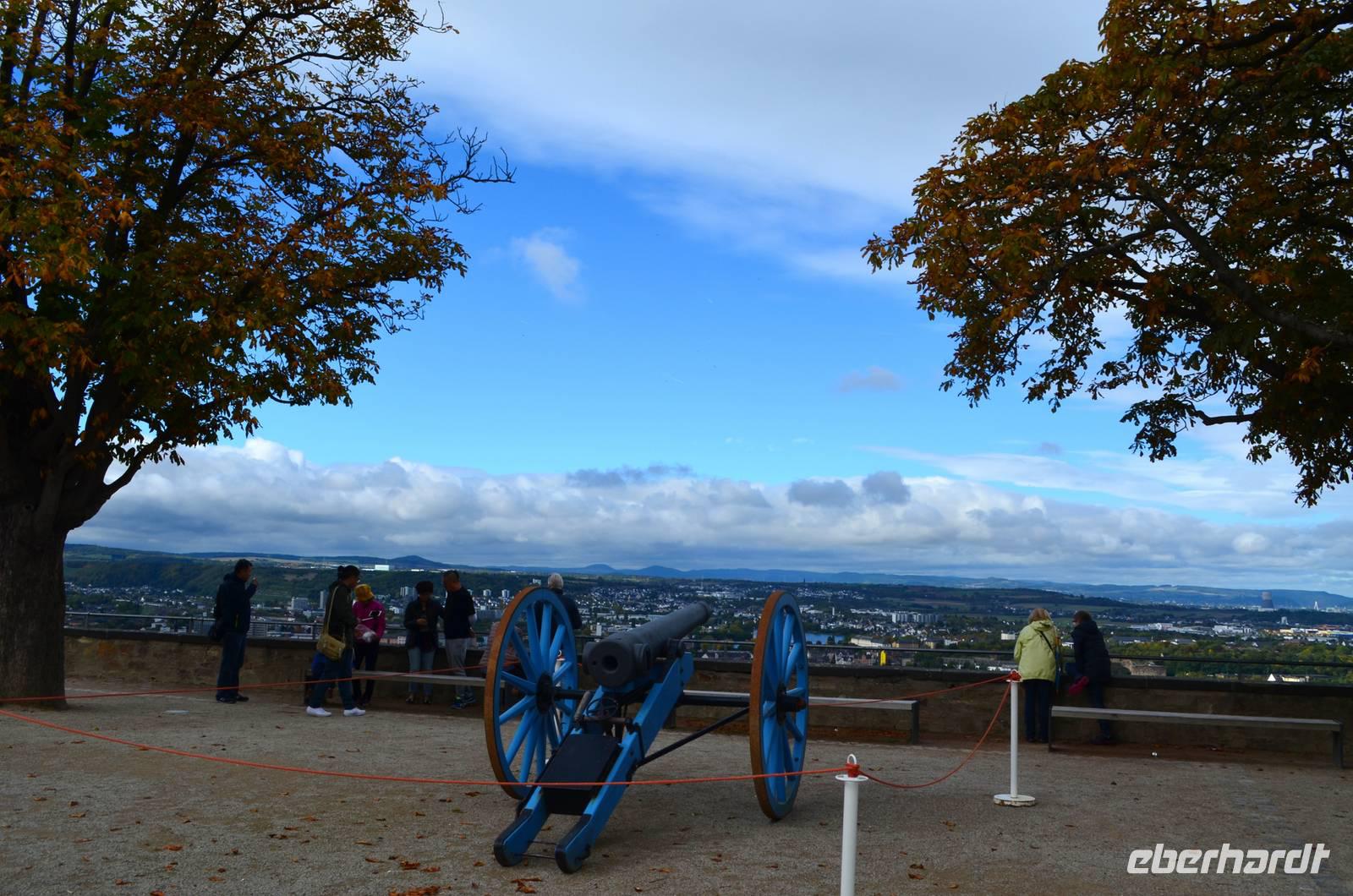 Vor der Seilbahnfahrt zur Festung Ehrenbreitstein, wurden Übersichtspläne für die Orientierung im weitläufigen Festungsgelände ausgeteilt. So konnten wir diese Anlage individuell erschließen und vor allem die tolle Aussicht hinunter auf das Deutsche Eck genießen.