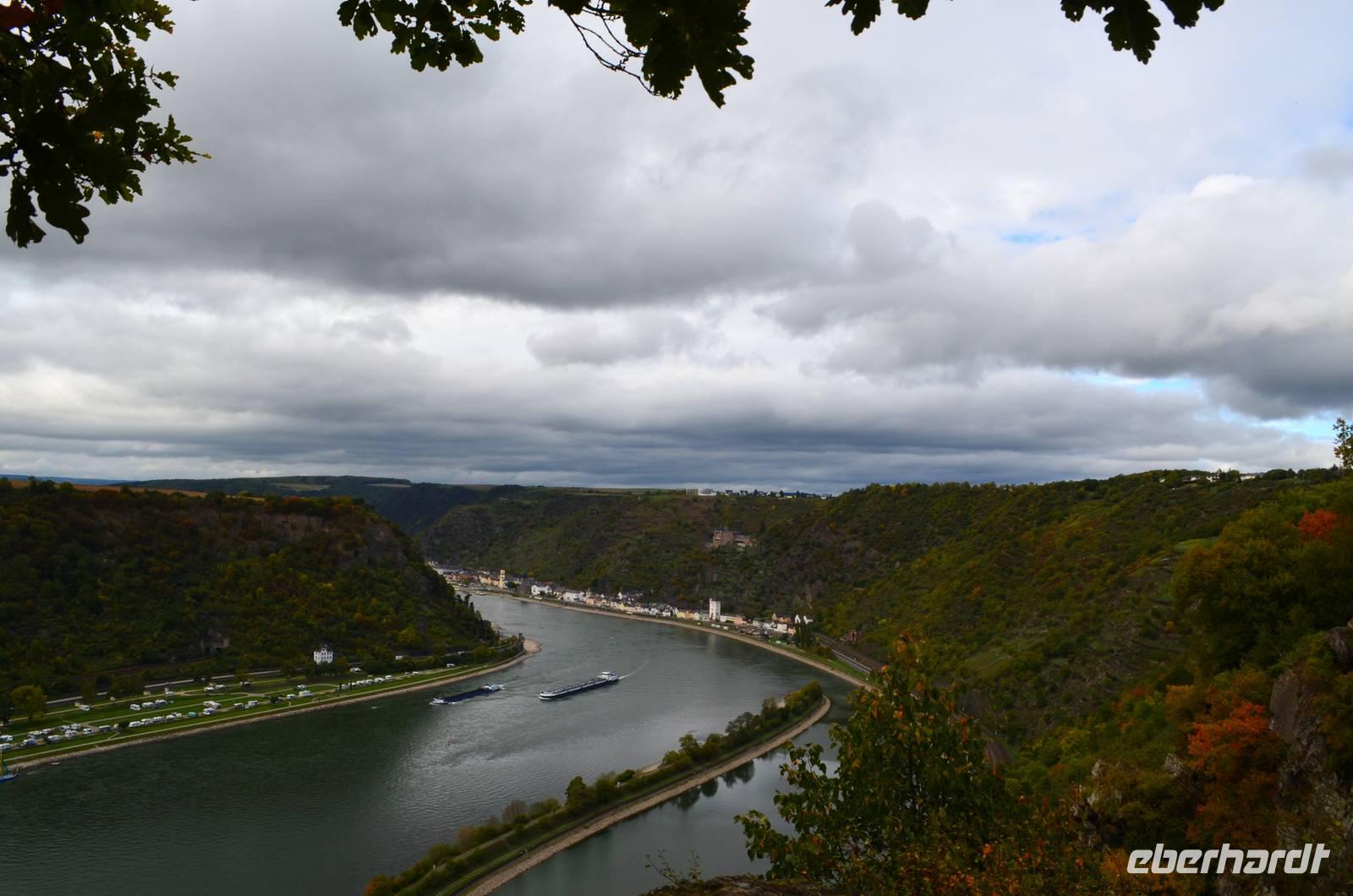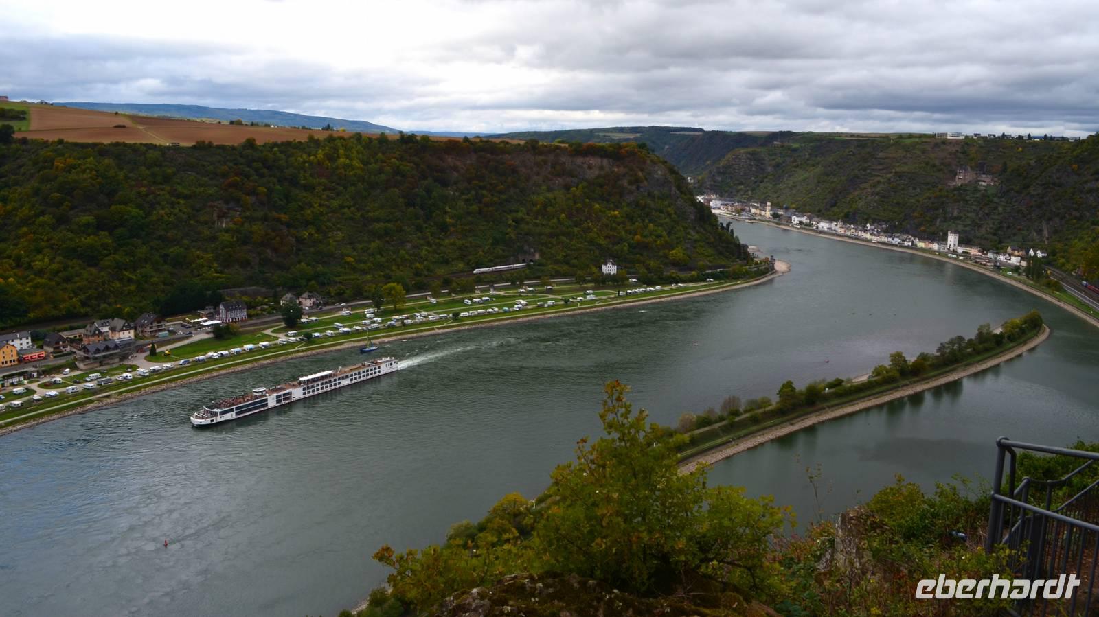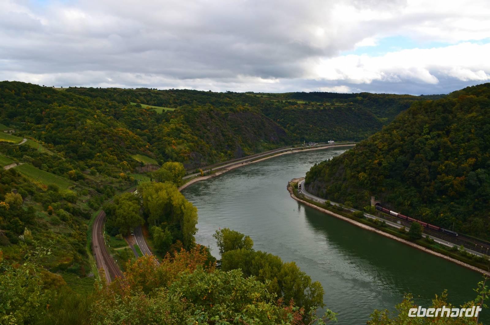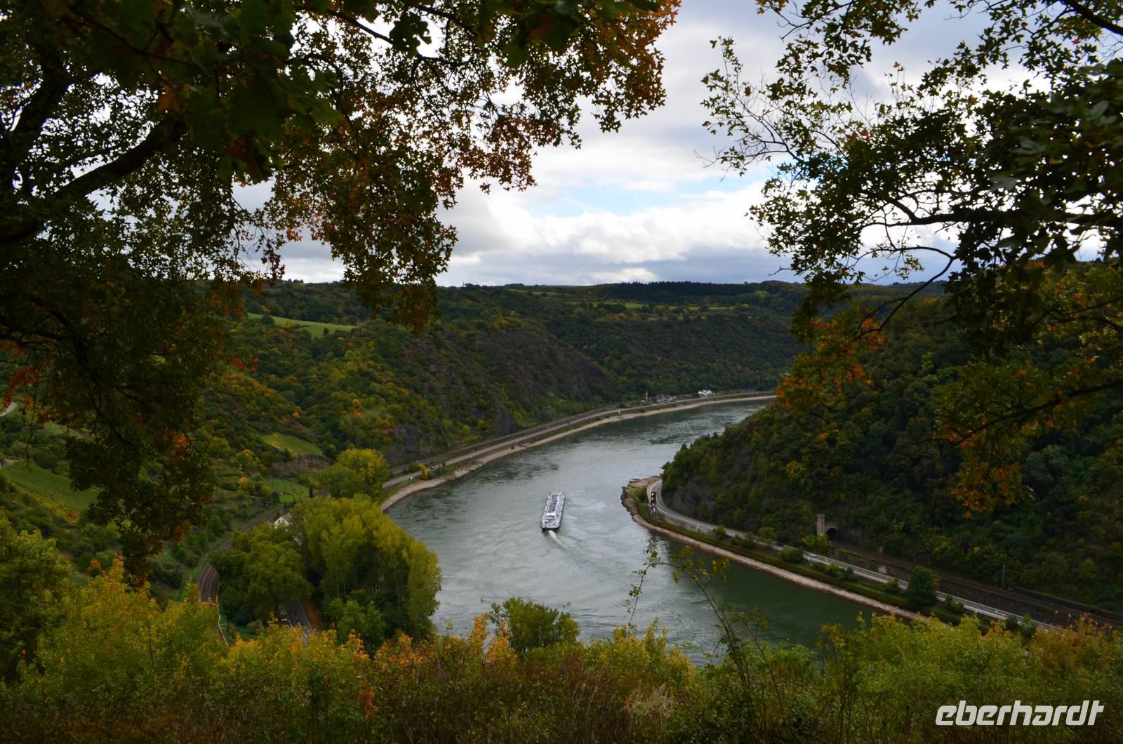 Nach der Talfahrt und dem Rückweg zum Bus fuhren wir am Rhein aufwärts Richtung St. Goarshausen und zur Auffahrt zum Loreleyfelsen. Den Loreleyfelsen wollten wir unbedingt besichtigen und die schönen Ausblicke ins Rheintal auf dem Rundweg erleben.