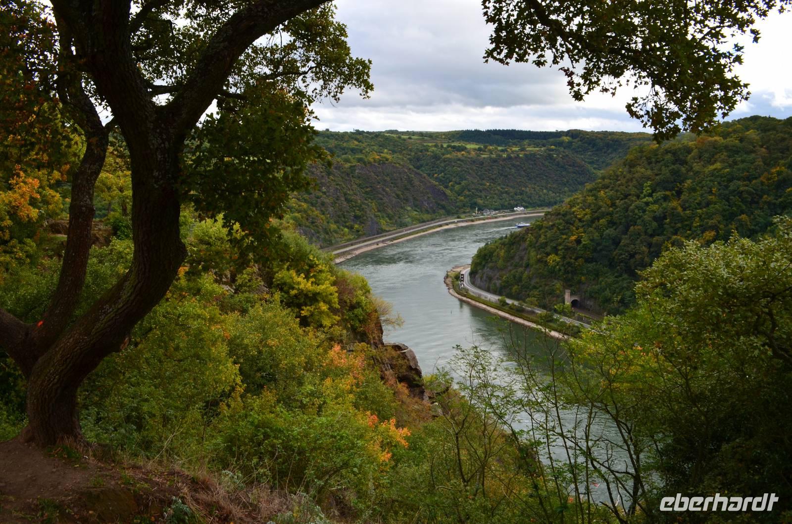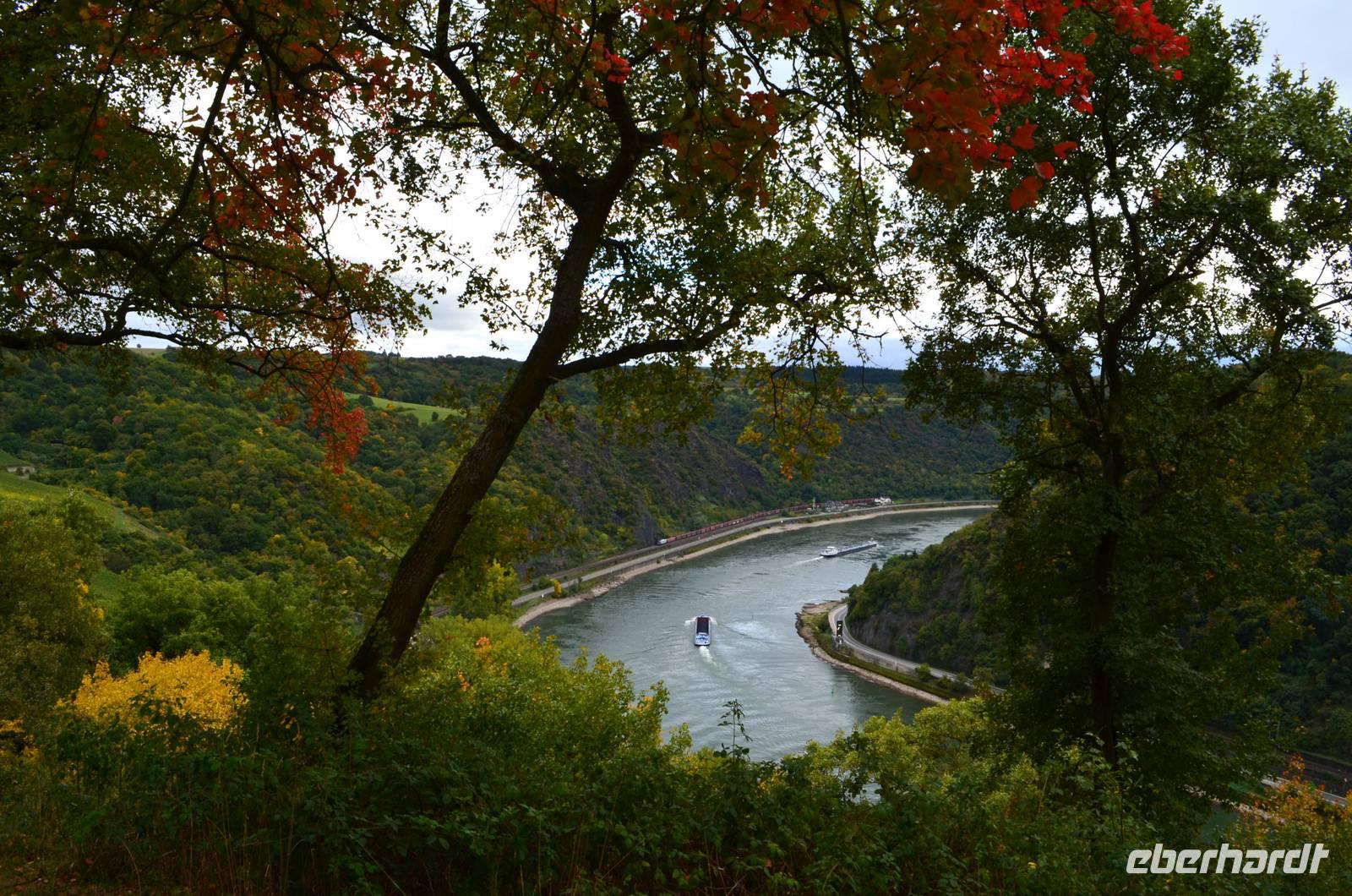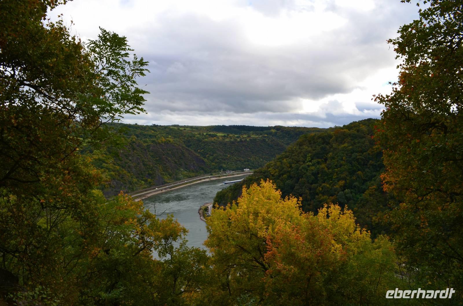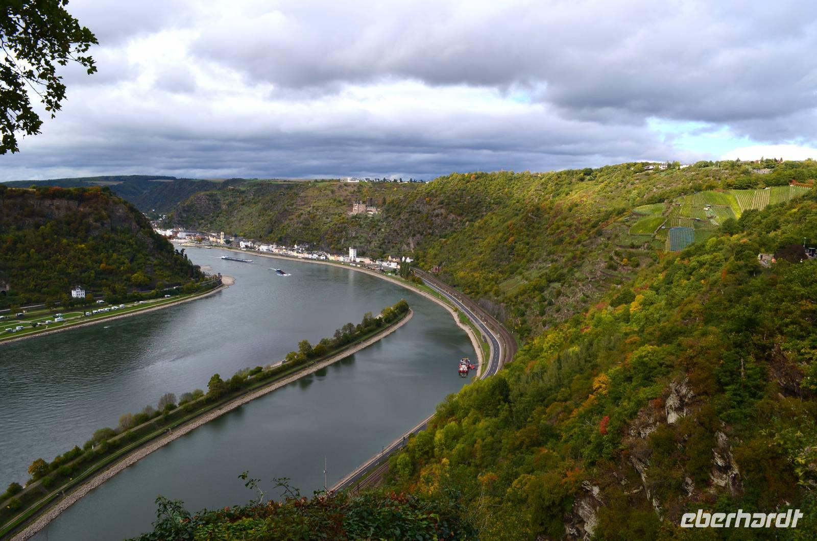 Nach der Talfahrt und dem Rückweg zum Bus fuhren wir am Rhein aufwärts Richtung St. Goarshausen und zur Auffahrt zum Loreleyfelsen. Den Loreleyfelsen wollten wir unbedingt besichtigen und die schönen Ausblicke ins Rheintal auf dem Rundweg erleben.