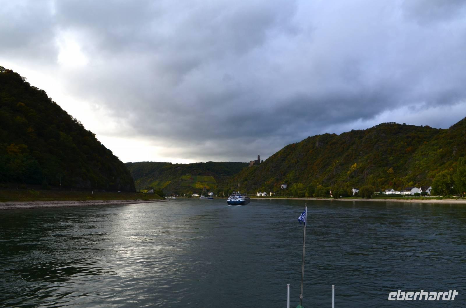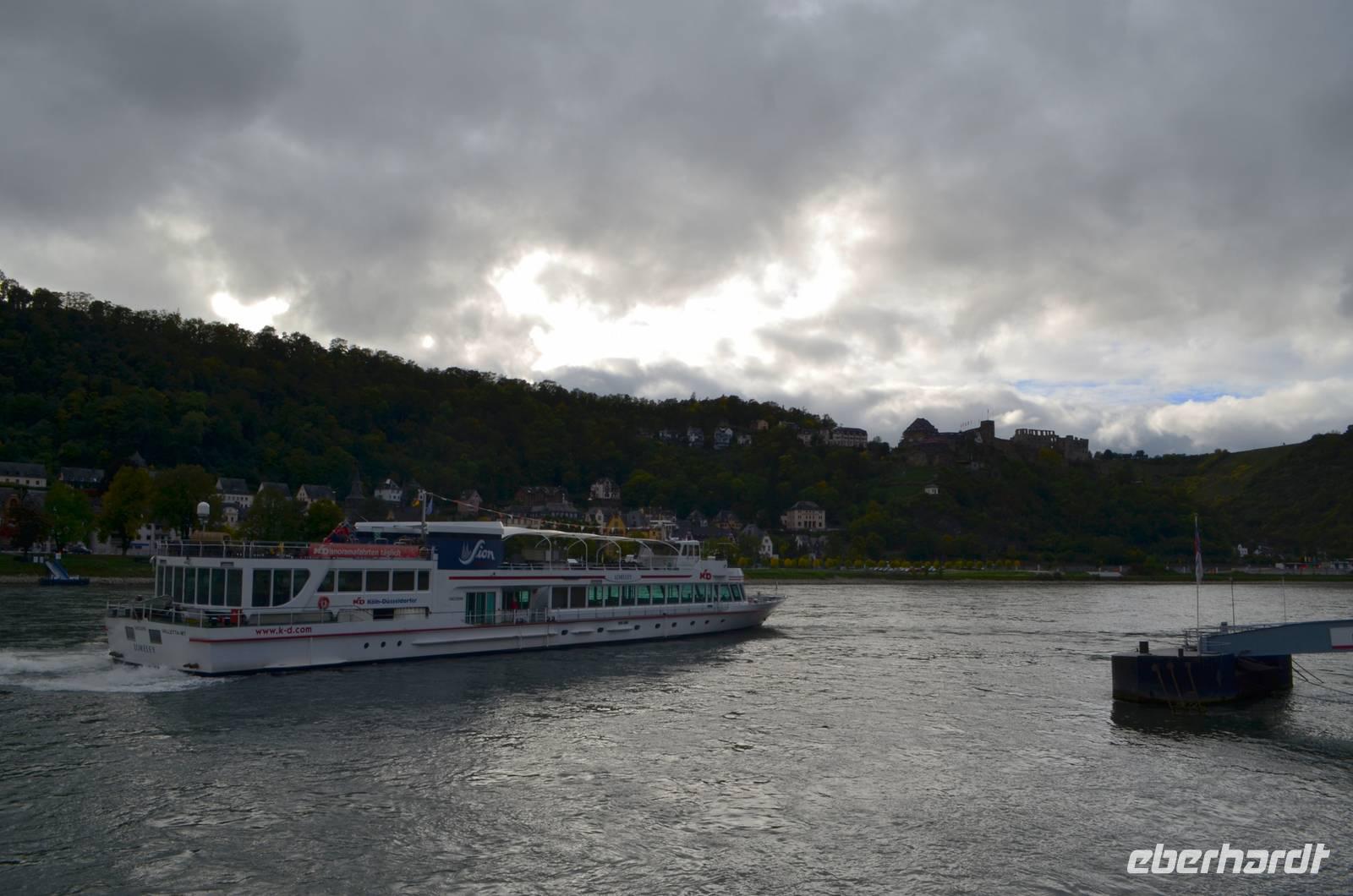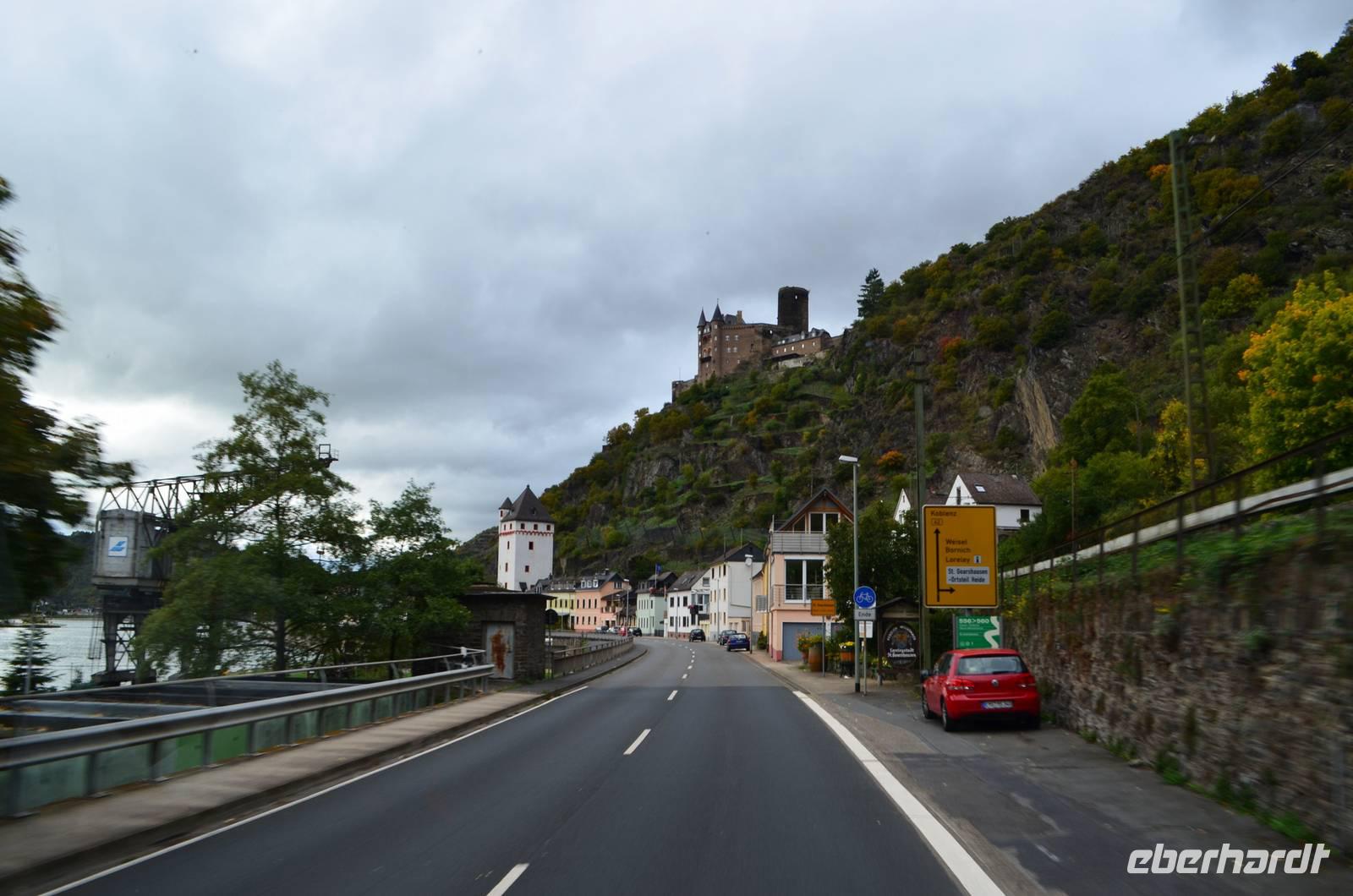 Auf der Rückfahrt hinunter nach St. Goarshausen, wählten wir die Fahrt über den Ort Kaub. So konnten wir die berühmte Pfalz im Rhein sehen aber auch den Loreleyfelsen nochmals aus der Talsicht bewundern.