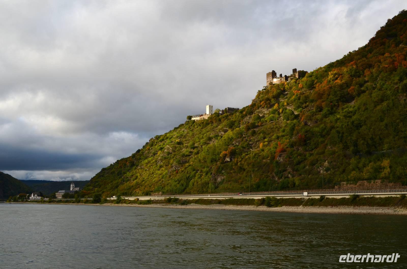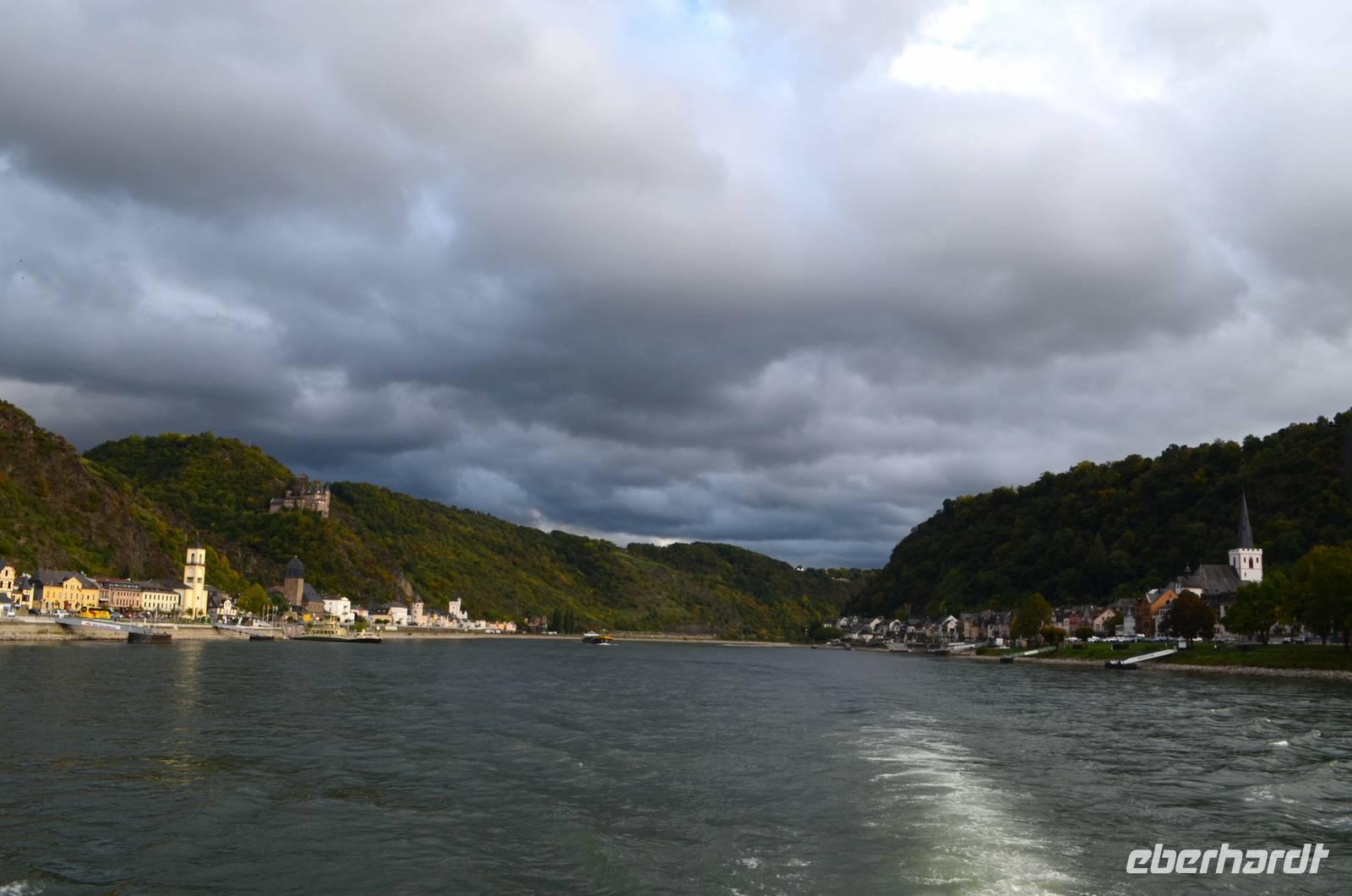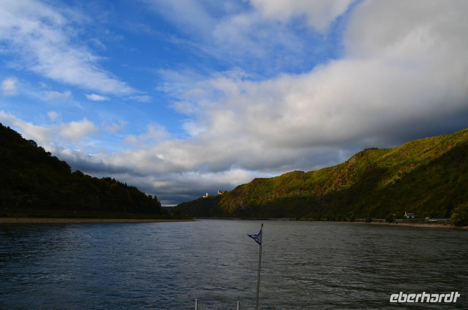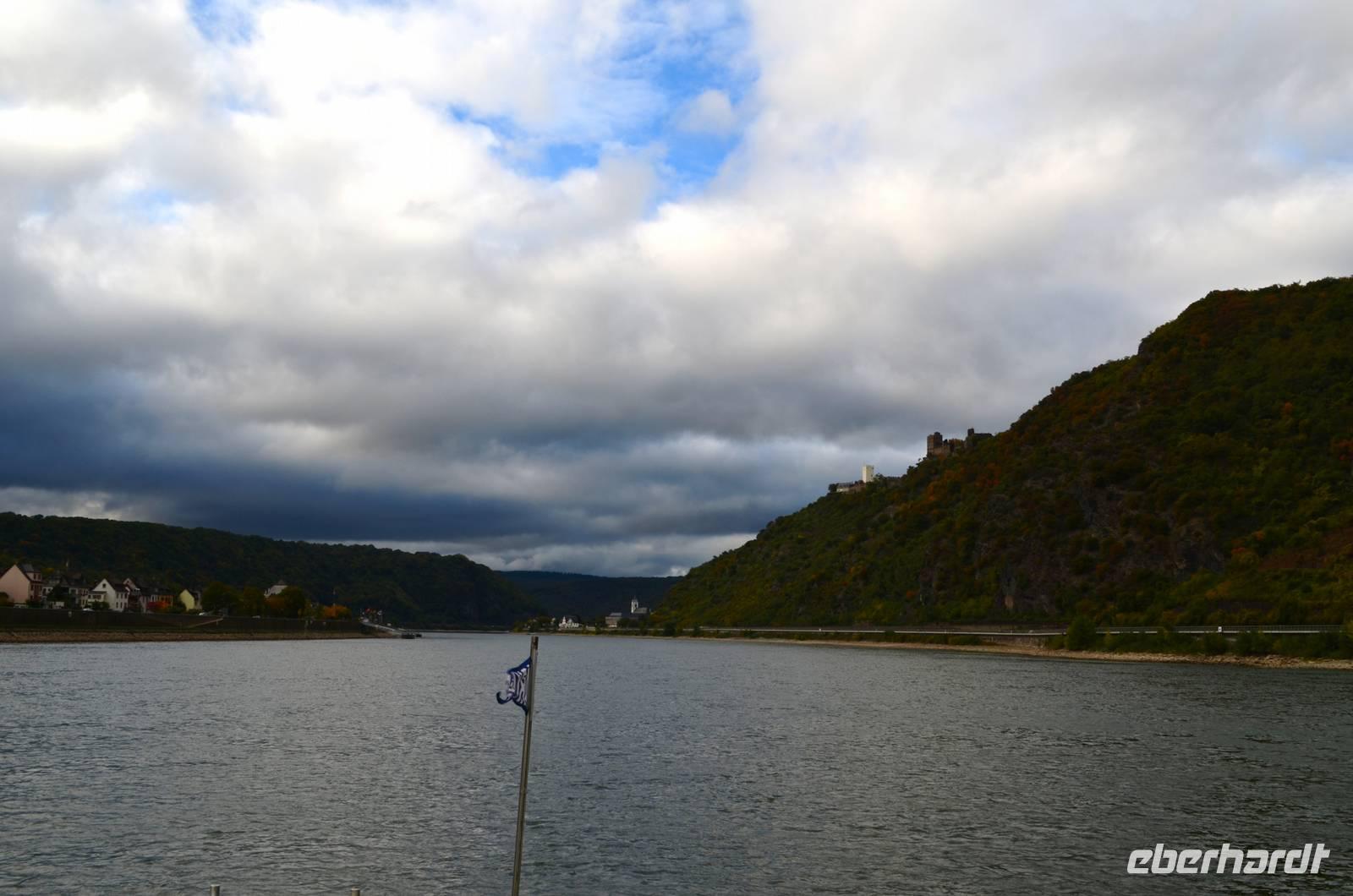Auf der Rückfahrt hinunter nach St. Goarshausen, wählten wir die Fahrt über den Ort Kaub. So konnten wir die berühmte Pfalz im Rhein sehen aber auch den Loreleyfelsen nochmals aus der Talsicht bewundern.