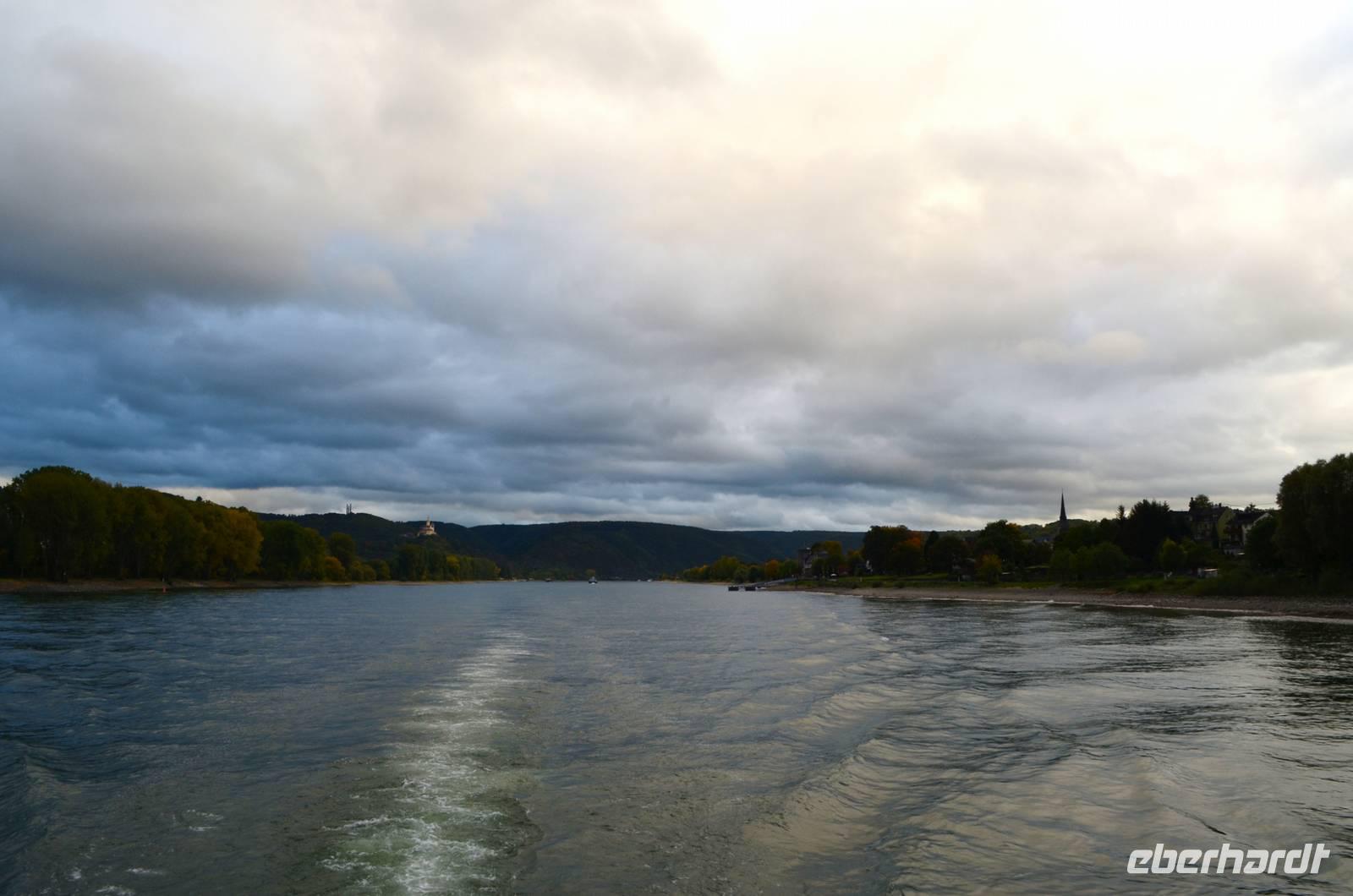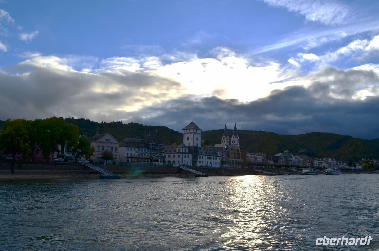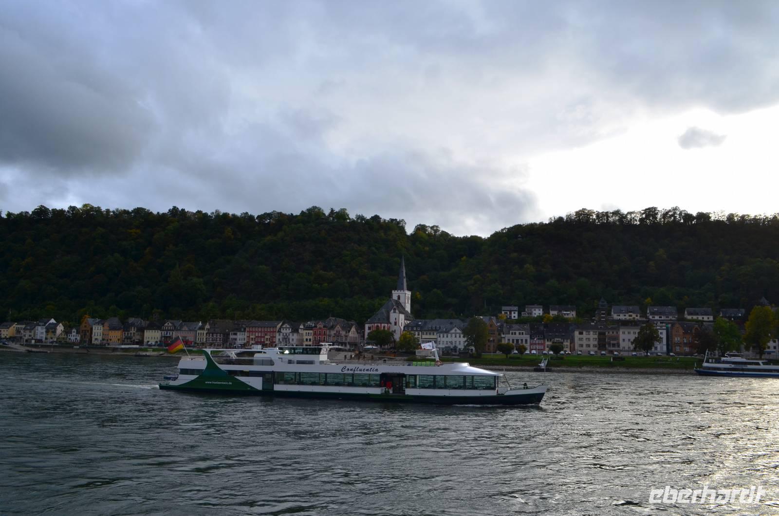 Vom Schiffsanleger in St. Goarshausen startete unsere Schifffahrt in der Abendsonne zurück nach Koblenz. Dabei zeigten sich uns der Fluss, seine Talhänge mit den Weinbergen und Burgen in besonders schönem Licht.