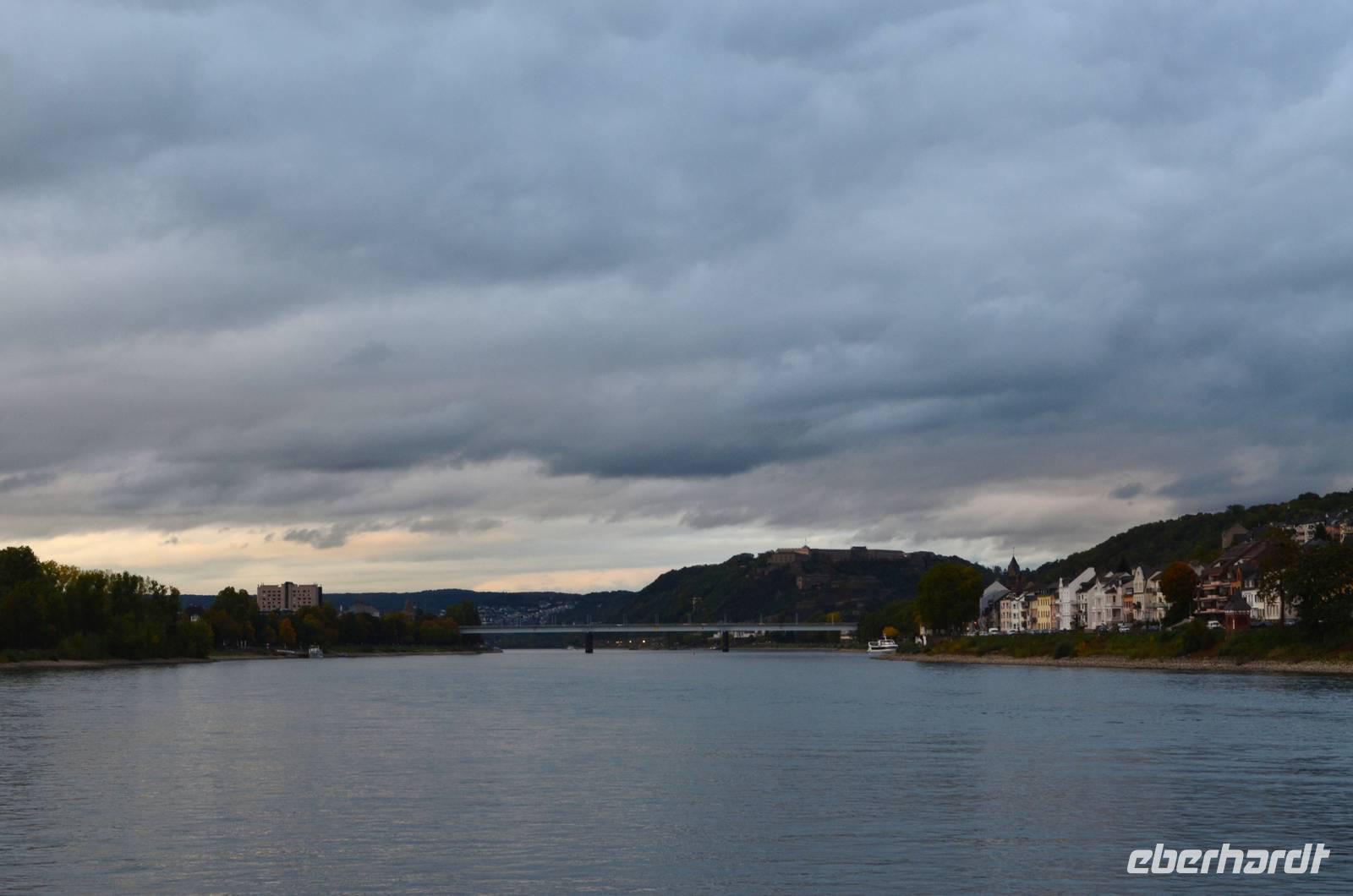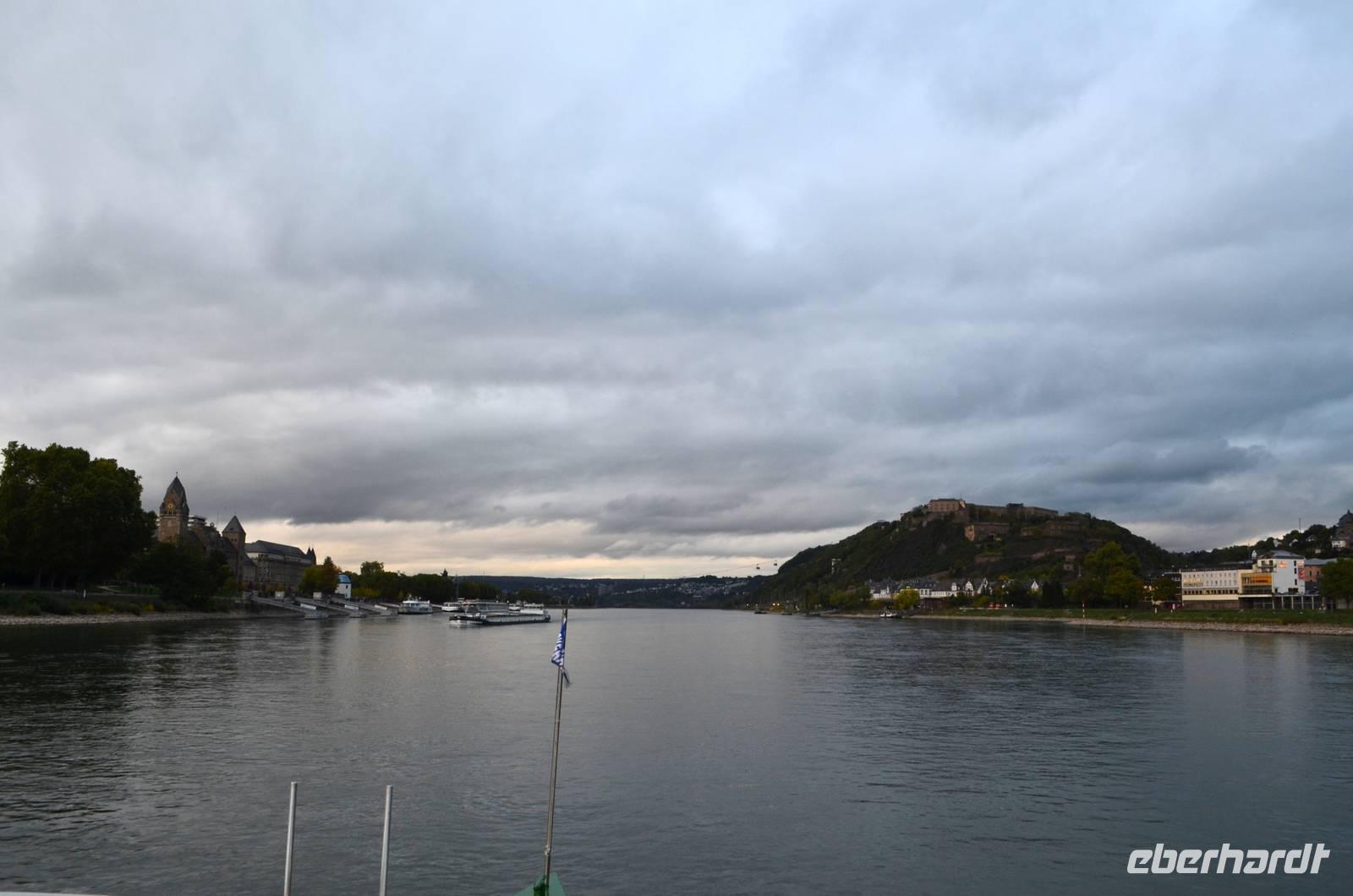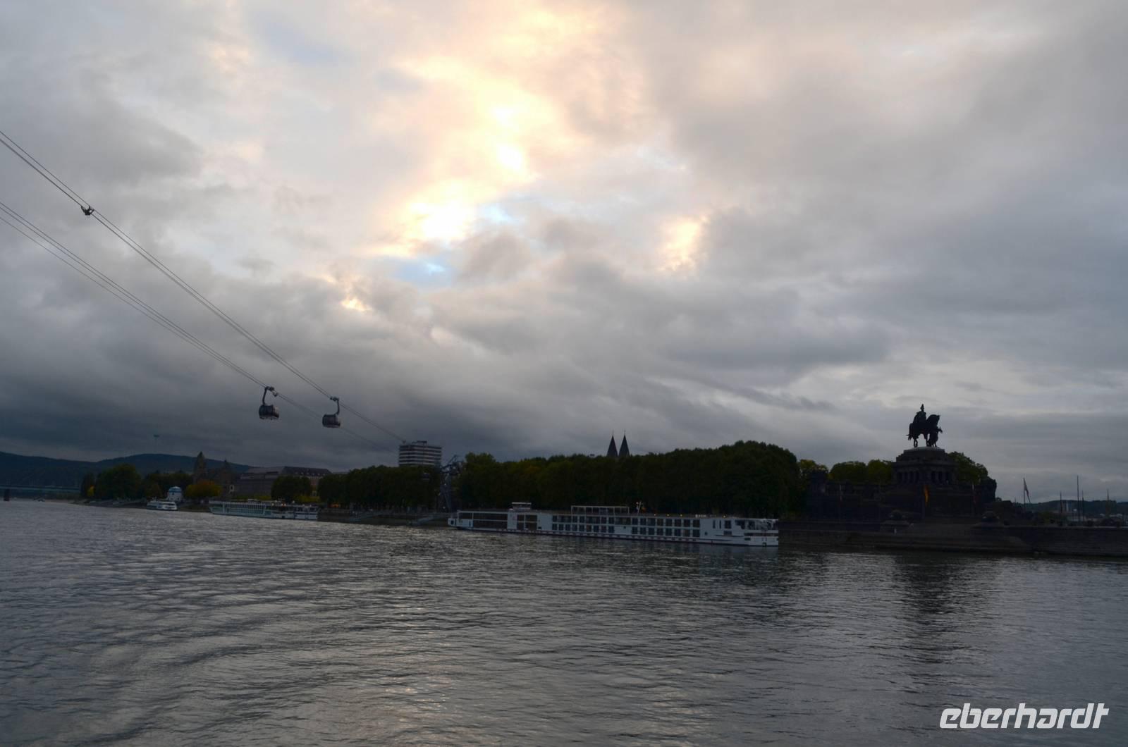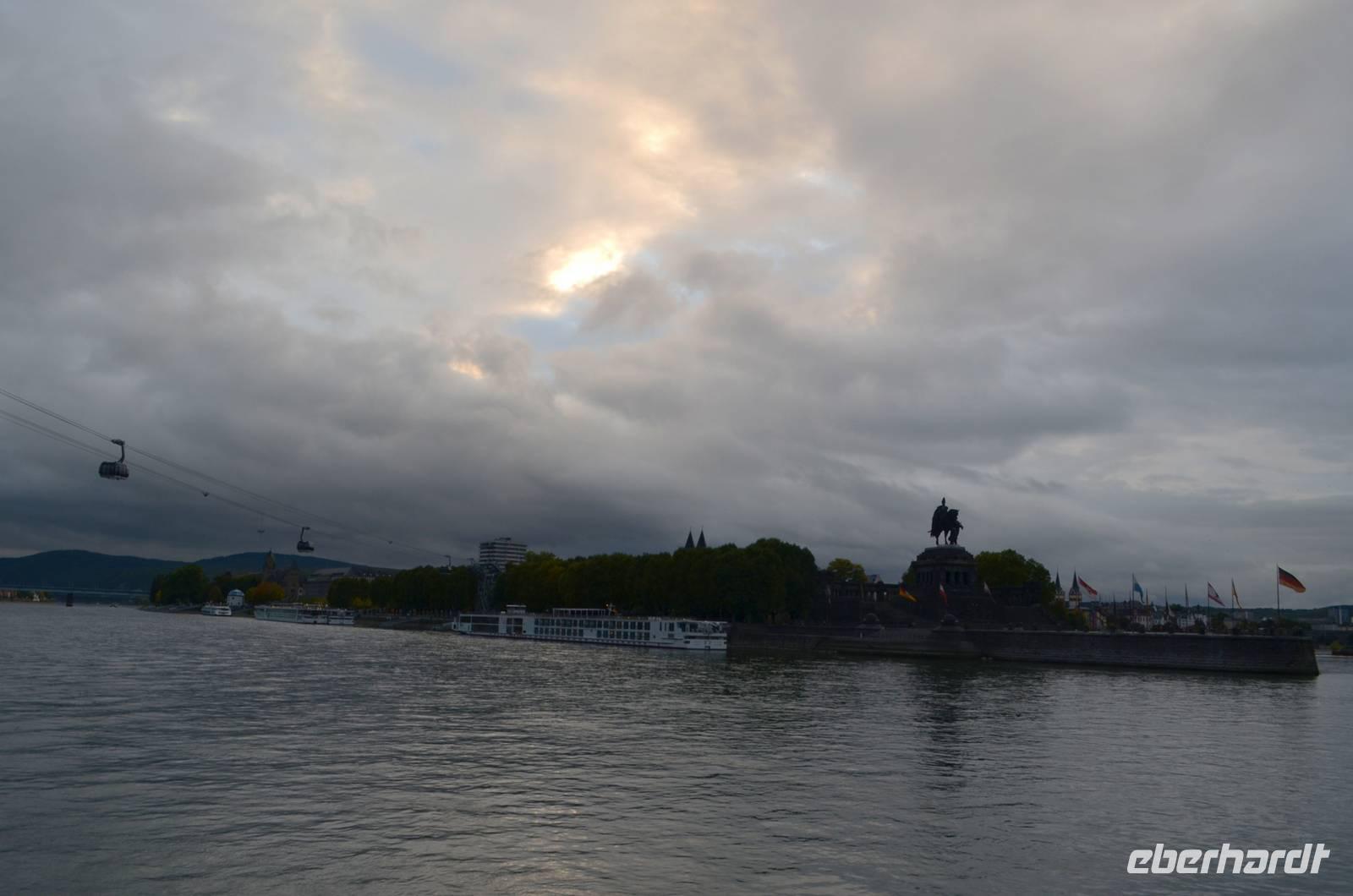 Wir hatten Glück, an vielen Orten in Deutschland regnete es, aber hier war das Wetter wieder schön. Wir fuhren heute zuerst nach Koblenz, in die Stadt mit dem Deutschen Eck, der Mündung der Mosel in den Rhein.