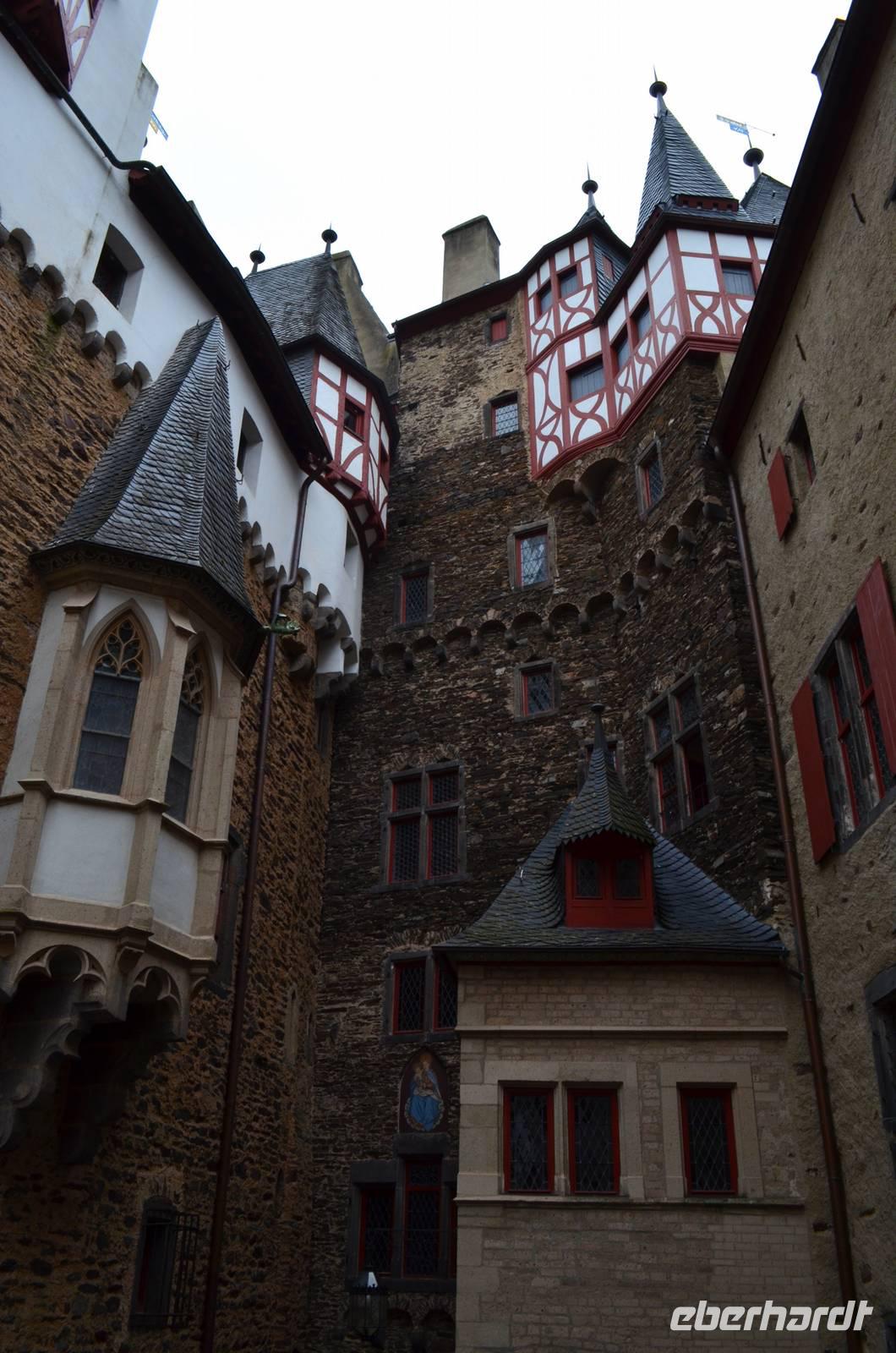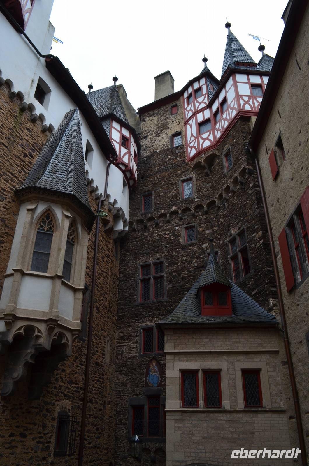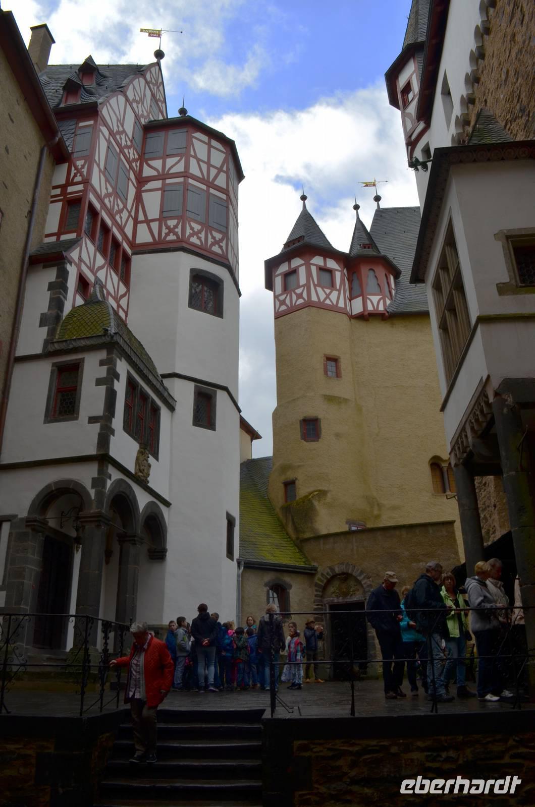 Nach den ersten Fotos von der Burganlage und dem Eintritt in die Burg Eltz entstand im Burghof unser Gruppenfoto.