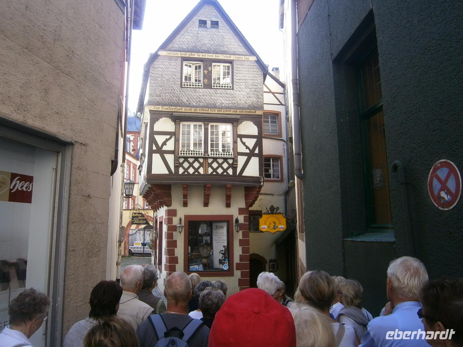 So konnten wir frisch gestärkt, unsere jeweiligen Tagesziele in Angriff nehmen:Wir besuchten geschichtsträchtige Städte, wie Trier und Koblenz. Dort hatten wir sehr gute Stadtführungen. Wir erfuhren sehr viel über die Geschichte, Architektur und Sehenswürdigkeiten der jeweiligen Städte, wie der „Porta Nigra", die Konstantin-Basilika, die Kaiserthermen, die Römerbrücke und dem Dom (Trier) und das „Deutsche Eck" am Zusammenfluß von Rhein und Mosel, dem ehemaligen Deutschordensschloß, der Liebfrauenkirche oder dem Rathaus und dem „Schängelbrunnen" (Koblenz) sowie der Feste Ehrenbreitstein am rechten Ufer des Rheins, die 118 m hoch über den Ort thront.