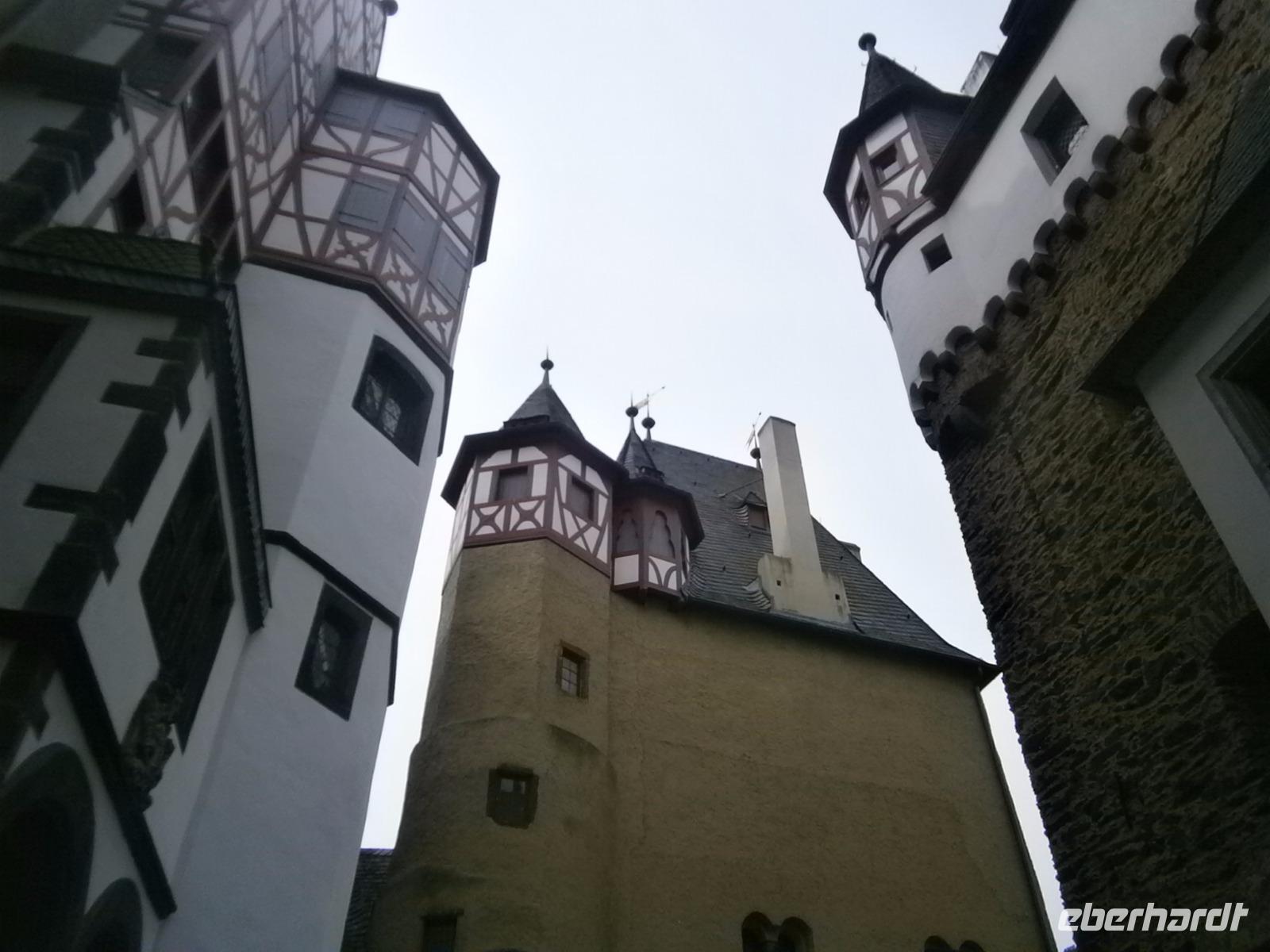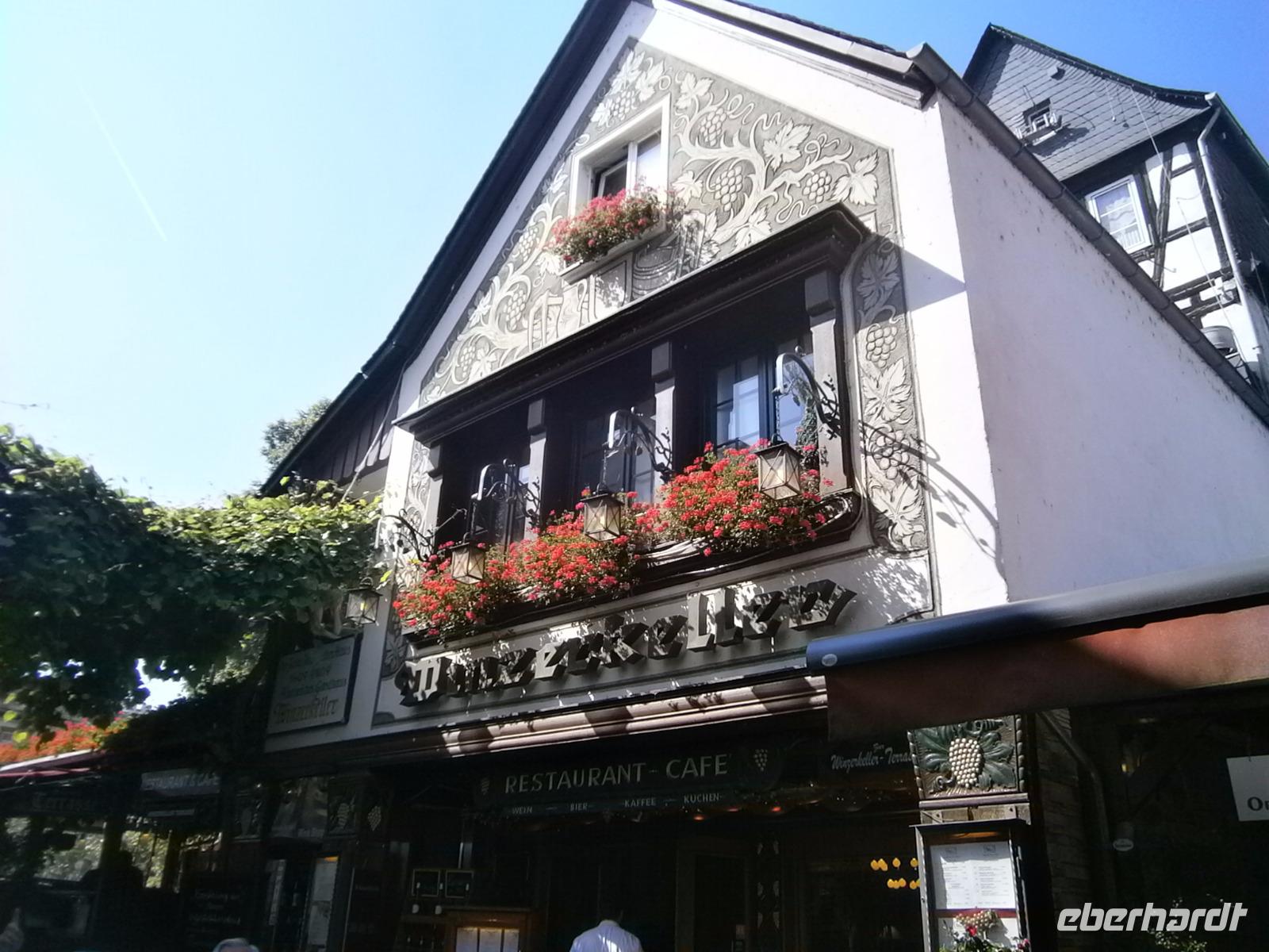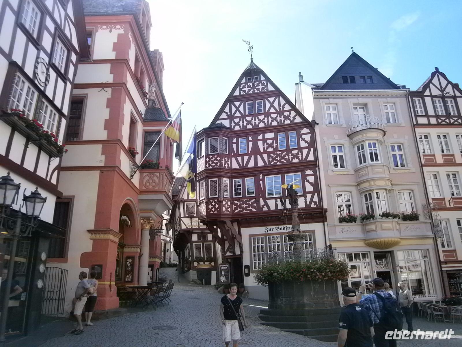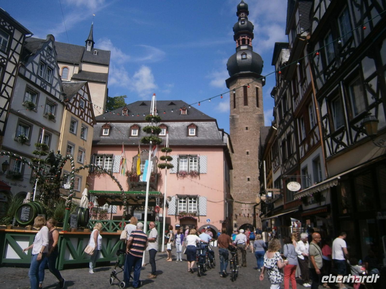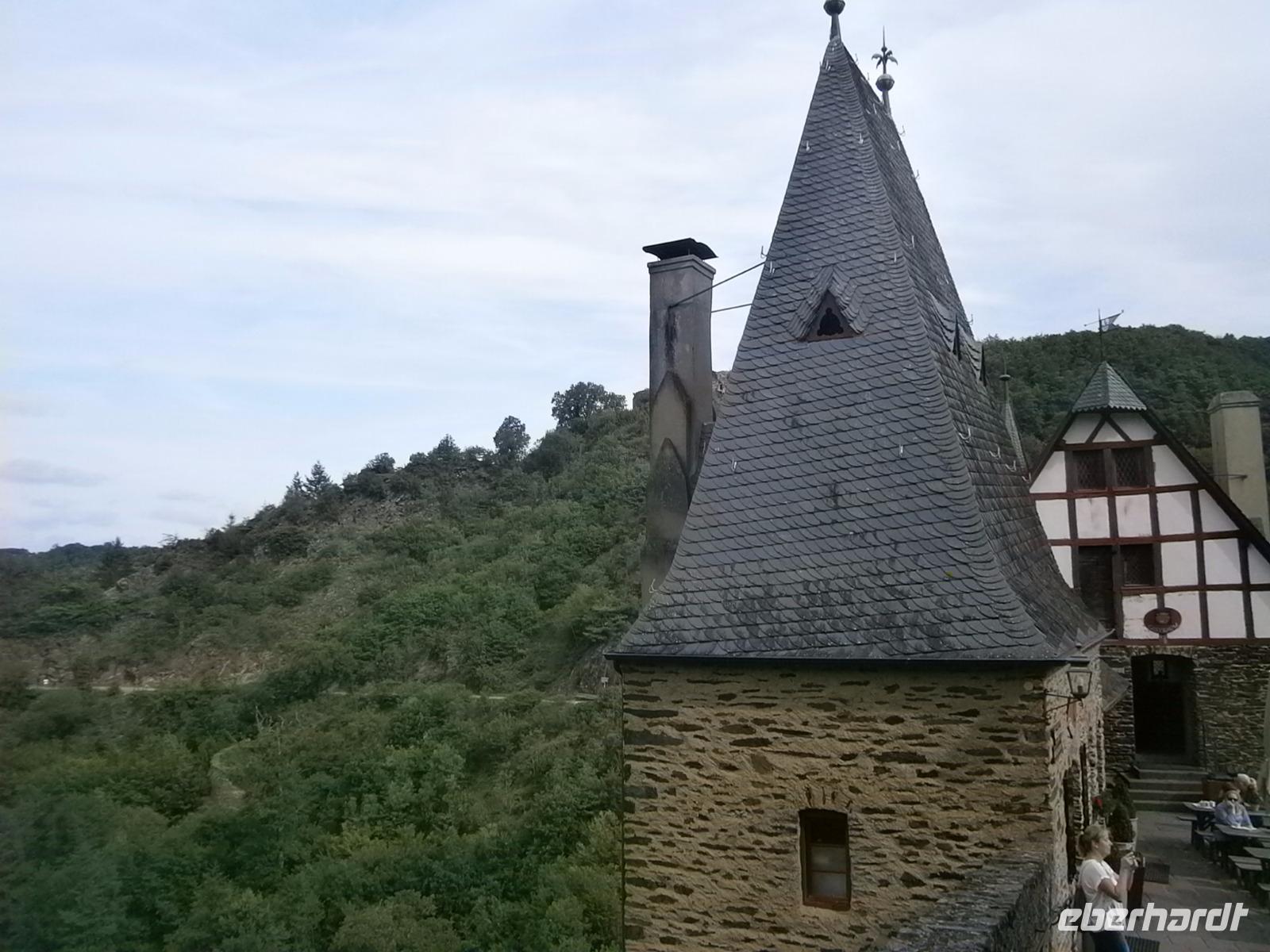 An einem anderen Tag besuchten wir das malerische Beilstein. Dieser Ort, gelegen in einem engen Talkessel mit steilen Rebhängen, wurde schon sehr oft als Kulisse für Filmproduktionen genutzt. Auch ist es eine Gemeinde mit einer ungebrochenen jüdischen Kultur. Davon zeugen eine alte Judenschule, eine mittelalterische Synagoge und ein jüdischer Friedhof. Eine Klostertreppe führt hinauf zur Klosterkirche der Karmeliter, die im Innern eine „Schwarze Madonna" und eine Königorgel besitzt. Beilstein wird noch überragt von der Ruine der Burg Metternich, zu der ein fünfeckiger Bergfried gehört.
