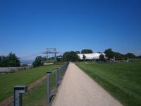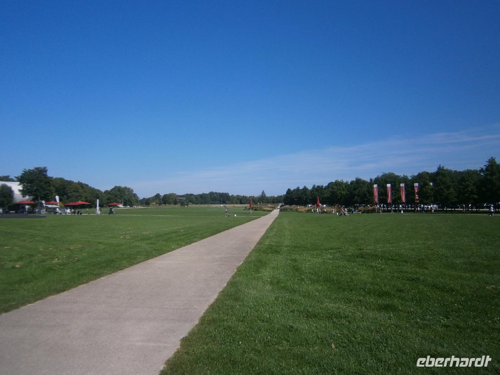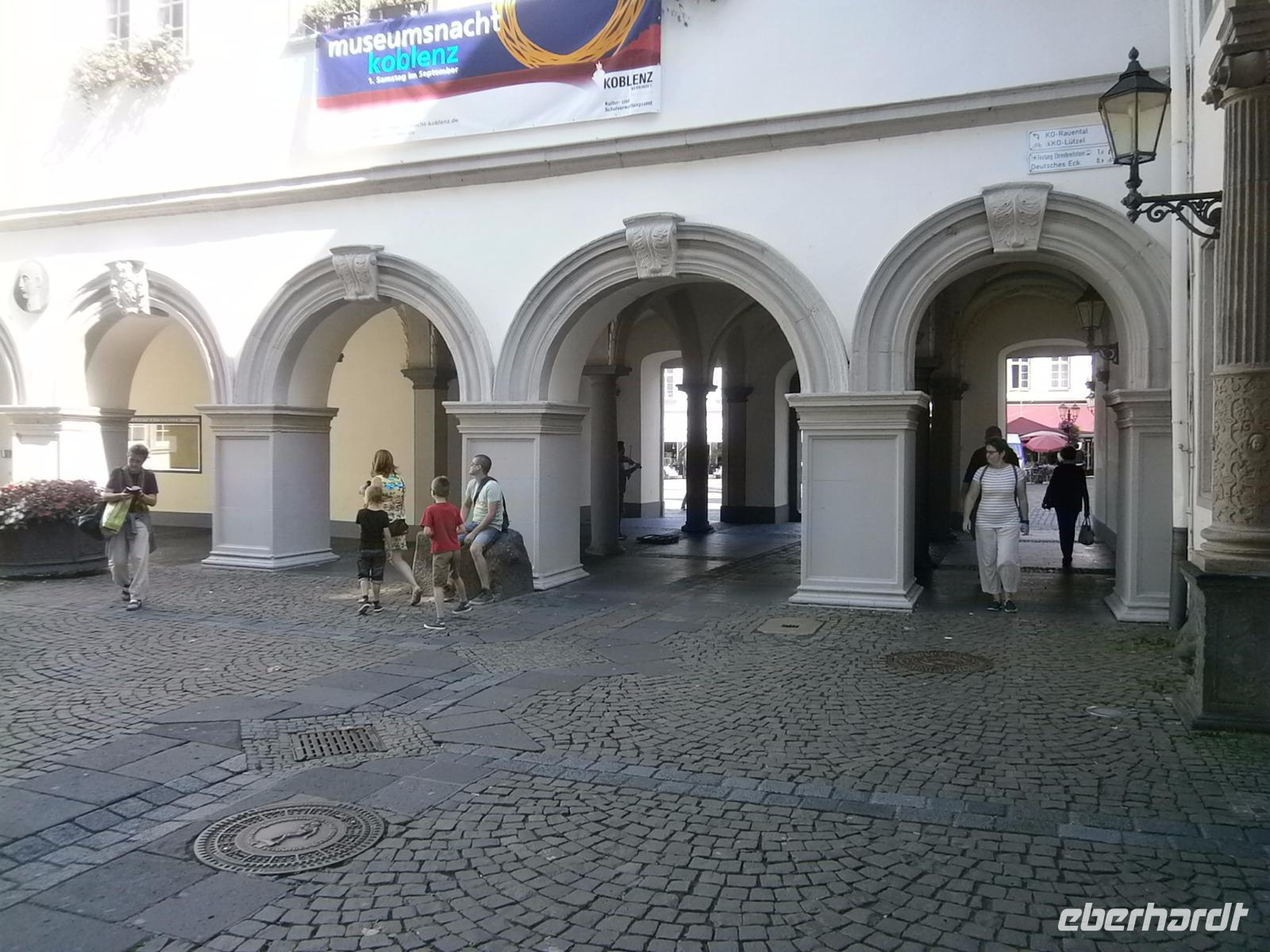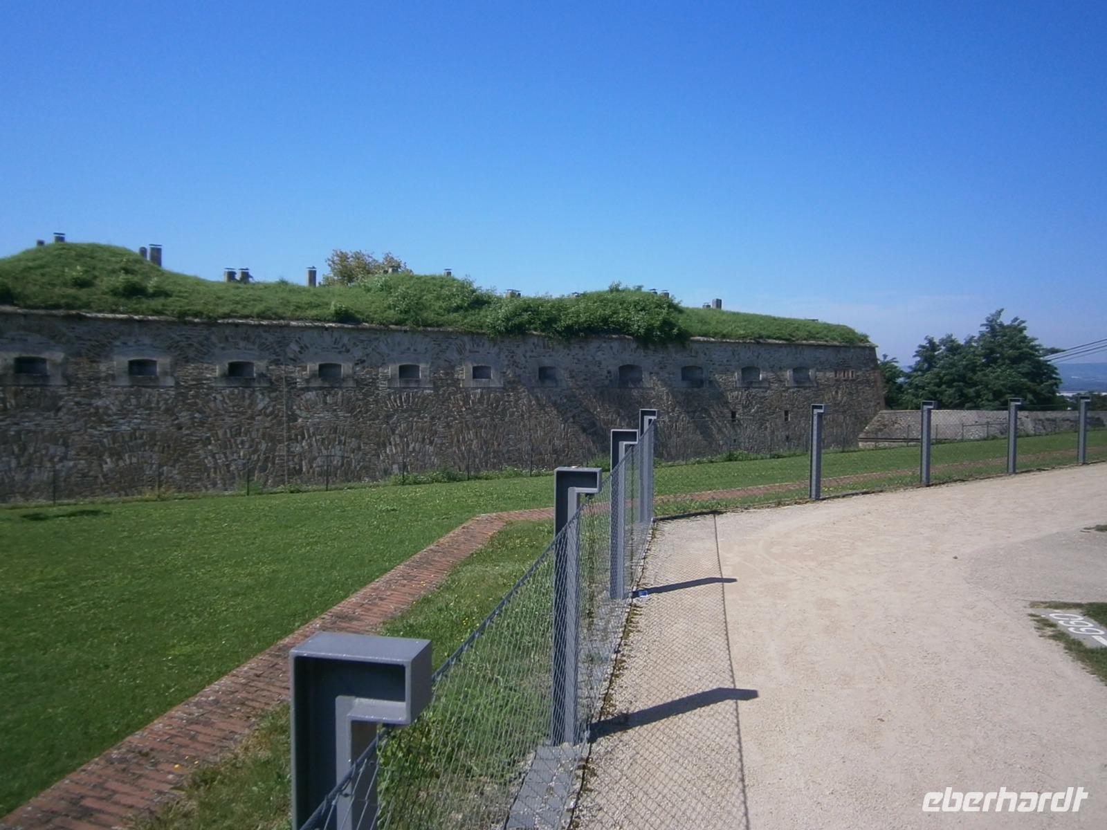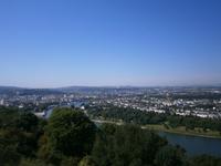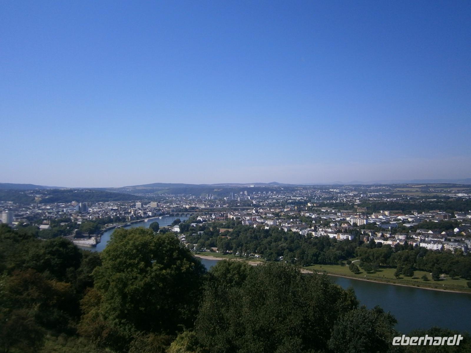Mit der zur „Buga" eingeweihten Kabinenseilbahn schwebten wir über dem Rhein zu dieser Sehenswürdigkeit. Oben erwartet den Besucher ein großes Hochplateau, welches früher ein Truppenübungsplatz gewesen war. Anläßlich der „Buga" wurde er umgestaltet und mit Spazierwegen und Aussichtspunkt versehen. Auf dieser Ebene befindet sich auch der Haupteingang in die Festung, die 1817 von Preußen zu einer wehrhaften Feste ausgebaut wurde.