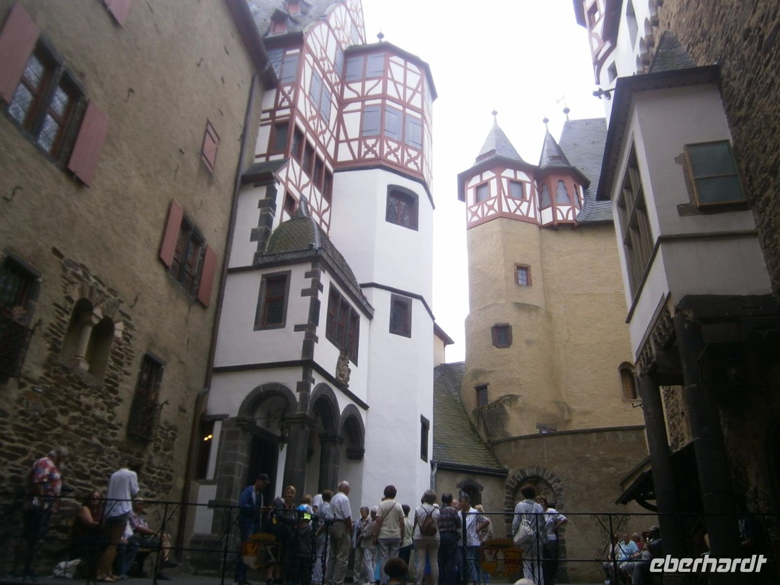 Während unserer Fahrten gab es noch weitere Aktivitäten: So besuchten wir in Kirschweiler, einem Ort im Hunsrück, eine Edelsteinschleiferei, eine Weinprobe in Alken an der Mosel und die Burg Eltz, in einem Seitental der Mosel, gelegen. Zur Burg gelangt man über zwei Wege: ein Weg führt über 1,3 km bergab zum Eingang, der andere ca. 800 m etwas steiler nach unten. In einer etwa 40 Minuten dauernden kurzweiligen und sehr guten Führung erfuhren wir alles zur Geschichte der Burg und den zugänglichen Räumen, die fast alle noch im Originalzustand vorhanden sind. Abgerundet wurde der Besuch der Burg Eltz von der dort vorhandenen Schatzkammer. Diese zeigt viele Gegenstände, die aus Silber und Gold im Mittelalter hergestellt wurden.