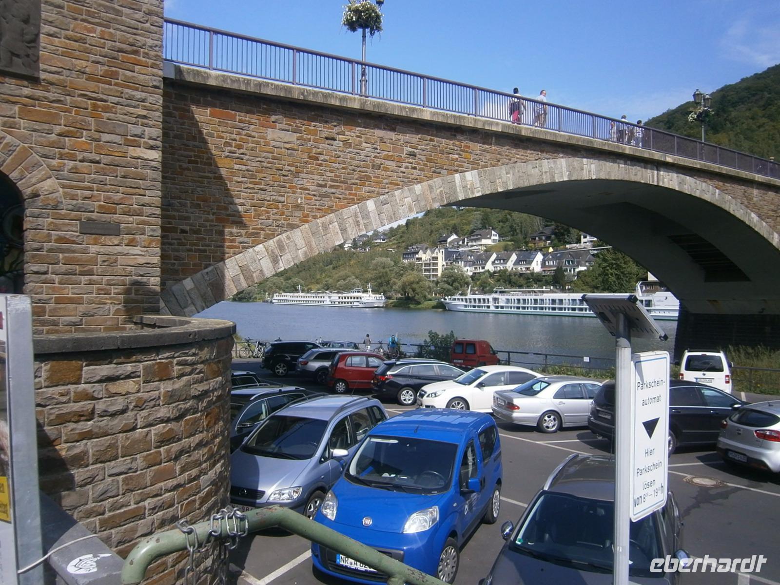 Während unserer Reise über- und unterquerten wir die Talbrücke über die Mosel bei dem Ort Winningen. Es ist ein Meisterstück der Ingenieurskunst. Erbaut in den Jahren 1969 bis 1972 für 40 Mio. DM. Die Länge beträgt 935 m, die Breite 30,5 m und die Höhe136 m. Darüber verläuft die BAB 61. Eine ähnliche gewaltige Brücke ist kurz vor Bernkastel-Kues in Bau.