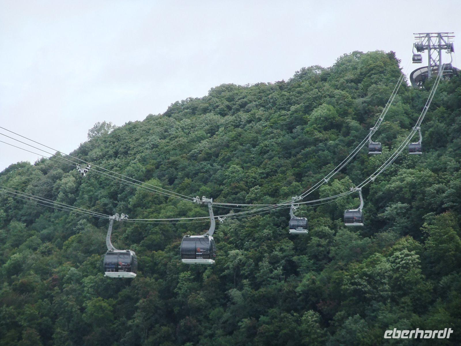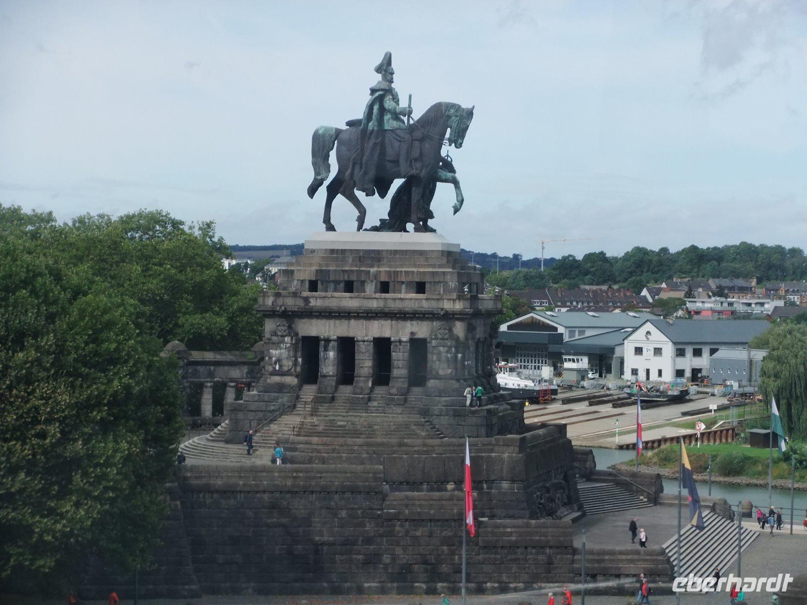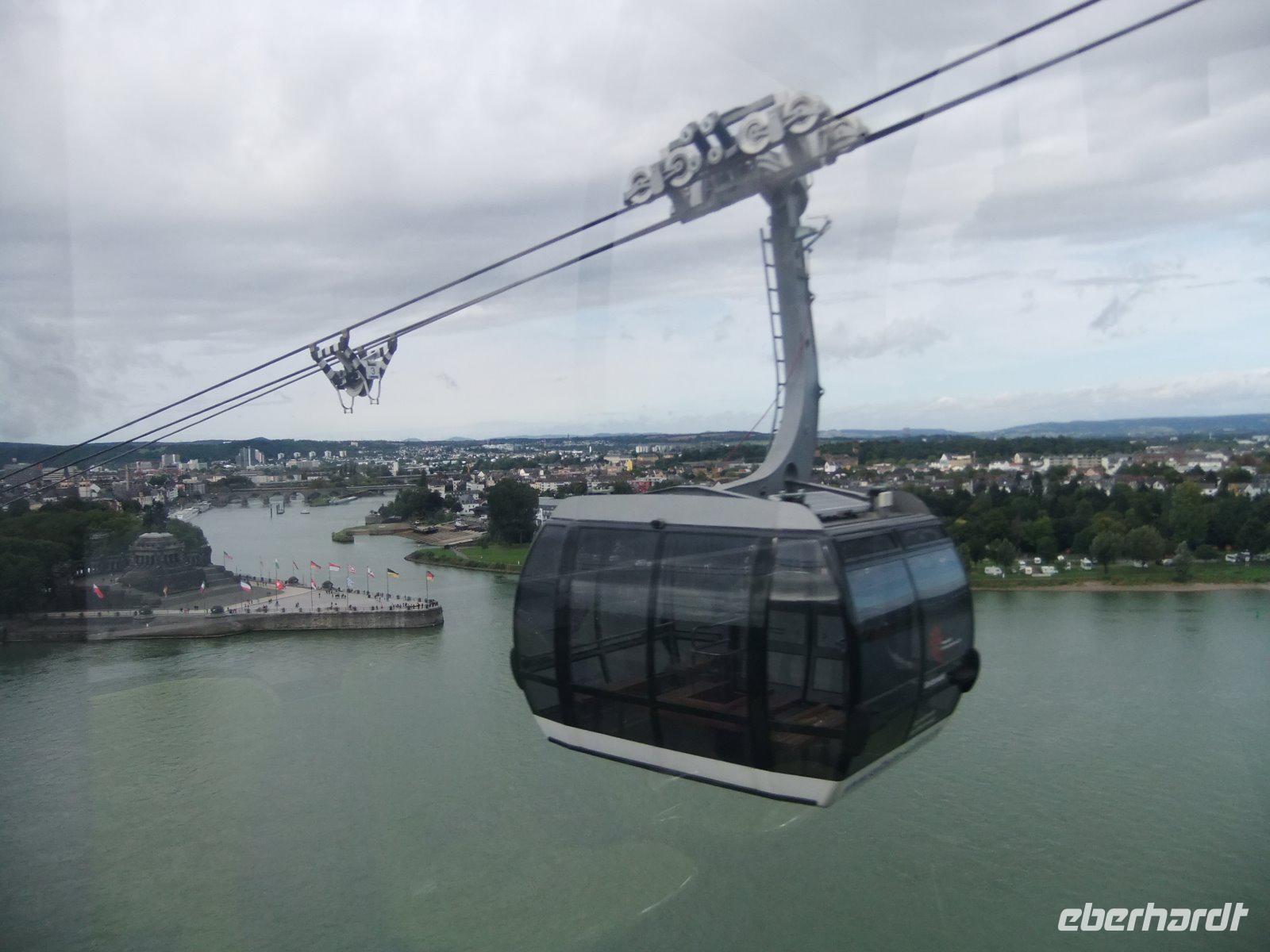 Gestern waren wir an der Mosel, heute geht es an den Rhein. Unser erstes Ziel ist Koblenz. Am Parkplatz erwarten uns schon die Stadtführer. Sie zeigen uns die bekanntesten Sehenswürdigkeiten wie die Liebfrauenkirche, die Basilika St. Kastor, das Rathaus, die Historiensäule und das alte Kauf- und Danzhaus. Wir lernen aber auch viele Koblenzer Originale. So wird mancher Reisegast sogar vom „Spucker" nassgemacht. Natürlich darf das Wahrzeichen von Koblenz, das Deutsche Eck mit dem Reiterstandbild Kaiser Wilhelm I., nicht fehlen. Hier endet dann auch die Stadtführung. Gemeinsam fahren wir nun vom Rheinufer mit der Seilbahn, die anlässlich der BUGA 2011 gebaut wurde, über den Fluss zur Festung Ehrenbreitstein hinauf. Hier genießen wir den Blick auf Koblenz und den Zusammenfluss von Rhein und Mosel. Dann hat jeder noch etwas Zeit für einen kleinen Bummel. Bevor es weiter geht, stoßen wir mit Sekt auf den Geburtstag von Frau Meyer an.