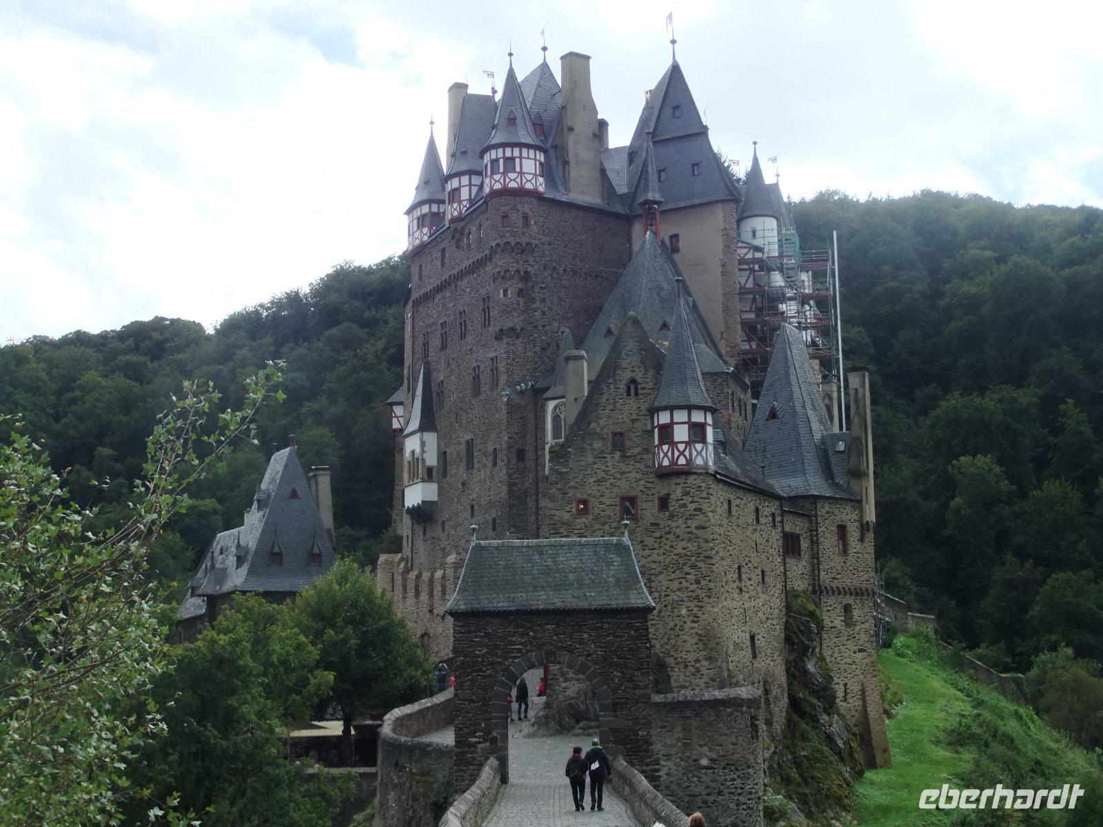 Gut gestärkt fahren wir weiter entlang der Mosel, biegen dann aber in die Eifel ab. Die über 850 Jahre alte Burg Eltz steht hier auf einem steilen Felskopf und ist seit über 30 Generationen Stammsitz der Grafen von und zu Eltz. Während einer interessanten Führung besichtigen wir Wohn- und Schlafräumen, die Waffenhalle, den Rittersaal, das Jagdzimmer und die historische Küche. Anschließend schauen wir uns noch die Schatzkammer an. Über Münstermaifeld geht es dann zurück zum Hotel. Ein letztes Mal treffen wir uns zum Abendessen, dann werden die Koffer gepackt.