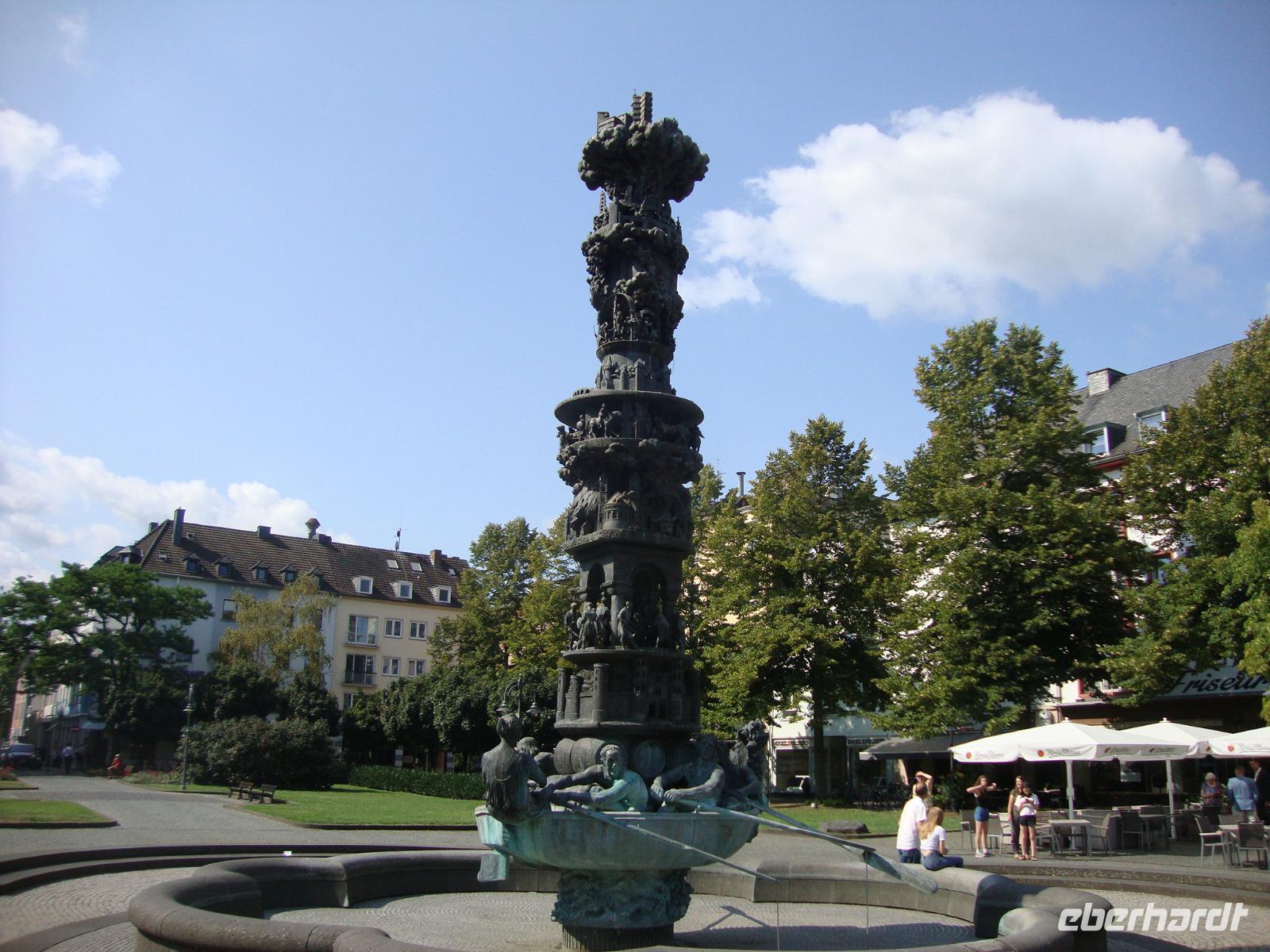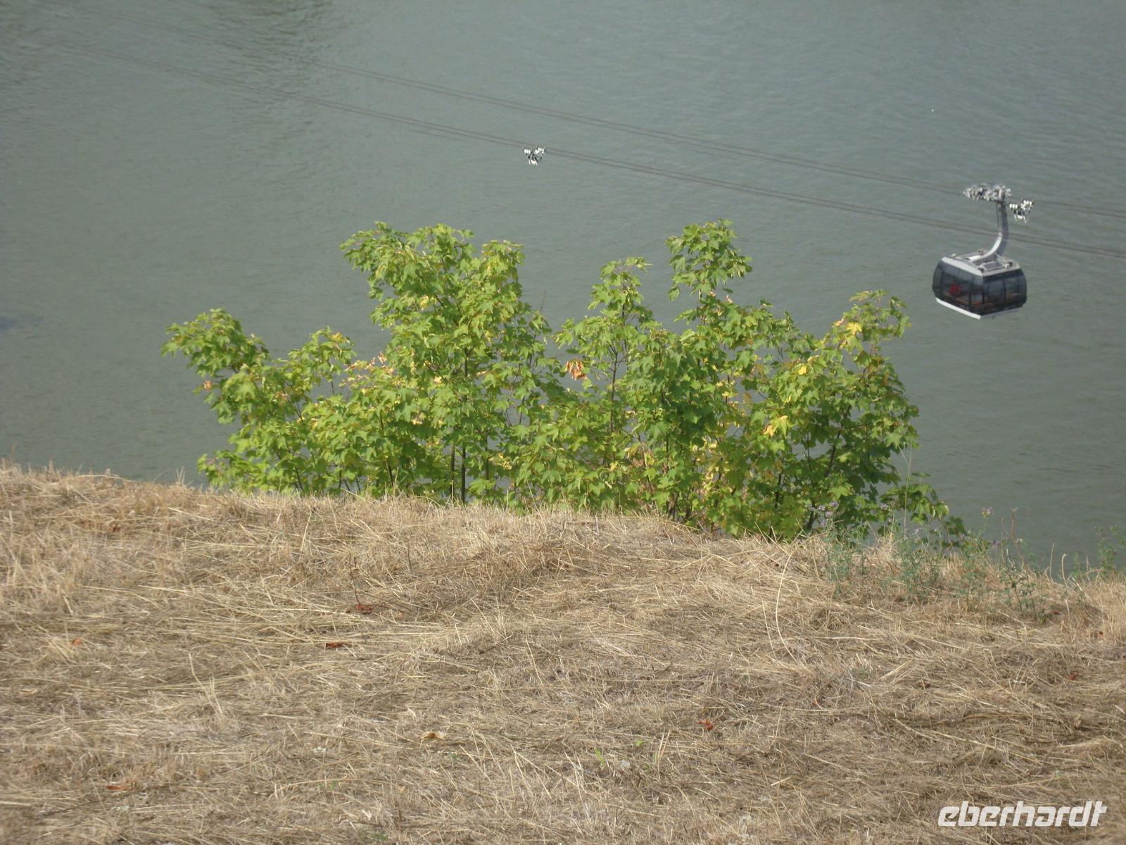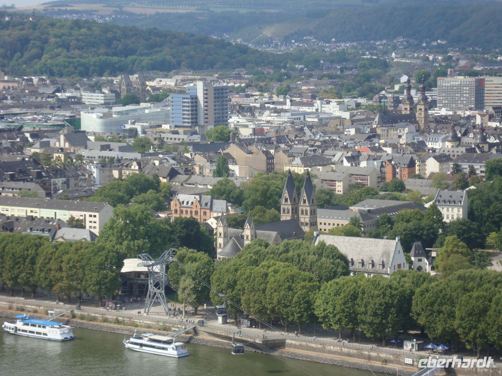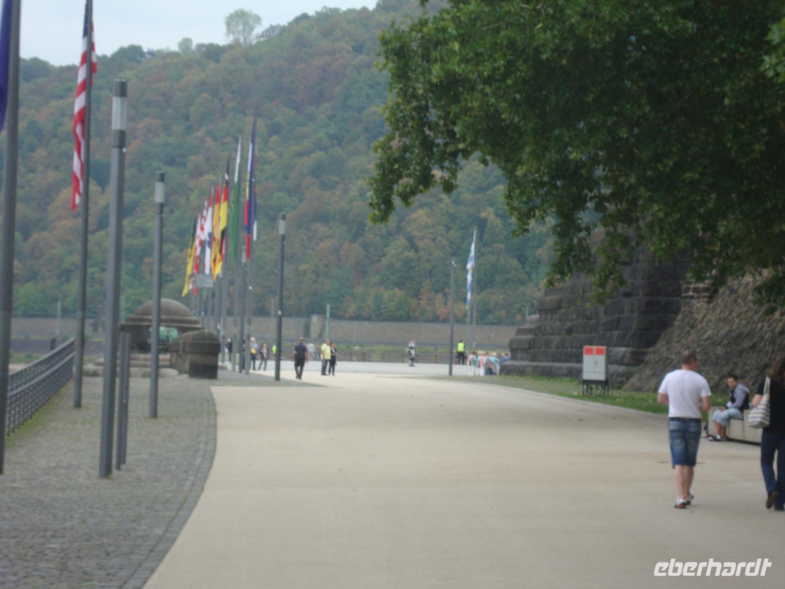 Auf Grund der vielen Baustellen und Umleitungen erreichten wir das Peter-Altmeier-Ufer eine viertel Sunde später als vorgesehen. Unser Chauffeur, Dirk Schönherr, steurte mit Geschick und Übersicht unseren Bus bis dorthin. Herr Graeff, unser Gästeführer erwartete uns bereits. Mit ihm waren wir unterwegs, zuerst zum Kaiser-Wilhelm-Denkmal, dem monumentale Blickfang. Kaiser Wilhelm I. blickt vom hohen Sockel über das Wasser. Das Denkmal wurde 1993 durch eine Rekonstruktion wieder aufgestellt. Das deutsche Eck ist die bekannteste Attraktion von Koblenz. In dem mittelalterlichen Deutschherrenhaus zeigt das Ludwig-Museum zeitgenössische, vorwiegend französische Kunst, Sinnbild ist der aufgestellte Daumen. Anlässlich der Bundesgartenschau 2011 wurde die Seilbahn zur Festung Ehrenbreitstein in betrib genommen und bietet einen spektakulären Blick auf die Stadt. Wir "schwebten" mit ihr nach oben. Die sternförmige Bastion entstand 1817-32 als Rekonstruktion einer von Napoleon zerstörten Festung des 16.Jh. und ist nach Gibraltar die zweitgrößte in Europa.