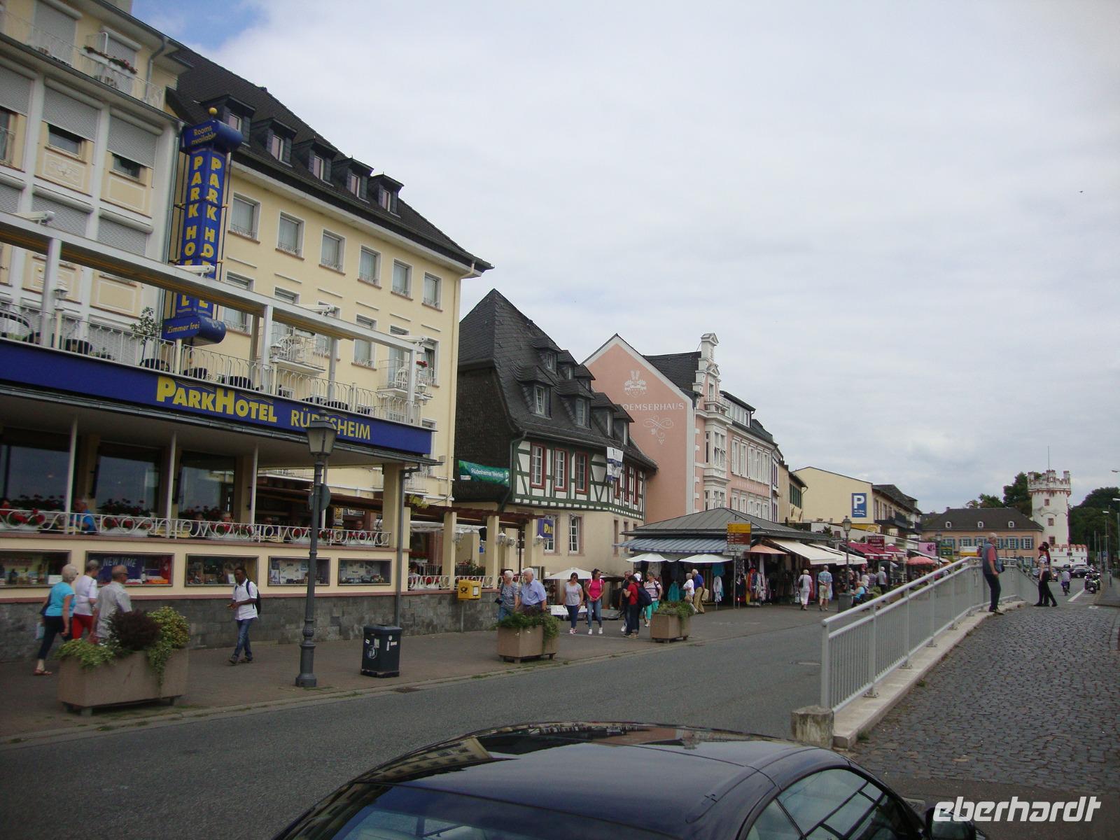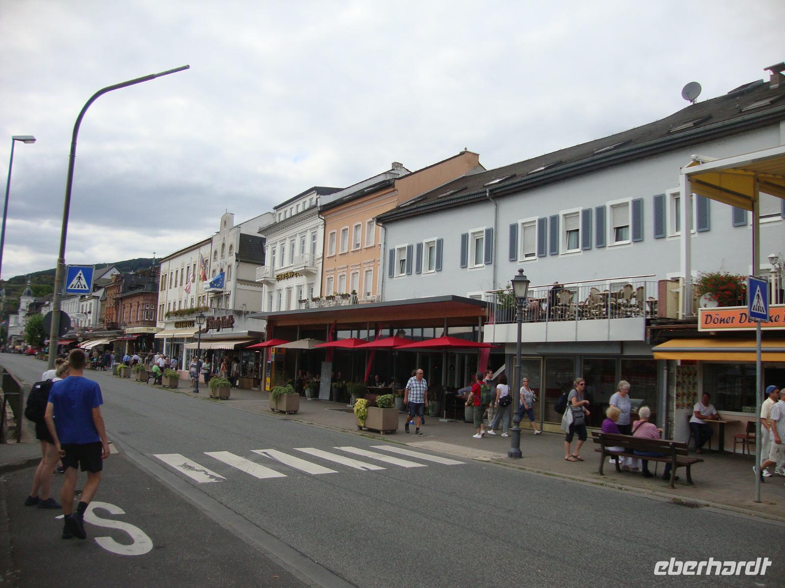 Anschließend fuhren wir die Rheinstrasse, vorbei an Lahnstein und St. Goarshausen, entlang bis nach Rüdesheim. Nach einem kurzen Besuch der Drosselgasse ging es zurück mit dem Schiff der Fa. Hölzenbein bis Koblenz. Das mittlere Rheintal mit seinen zahlreichen Burgen ist der schönste Abschnitt einer Fahrt auf dem Rhein. Wir genossen die herrliche Aussicht, u.a. die Loreley. Am Abend kamen wir in Koblenz an und waren heute etwas später zum Abendessen.