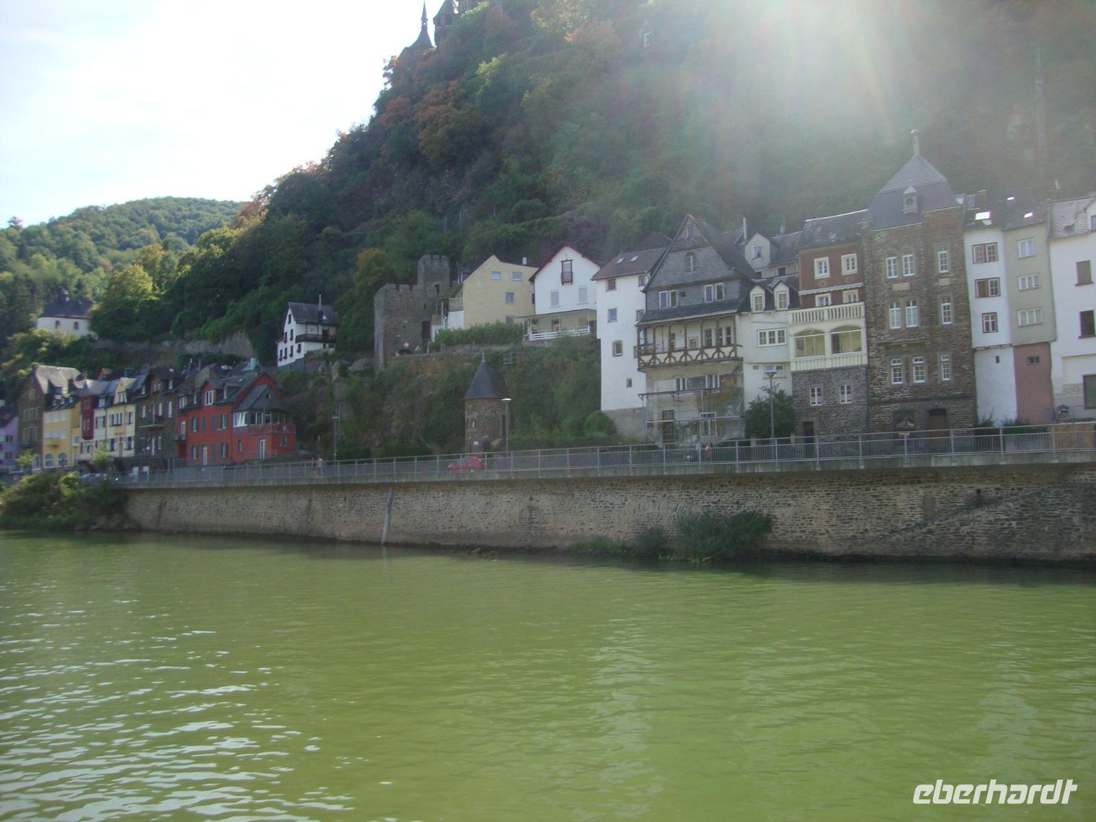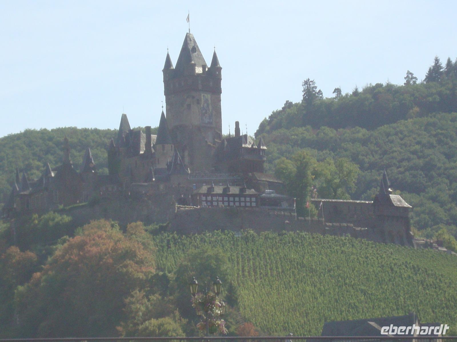 Die Burg aus dem Mittelalter sitzt märchenhaft auf einem Felsen im Wald. Mehrer Gebäude mit Türmen und Erkern gruppieren sich um den Burghof. Architektur und Einrichtung spiegeln 800 Jahre Kulturgeschichte wider. Höhepunkte unserer Burgführung sind die Rüst-und Schatzkammer, der ehrwürdige Rittersaal und die Küche aus dem 15.Jh. Wandmalereien mit figuralen Darstellungen beeindrucken im Rübenacher Obersaal und im Ankleidezimmer. Die Führung war sehr interessant und aufschlussreich, man kann sich das Leben im Mittelalter doch recht anschaulich vorstellen. Anschließend fahren wir nach Cochem. Besonders turbulent is es hier auf dem Marktplatz mit dem barocken Rathaus. Von dort verzweigen sich Altstadtgassen und - treppen bis auf den Klosterberg. Bei einer Schifffahrt auf der Mosel, die wir am Nachmittag unternehmen, sieht man die im neugotischen Stil wieder aufgebaute Reichsburg, hoch über der Stadt gelegen. Damit auch der vorletzte Tag unserer schönen Reise an die Mosel und den Rhein.