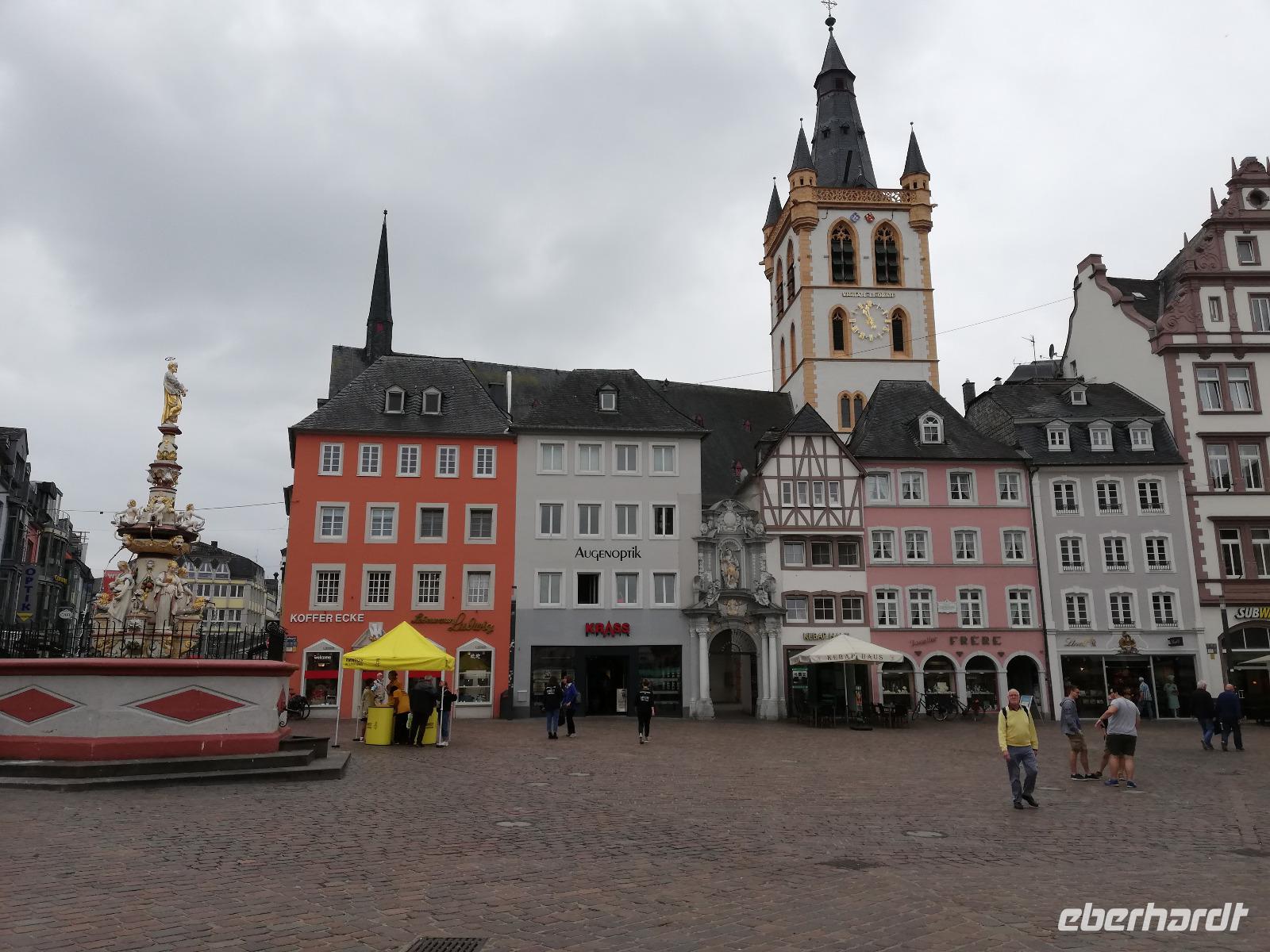 Der Stadtrundgange führte uns vorbei an dem im Mai eingeweihten Karl Marx Denkmal übers Porta Nigra, der Judenpforte, dem historischen Marktplatz (Kornmarkt) + dem Petrusbrunnen+ Marktkreuz und den vielen historischen Fachwerkbauten- dem Dom mit dem wunderschönen Kreuzgang - der Liebfrauenkirche, der Konstantinbasilika -ehemalige Thronsaal von Kaiser Konstantin und dem Kurpfälzischen Palais.