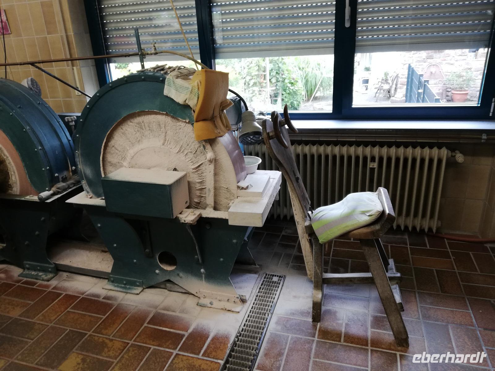 Vom Junior Dorian Hess wurden wir in die Geheimnisse der Edelsteinschleiferei eingeführt. Er zeigte uns die Arbeitsschritte zum Schleifen eines Dalmatinerjaspis. Jeder Gast erhielt am Ende der Veranstaltung einen Stein als Präsent.