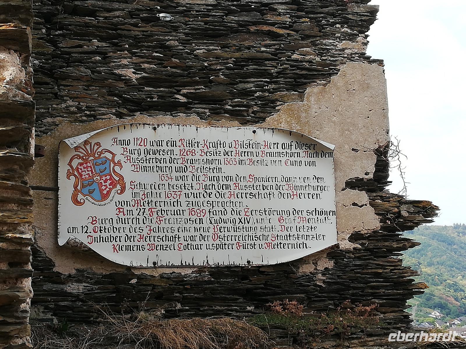 Beilstein, Dornröschen der Mosel genannt, ist ein Schmuckstück in einer Talkerbe, mit zahlreichen hübschen Fachwerkhäusern, der Klosterkirche St. Joseph und der Schwarzen Madonna sowie der Burgruine Metternich. Der Großteil der Gruppe wanderte mit unserer RBGL Steffi über die Burgruine ins Städtchen. Als Erfrischung gab es leckeres Rieslingeis.