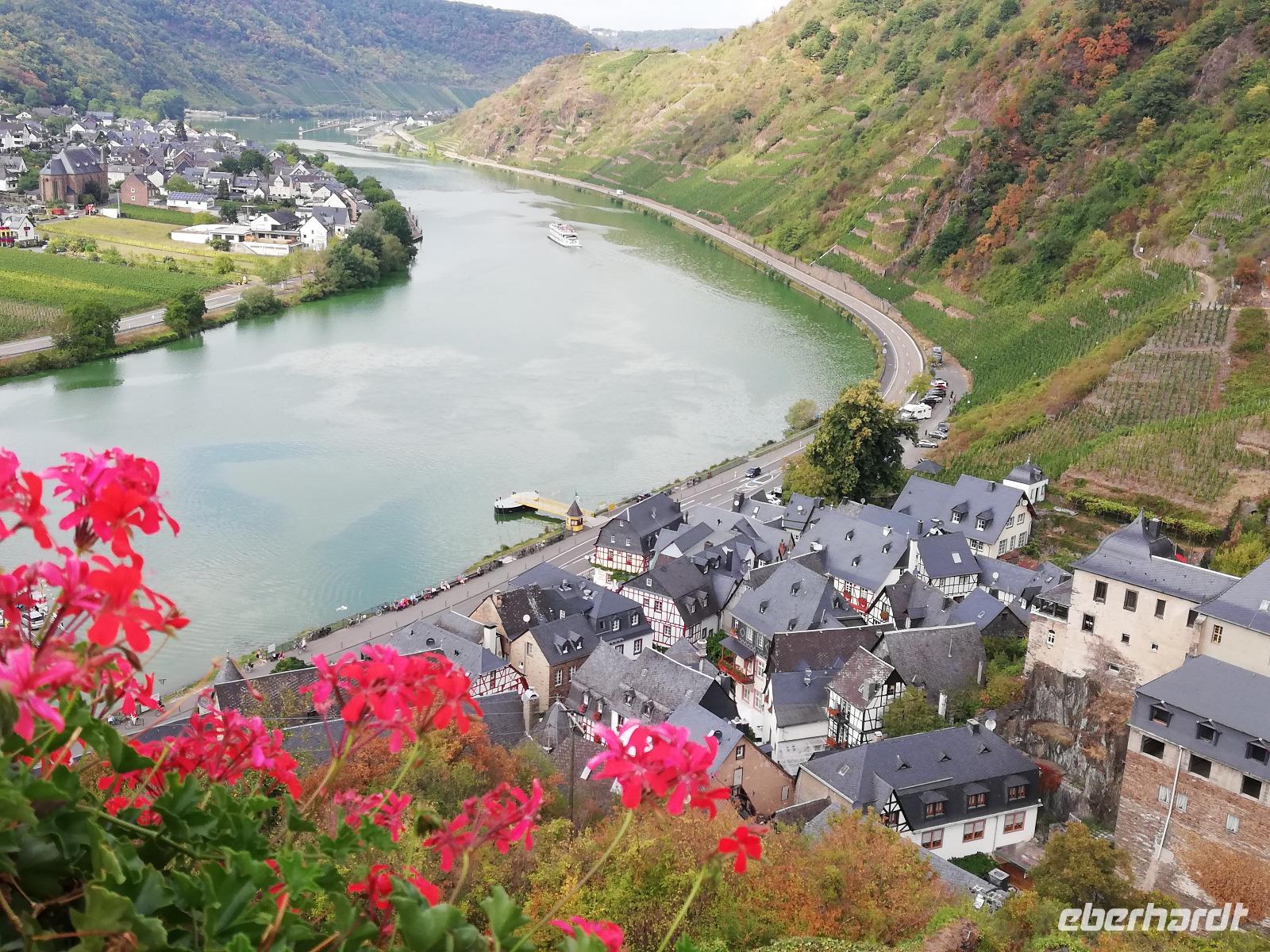 Entlang der zahlreichen Moselschleifen vorbei an Europas steilsten Weinhängen am 367 m hohen Calmont erreichten wir Beilstein.
