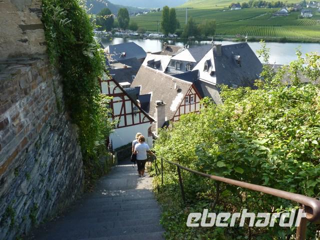 Entlang der zahlreichen Moselschleifen vorbei an Europas steilsten Weinhängen am 367 m hohen Calmont erreichten wir Beilstein.