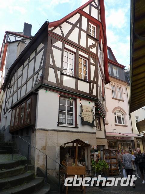Beilstein, Dornröschen der Mosel genannt, ist ein Schmuckstück in einer Talkerbe, mit zahlreichen hübschen Fachwerkhäusern, der Klosterkirche St. Joseph und der Schwarzen Madonna sowie der Burgruine Metternich.