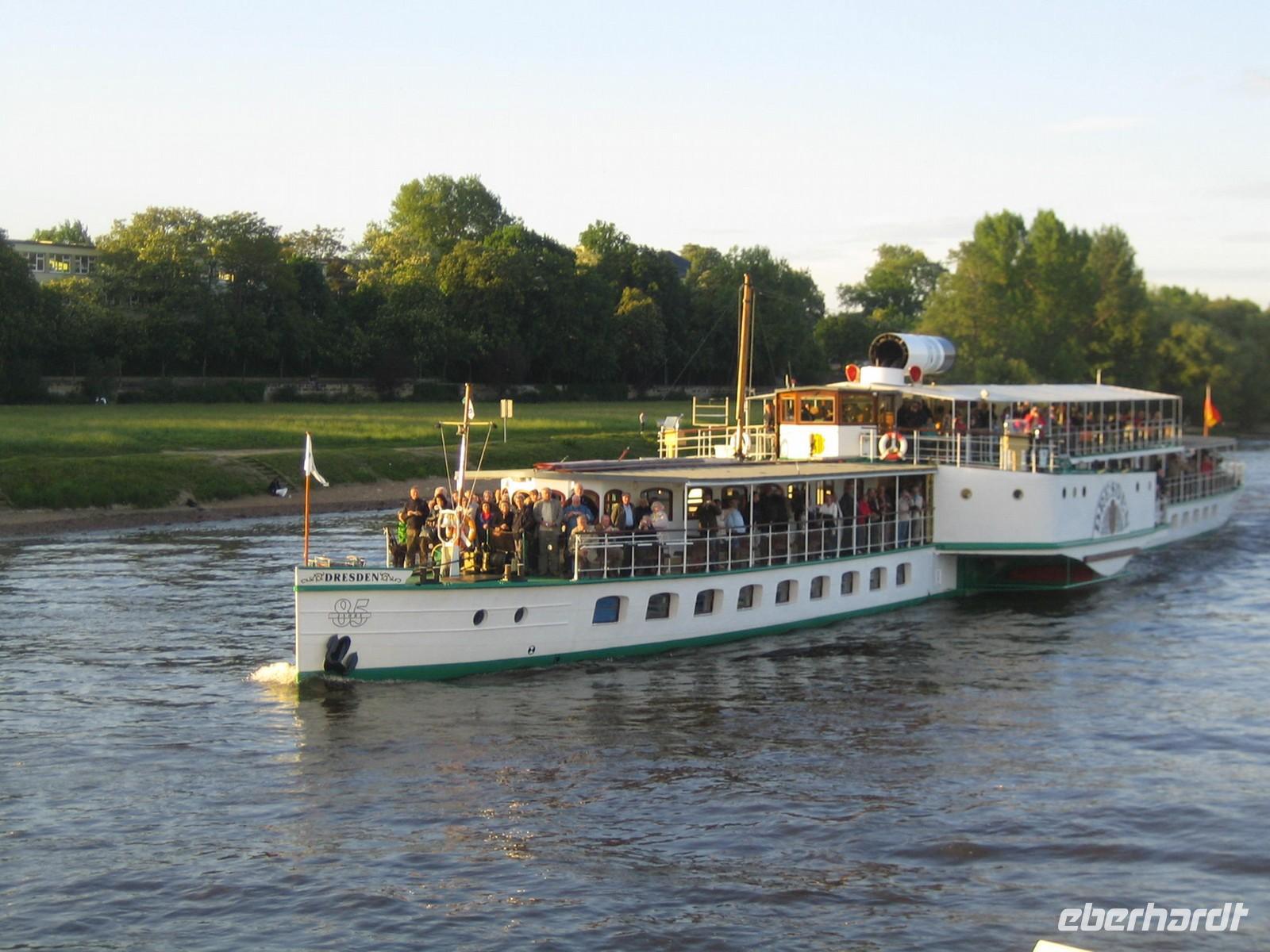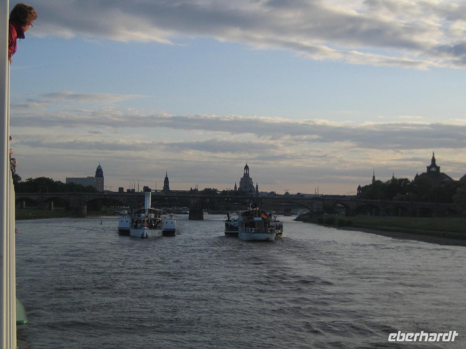Ein kleiner Spaziergang vom Theaterplatz bis zur Frauenkirche rundete die Stadtführung ab. Anschließend gab es die Möglichkeit noch nach Lust und Laune im Zentrum zu flanieren. Am Nachmittag fuhren wir in unser Hotel „ Leonardo“ nach Freital zum zeitigen Abendessen. Einer der Höhepunkte der Reise - die Dixielandfahrt auf der Elbe - erwartete uns am Abend.