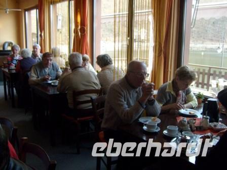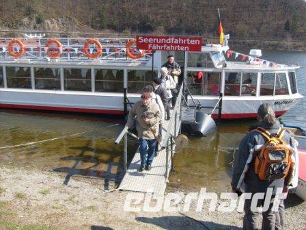 Nach einem leckeren und ausgiebigen Frühstück starteten wir nach Bad Arolsen. Schmucke Bürger- und Fachwerkhäuser, das barocke Residenzschloss, breite Alleen und der große Baumpark bilden eines der reizvollsten Stadtbilder Deutschlands. Liebevoll wird es auch das „Hessische Versailles“ genannt. Das Residenzschloss Bad Arolsen wurde 1713-1728 nach den Plänen von Fürst Friedrich Ulrich zu Waldeck im Barockstil erbaut. Es sollte die Ansprüche auf einen erblichen Fürstentitel unterstreichen und den Ruhm des Hauses Waldeck verkünden. Gleichzeitig, mit dem Bau des Schlosses ließ Fürst Waldeck „seine“ Barockstadt anlegen. Doch Bad Arolsen spielt in der Geschichte des Hauses von Oranien eine wichtige Rolle. Im Residenzschloss wurde 1858 Prinzessin Emma zu Waldeck und Pyrmont, die spätere Königin der Niederlande, geboren. Sie lebte hier bis zu ihrer Heirat mit dem niederländischen König Willem III. Durch diese Ehe und die Geburt der gemeinsamen Tochter Wilhelmina sicherte sie den Fortbestand des Hauses Oranien, eines der ältesten und bekanntesten Fürstengeschlechter Europas. Auch heute noch schätzen die königstreuen Holländer ihre Königin Emma, die Urgroßmutter der heutigen Regentin der Niederlande, Königin Beatrix. Die große Beliebtheit der „Königin Mutter“, wie Königin Emma liebevoll genannt wird, ist einer der Gründe für zahlreiche Besuche niederländischer Touristen in Bad Arolsen. Nach der Schlossbesichtigung und dem leckeren „Hasenbraten“ im Bus ging die Fahrt weiter zum Diemelsee. Der See liegt inmitten der faszinierenden Landschaft des gleichnamigen Naturparks. Hier ist es noch nicht überlaufen, hier trifft sich nicht die ganze Welt. Der Diemelsee ist ein Paradies für Wassersportler. Hier kann man segeln, surfen und Kanu fahren. Auch eine Rundfahrt mit Tretbooten, Elektrobooten oder Ruderbooten ist auf beiden Seiten des Sees möglich. Immerhin hat der Diemelsee eine Länge von 16 km, und eine Wassertiefe von 34 m. Unsere Reisegruppe geht in Heringhausen an Bord der „MS Muffert“. Bald sieht man die Diemeltalsperre, das größte Bauwerk der Neuzeit. Sie dient dem Hochwasserschutz und der Energiegewinnung. In Helminghausen verlassen wir das Schiff, das Restaurant „Sonnengruß“ erwartet uns zu Kaffe und Kuchen. Schon wieder schlemmen! Was isst man bloß? Kuchen oder Torte? Eines ist sicher, Selbstgebackenes schmeckt doch am besten. Noch ein kleiner Spaziergang zur Staumauer, und dann fuhren wir ins Hotel zurück. Endlich wieder zu Abend essen! Herr Bangert verwöhnte seine Gäste mit einem wunderschönen Ostermenue. Kurz vor 21.00 h trafen sich alle Hotelgäste am Eingang. Mit Fackeln wanderten wir zum Osterfeuer, der Höhepunkt jedes Jahr in Usseln. Seit mehreren hundert Jahren werden am Ostersonntag 3 Osterfeuer von der Größe eines Einfamilienhauses abgebrannt. „Köpper“, „Büller“ und „Schnepper“ kämpfen im Wettstreit um das größte und schönste Osterfeuer. Und wer hatte 2012 das schönste und größte Feuer? Aber natürlich der „Schnepper“, wie jedes Jahr, das Osterfeuer der Familie Bangert.