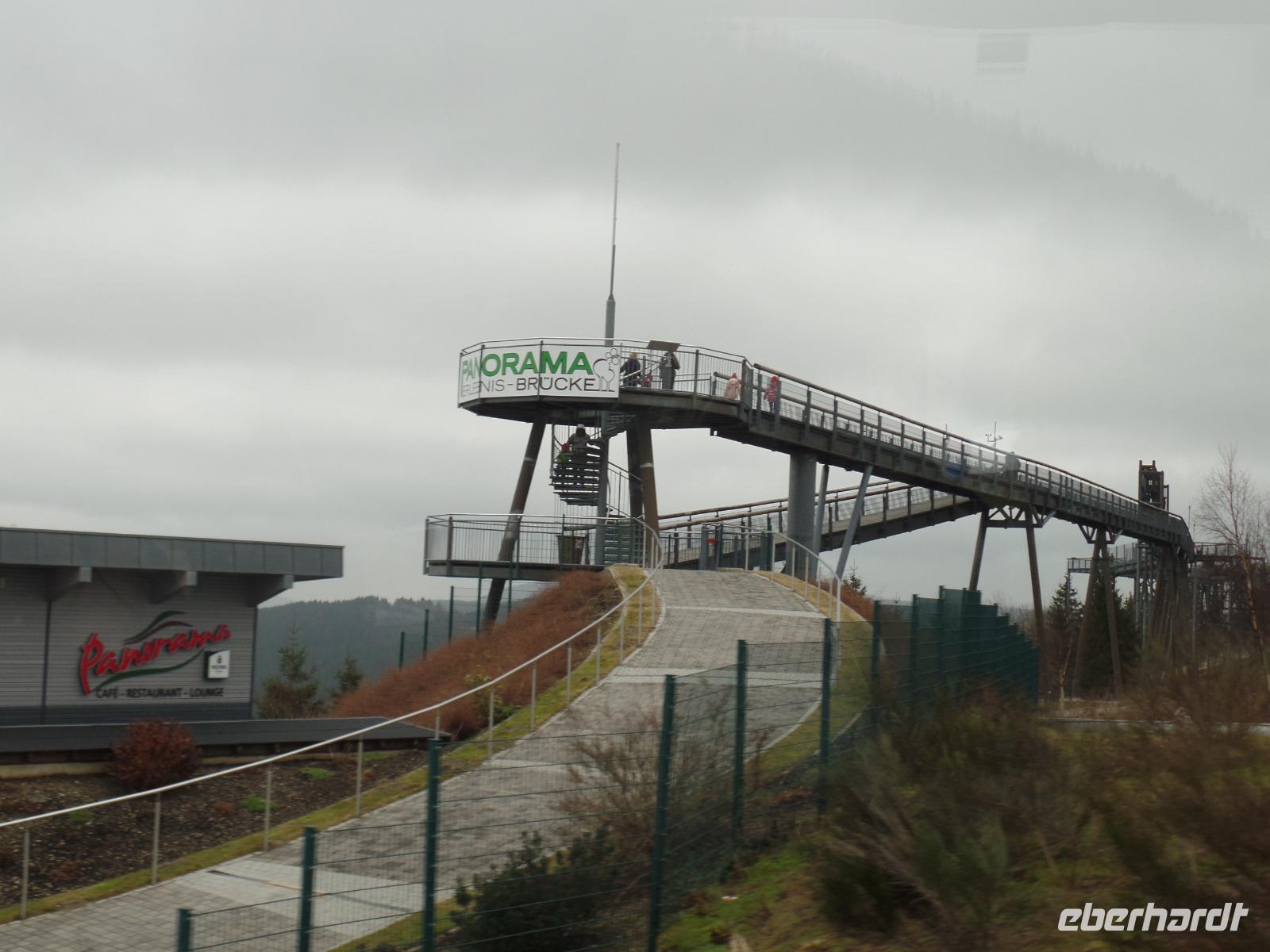Bob- und Rennrodelsports, sowie als Wintersportort sahen wir das Skiliftkarusell, die Bobbahn, die St.-Georg-Schanze, kleinere Skisprungschanzen, sowie die Panorama-Erlebniss-Brücke, ein einzigartiges Brückenprojekt in Deutschland.