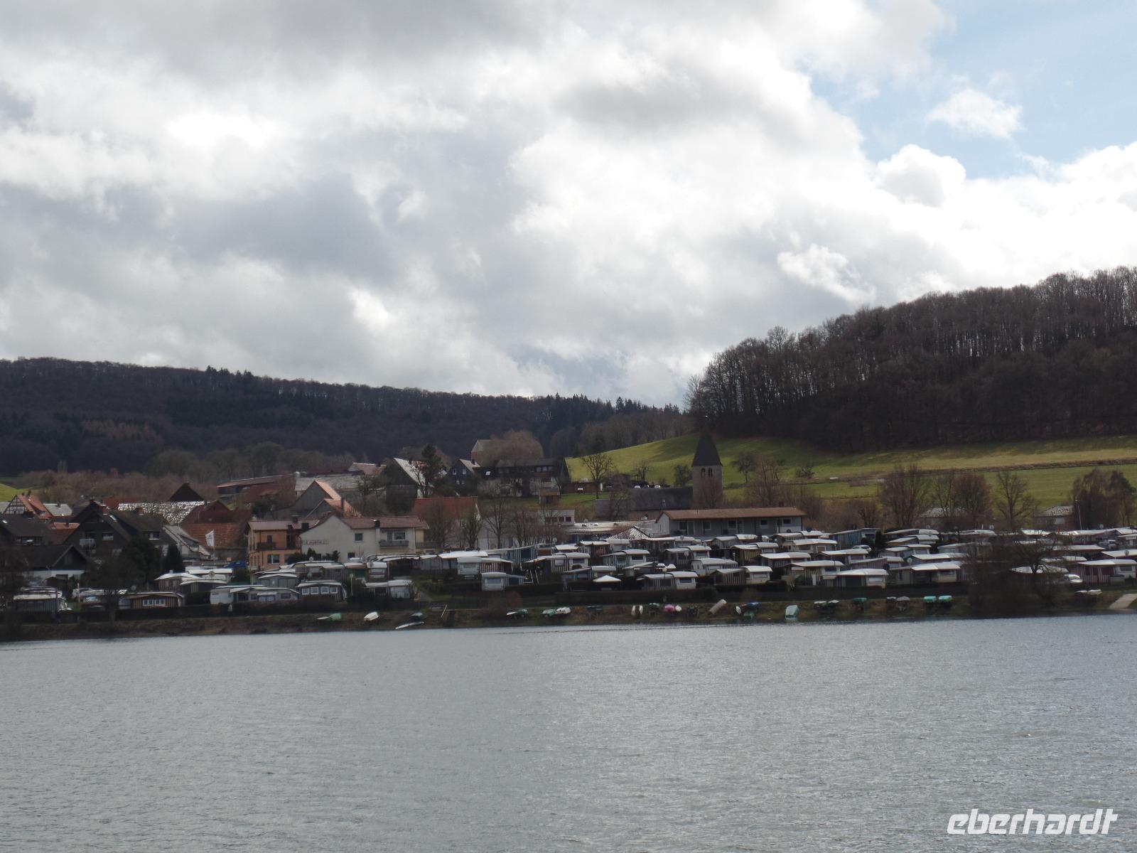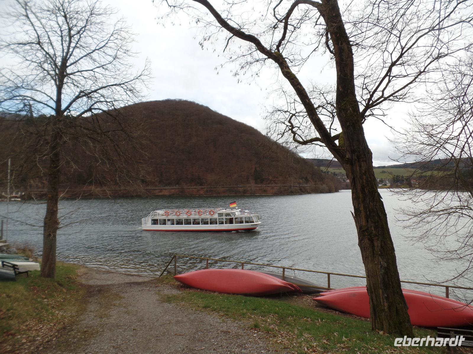 Nach dem Anleger in Heringhausen ist die Diemeltalsperre zu sehen, das größte Bauwerk der Neuzeit. Sie dient dem Hochwasserschutz und der Energiegewinnung.
